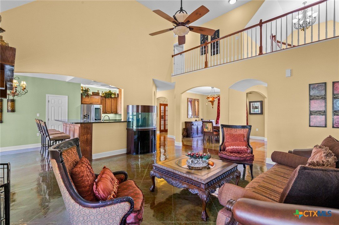 Welcome to this gorgeous 5-bedroom, 4-bath custom home in The Bend at Post Oak Subdivision, built in 2005. Boasting 4,636 square feet of living space, this home seamlessly blends luxury and comfort. Situated on 2.08 acres, it offers ample space for outdoor activities and potential property appreciation. Step inside to a spacious, open-concept split floor plan. The main living area invites you with a stone fireplace and high ceilings, guiding you to the cool granite countertops in the kitchen, perfect for the family gatherings and entertaining. Imagine the warmth of two living areas and two dining spaces, a large office with natural light, and a game room—ideal for work, play, and gatherings. In the luxurious primary suite, you'll find gorgeous stained concrete underfoot, large walk-in closets, double sinks, a relaxing jacuzzi tub, and a walk-in shower. Additional highlights include a large laundry and storage area with a sink and granite countertops, fiber internet connectivity, a water softener, a Vivint security system, and a Tesla charger for energy-efficient living. Don’t forget to step outside to a beautiful outdoor kitchen with a sink, BBQ pit, and mini-fridge under the soft pergola shade at dusk on stained concrete, perfect for year-round entertaining. A circular drive provides ample parking for family and guests. The full-yard sprinkler system keeps the landscape lush and green, and the roof was replaced in 2019 for peace of mind.