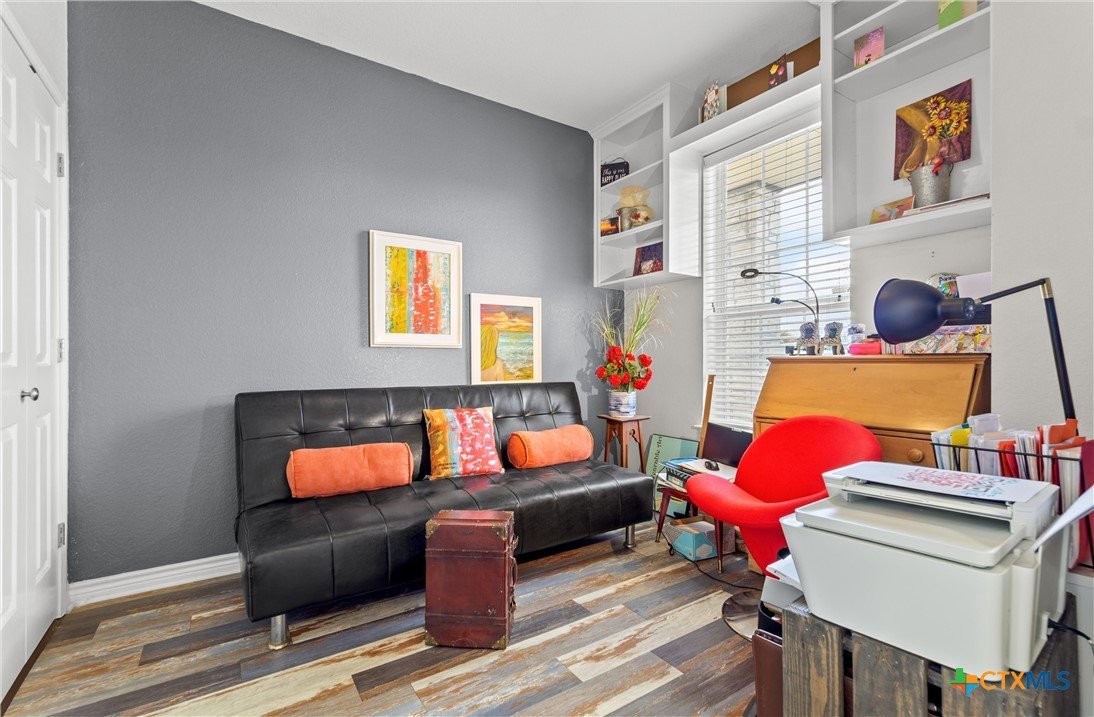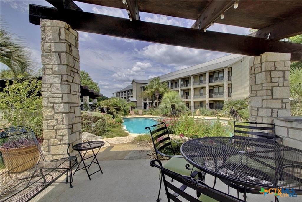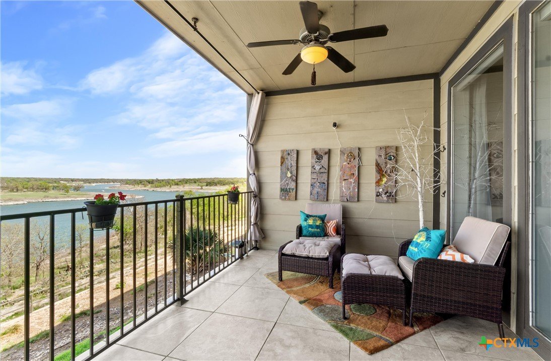 Resort-style living at Belton Lake! This beautifully upgraded water-view condo offers clear lake views from the back that feel like sitting in the treetops, while the front overlooks the luxury pool and patio entertainment area. Quiet second-floor end unit with elevator access, positioned away from stairs and heavy foot traffic for added privacy. Inside, the home features designer finishes and custom upgrades including custom kitchen cabinetry, Labrador granite countertops, stainless appliances, and a Samsung refrigerator with drawer. A designer mosaic tile backsplash and bar accent wall add distinctive style to the kitchen and entertaining space. The living areas and bedrooms feature custom distressed vinyl plank flooring, while the entry, kitchen, and bathrooms showcase elegant porcelain tile flooring and custom blackout cellular blinds on rear windows. The spacious primary suite includes double sinks, solid surface countertops, and a walk-in shower with custom glass enclosure, rain showerhead, and handheld showerhead. The guest bath includes a custom glass tub enclosure and solid surface countertops. The condo’s elevated position allows for clear lake views above the surrounding trees while still enjoying the beauty of the natural landscape and wildlife that frequent the nearby deer feeder morning and evening. This condo is being sold furnished, (including well kept washer and dryer) and may also be used as a long-term rental, offering flexibility for owners or investors. Conveniently located near Temple and Belton with easy access toward Austin.