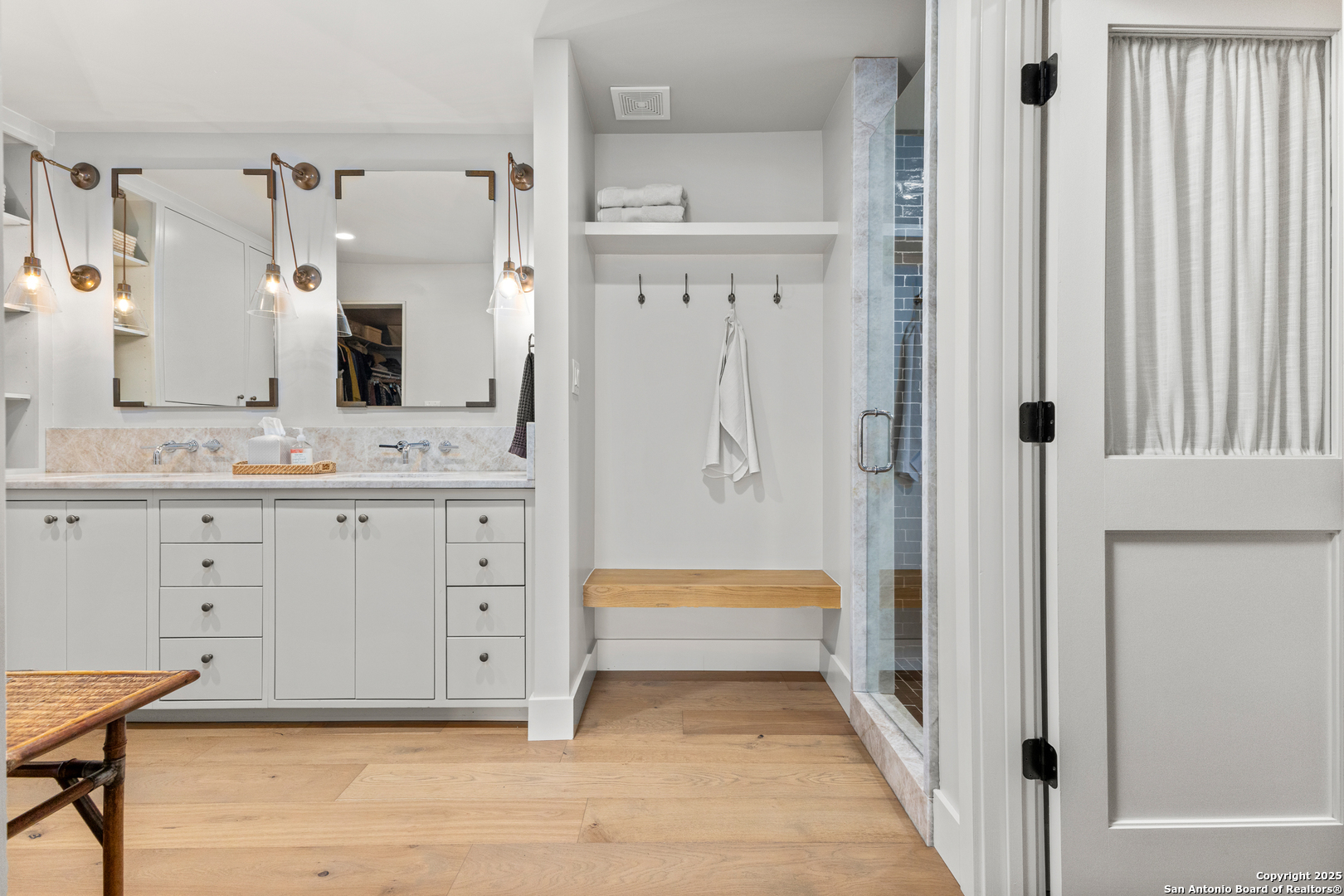 Stunningly Redone 1 story Hollywood Park home. Located on an amazing half acre lot on a quiet cul de sac street backing up to a beautiful creek. No steps, 4 bedroom, 3 full bath with no detail left untouched. The prime example of the ultimate spirt of community ,the town of Hollywood Park offers spectacular amenities that include the Voigt Center, playground, splash pad, pool, tennis, volleyball and basketball court. Golf cart friendly neighborhood with accessible path to Sonterra Country Club. No Mandatory HOA. Award winning N.E.I.S.D. schools. Easy access to HWY 281, LOOP 1604, 410 & just 15 minutes from downtown San Antonio. Will be on Private MLS till Tuesday March 6th