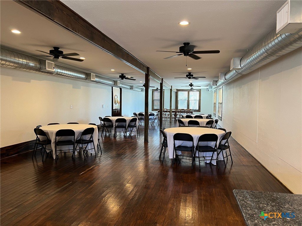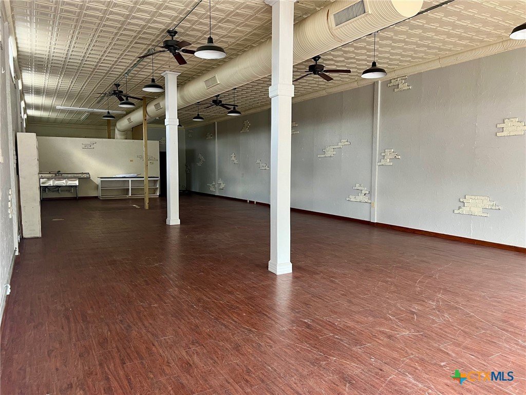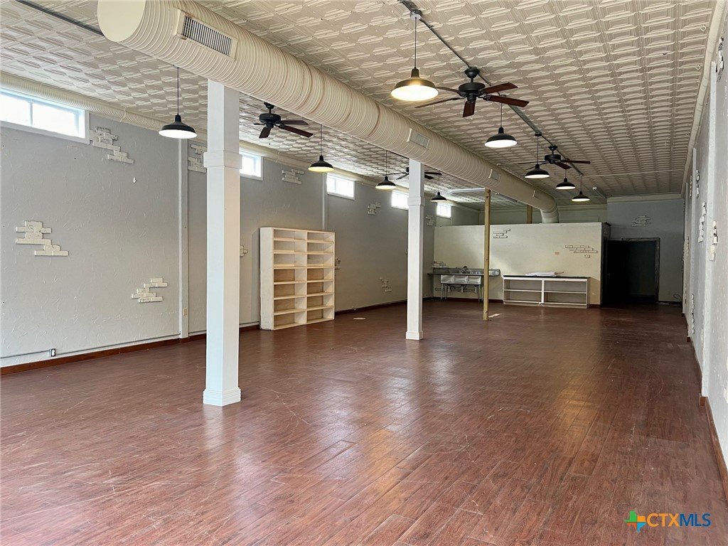This downtown building, situated directly across from the historic Edna Theatre, is a prime location with high visibility. The exterior features the eye-catching Brands of Jackson County mural, making it a prominent landmark in the area. Inside, you'll find a spacious, open layout with high ceilings adorned with original tin details that add character and charm. The building is handicap accessible, ensuring ease of access for all visitors. It also includes a kitchenette, adding convenience for those looking to run a business here. With its generous space and unique design elements, this location is perfect for a retail shop or any business looking to make a statement in a vibrant downtown setting. This listing is for downstairs ONLY but the upstairs is amazing and available for rent as well. Call today for all of the details!