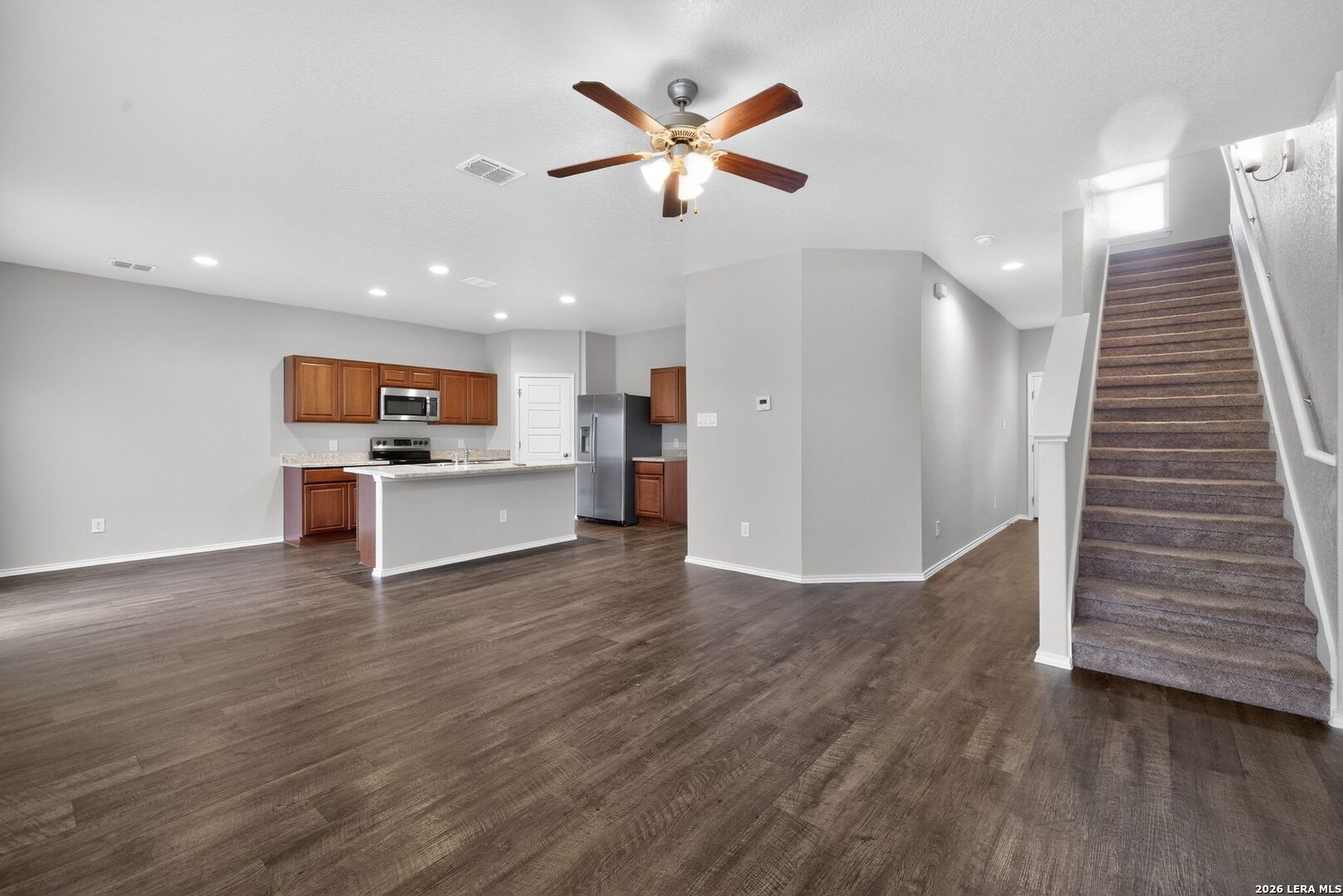 This well-maintained 3-bedroom, 2.5-bath home offers a spacious and functional layout with a modern, inviting feel throughout. The main living area is bright and open, featuring durable flooring and abundant natural light that flows seamlessly into the dining space and kitchen. The kitchen is designed for both everyday living and entertaining, with ample cabinetry, generous counter space, and a layout that keeps everything within easy reach. Upstairs, the primary suite provides a comfortable retreat with a private ensuite bath and plenty of closet space. Two additional bedrooms are well-sized and versatile, ideal for guests, a home office, or additional living needs, along with a conveniently located full bathroom. A half bath downstairs adds extra functionality for visitors. Outside, enjoy a spacious backyard with plenty of room to relax, play, or create your ideal outdoor setup. Located in Saint Hedwig with easy access to major highways, this home offers a quieter setting while still being within reach of San Antonio, Randolph AFB, and nearby amenities.