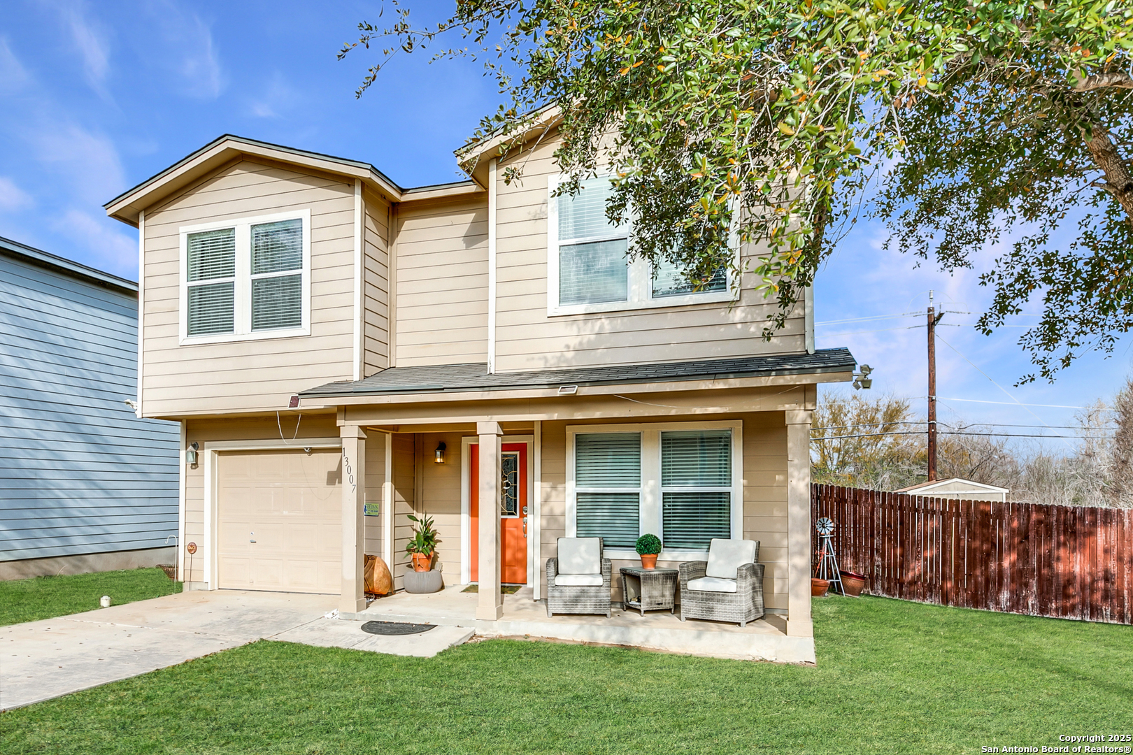 Come see this well-loved gem! Tucked in a quiet neighborhood, this spacious two-story home has only had one owner and offers a perfect mix of comfort, space, and potential. Backing up to a serene greenbelt, enjoy added privacy and peaceful views from your covered back porch and spacious backyard - ideal for outdoor entertaining, gardening, or just relaxing. Inside, you'll find a light-filled open-concept layout with a cozy living area, large dining space, and a functional kitchen with stainless steel appliances, a walk-in pantry, and a nearby laundry room. A convenient half bath is located downstairs for guests. Upstairs includes three generously sized bedrooms and two full bathrooms, including a large primary suite with plenty of natural light. Additional highlights include a welcoming front porch, a one-car garage, a separate upstairs loft or second living area, and updated flooring in several rooms. The home has been thoughtfully maintained and is move-in ready with room to make it your own. Don't miss the chance to own this charming property in a desirable location with easy access to shopping, schools, and major roads. Schedule your showing today!