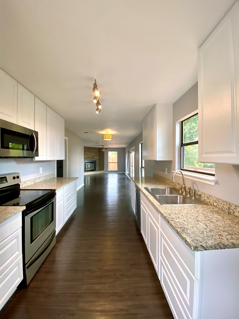 Hard to find 4 bedroom, 3 bath home!! This adorable home has been completely updated, farmhouse style! Open floor plan kitchen, dining and living room. Picturesque windows provide an abundance of natural light. Granite countertops and modern light fixtures. Downstairs features a full laundry room, 2 bedrooms and a full bath. Upstairs you will find the master, master bath, second living area and a fourth bedroom with a private bath. This home is perfect for large family and move in ready! Brand new metal roof and an oversized deck out back.