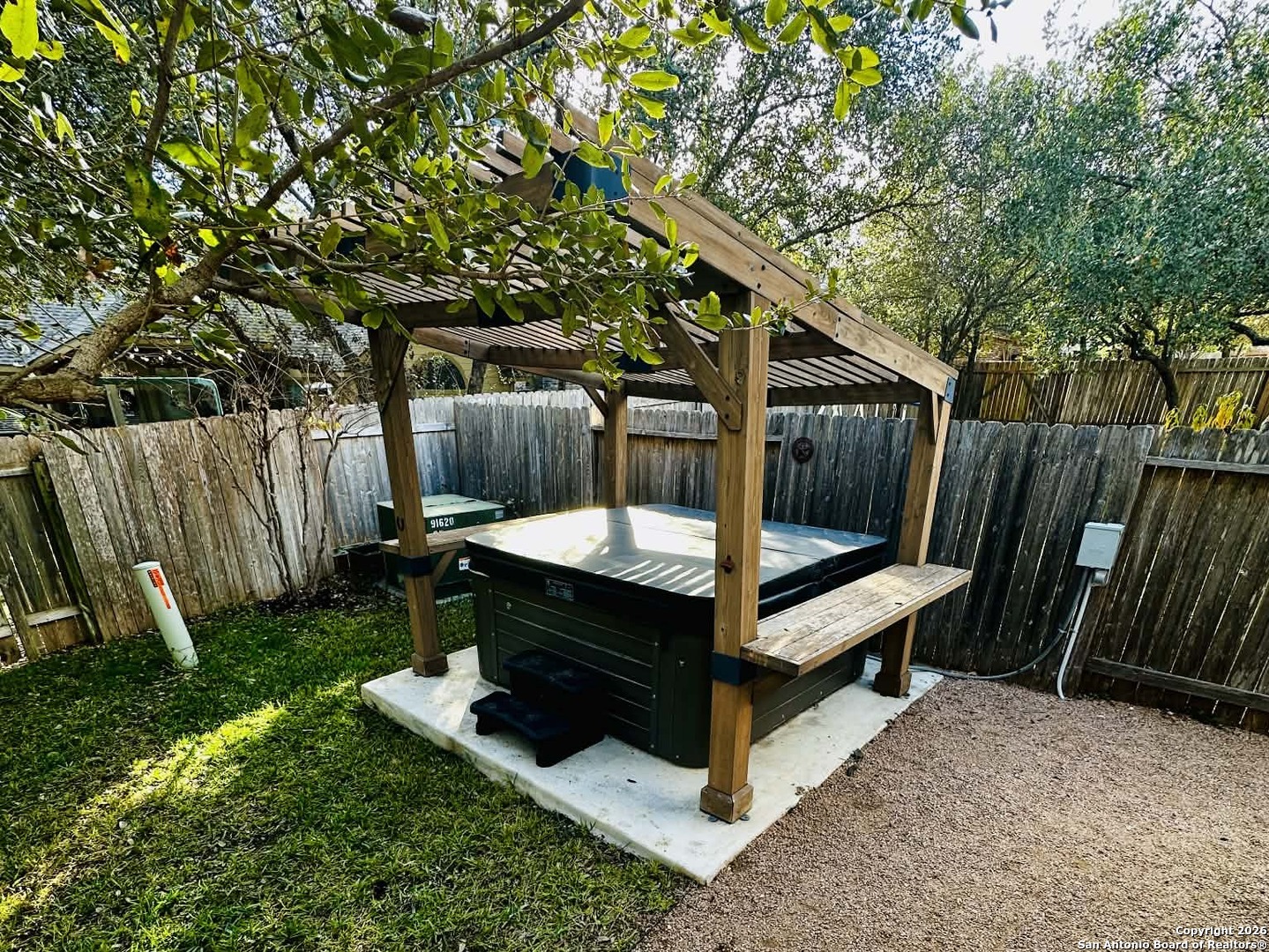 Located in highly sought-after NISD schools, this home offers an exceptional opportunity for buyers who value top-tier education and long-term resale appeal. Step outside to a lush, green yard maintained by a full sprinkler system, creating beautiful curb appeal and an inviting outdoor setting year-round. The home's prime location places you just minutes from SeaWorld, highly acclaimed medical hospitals, shopping centers, and easy access to major highways, making daily commutes and weekend outings effortless. Inside, this home is enhanced by warm Tuscan-inspired colors, creating a welcoming and timeless atmosphere that feels both elegant and comfortable. The living room is wire for surround and outdoor speakers. The backyard is designed for entertaining, featuring an extended patio ideal for gatherings, a BBQ pad crafted with crushed granite for outdoor cooking, and a relaxing hot tub beneath a pergola, perfect for unwinding or hosting guests. Additionally, two (2) 110 electric plugs have been installed in the backyard for your convenience. Adding to the home's value and comfort is a newly installed air conditioning system (less than 6 months old), offering peace of mind and energy efficiency. Completing this impressive package is a 3-car tandem garage, providing ample space for vehicles, storage, or a workshop. This home combines location, lifestyle, and thoughtful upgrades-making it an outstanding choice for today's discerning buyer.