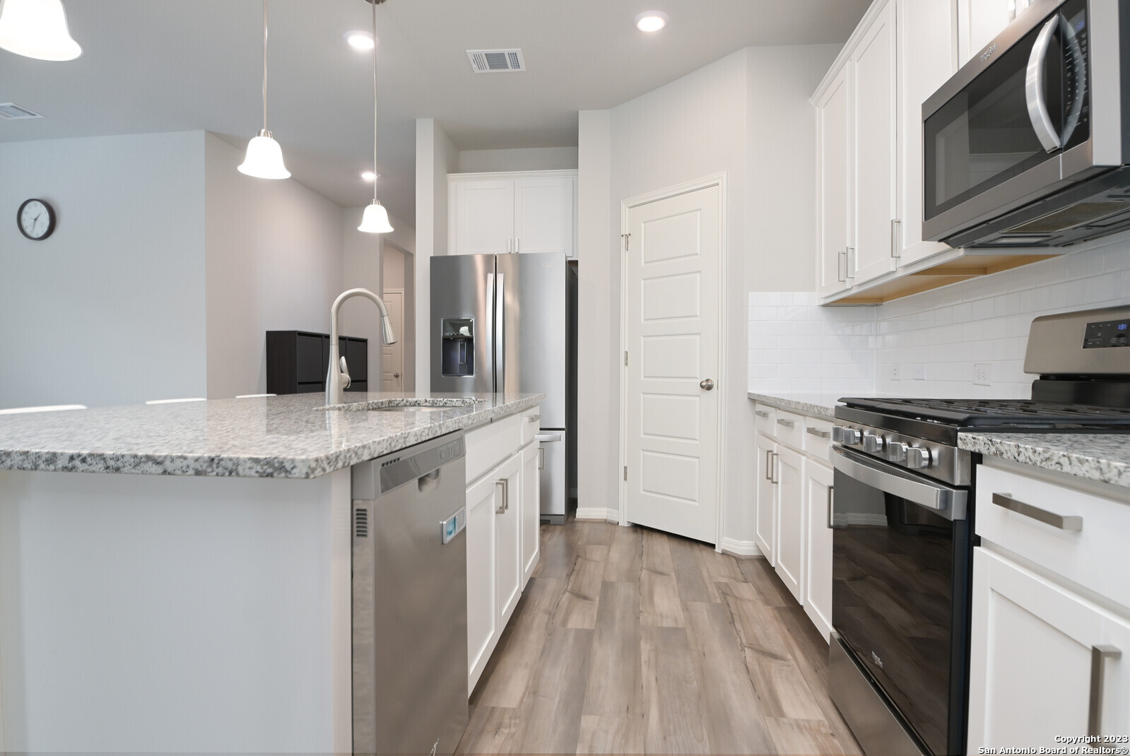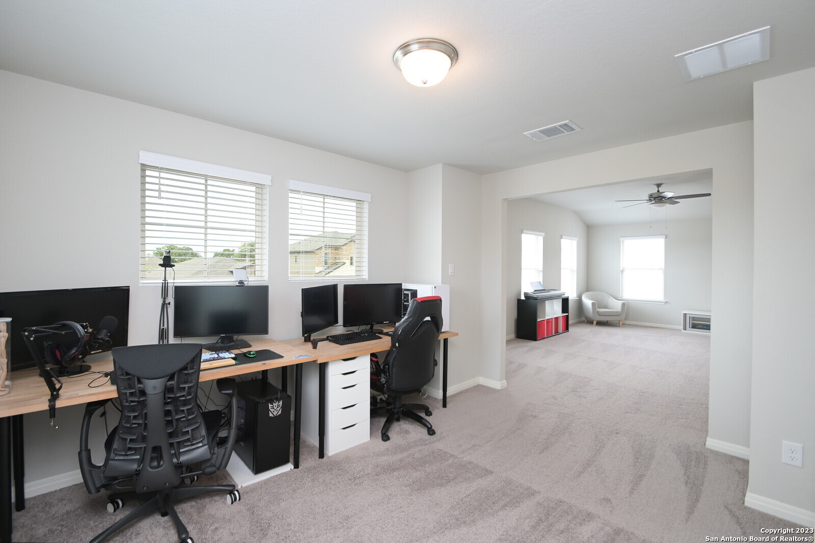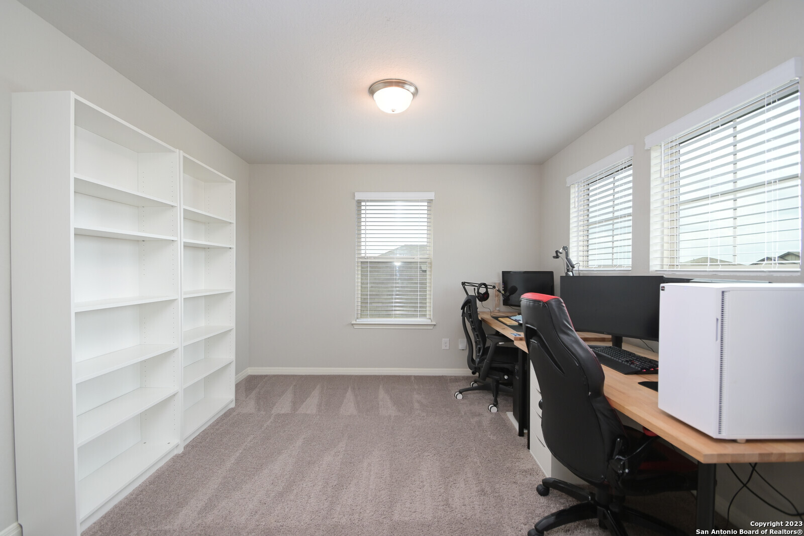 Washer, Dryer, Water Softener (with filtration), Garage storage racks STAY!!!! Welcome to 13010 Maridell Park, an exquisite residence nestled in the sought-after neighborhood of Trails at Westpointe. This exceptional property offers a harmonious blend of elegance, functionality, and prime location, making it a perfect place to call home. As you enter, you are greeted by french doors that lead you into a dedicated office and set the tone for the luxurious living spaces within. The open-concept design seamlessly connects the dining area, main living area, and kitchen, providing a seamless flow for both daily living and entertaining guests. Truly the heart of the home, the kitchen boasts white cabinetry, stainless steel appliances, granite countertops, a decorative backsplash, an oversized kitchen island with a breakfast bar, and a corner pantry; whether you are hosting a large gathering or enjoying a quiet family dinner, this kitchen is sure to impress. The primary suite is generously sized, featuring high ceilings, a walk-in closet, and an ensuite bathroom that features a dual sink vanity, a soaking tub, and a walk-in shower. This remarkable property also offers three well-appointed secondary bedrooms, two full bathrooms, a large loft, AND a flex space on the second floor. Looking to provide extra comfort and privacy for family members or guests? One of the secondary bedrooms on the second floor offers its own ensuite bathroom! The outdoor space is perfect for hosting gatherings, barbecues, or simply enjoying the fresh air and sunshine. Whether you prefer to lounge on the covered patio or play in the expansive yard, this backyard offers endless possibilities for outdoor enjoyment. Homeowners in this neighborhood have access to top-notch amenities such as a community pavilion, pool, and playground! Conveniently located near 1604, shopping, and restaurants, this home provides easy access to everything you need for a convenient and fulfilling lifestyle!