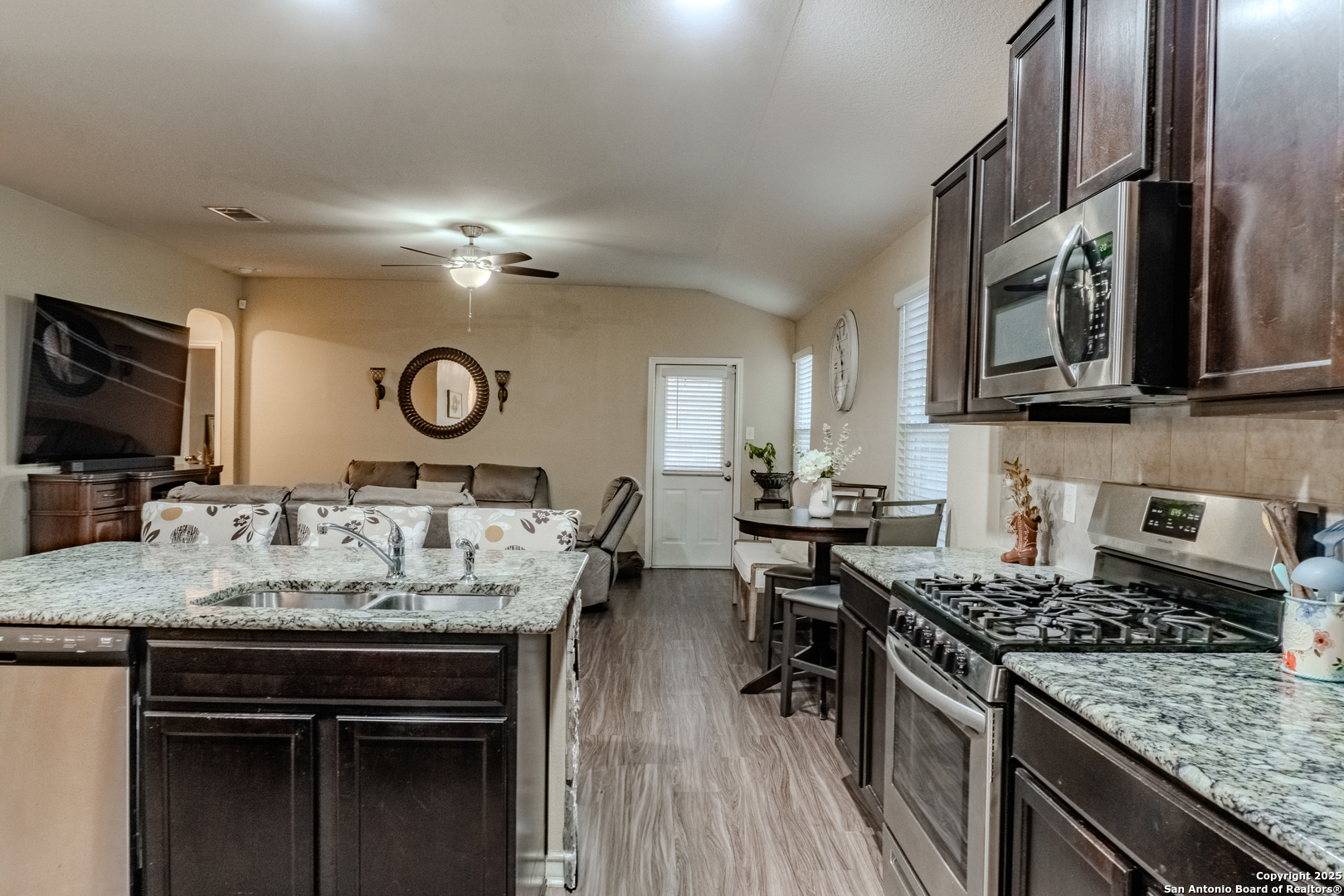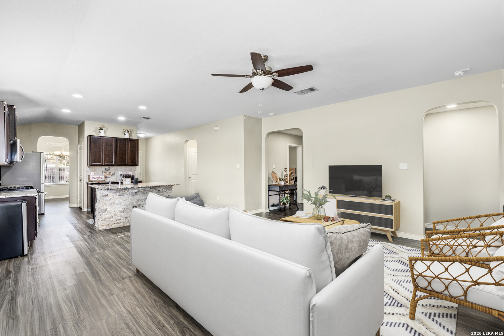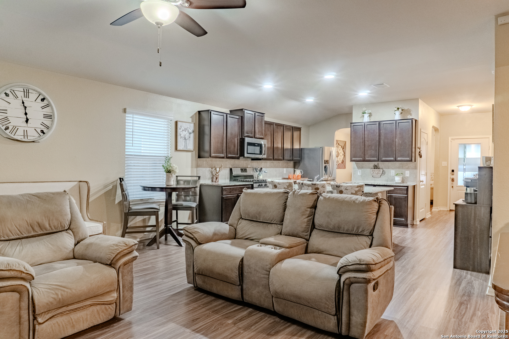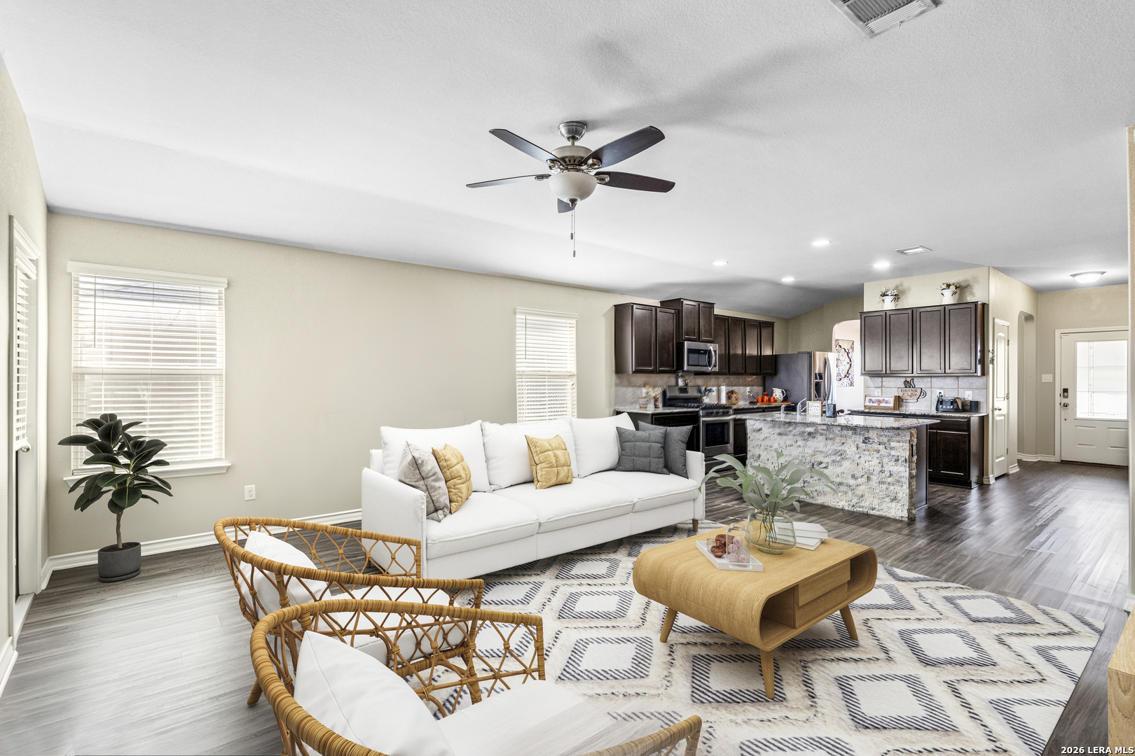 Welcome to 13011 Maestro Spark, a beautifully maintained 3 bedroom, 2 bathroom home offering an open floor plan that's perfect for modern living. Enjoy peaceful mornings or sunset evenings under your backyard gazebo overlooking the greenbelt. Perfectly positioned right off the highway, you will be close to dining, and shops. This home gives you a great balance of quiet living and city convenience.