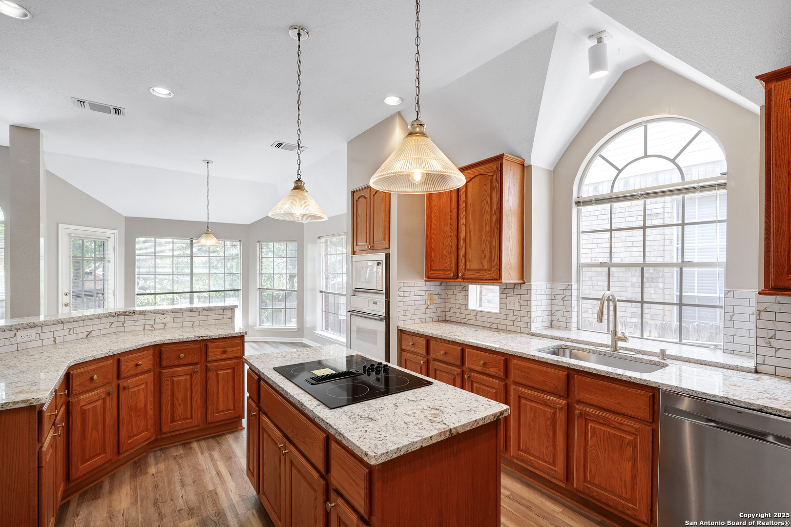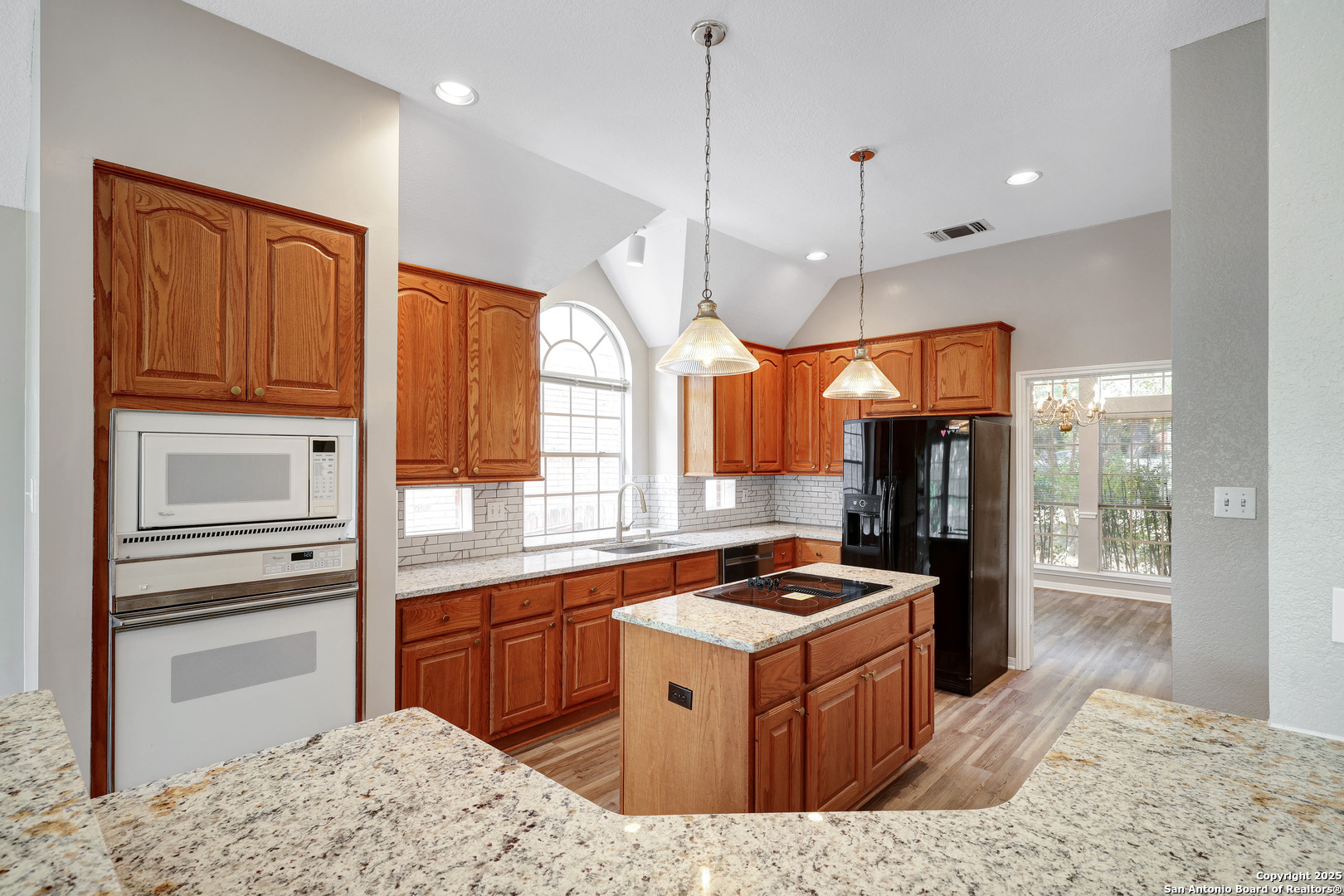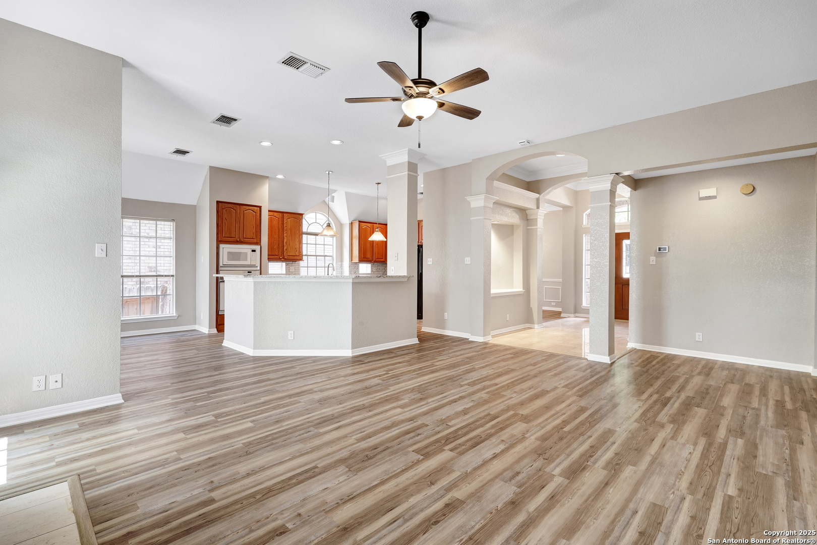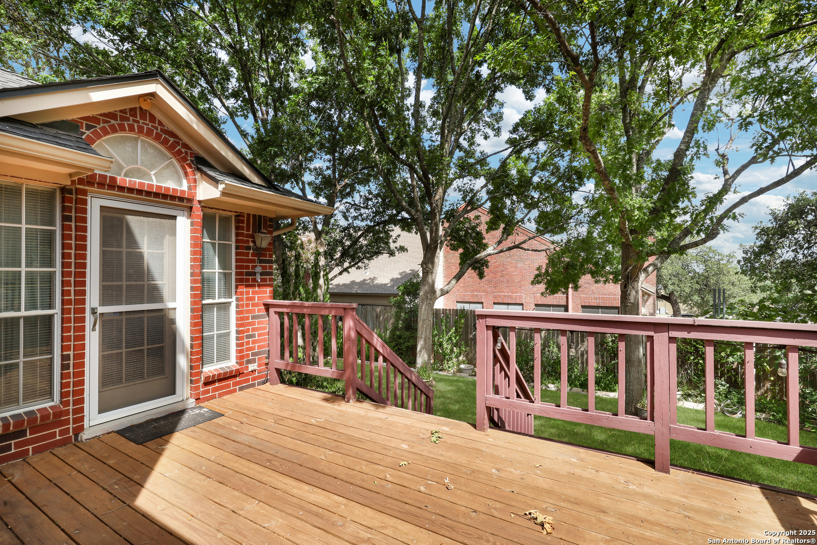 Enjoy this incredible opportunity with this instant equity home, 2025 tax value 465k, 3 bedrooms and 2 baths with 2250 sq. ft. in the desirable Santa Fe Trail neighborhood! Roof is two years old , HVAC is four years old, water heater is almost new, attic insulation has been upgraded, nice lot with backyard deck, water softener and sprinkler system. Seller is applying finishing touches, new ceiling fans, new fixtures, freshly painted, new granite counter tops in kitchen and bathrooms, new dishwasher, new downdraft cooktop, new LVP laminate flooring and new carpeting in bedrooms. Very close to McAllister Park, ten minutes from the airport, super convenient to 281, Loop 410, Loop 1604 and Wurzbach Parkway. Shopping and entertainment are just a short drive. Enjoy the neighborhood pool and tennis courts!