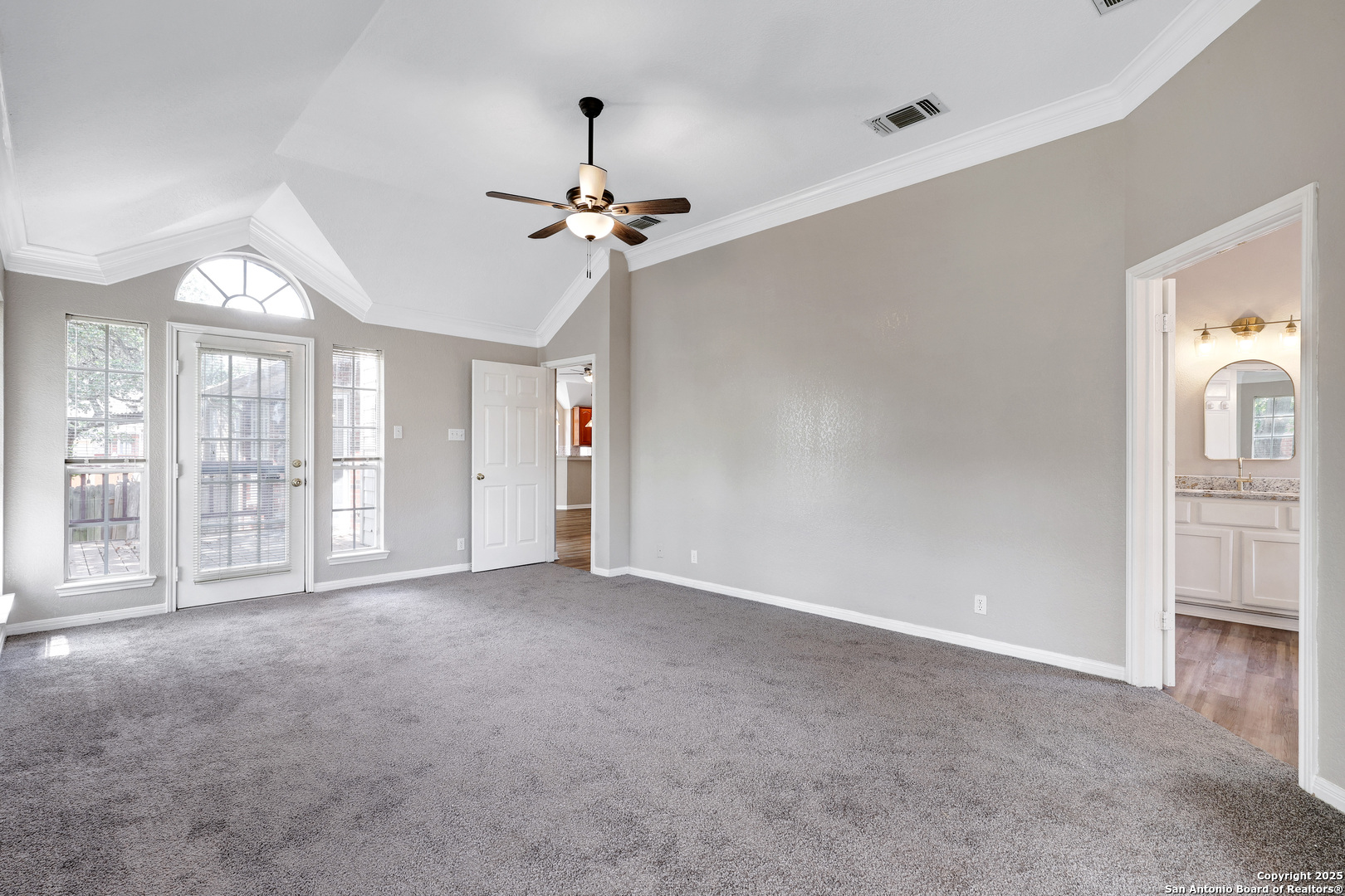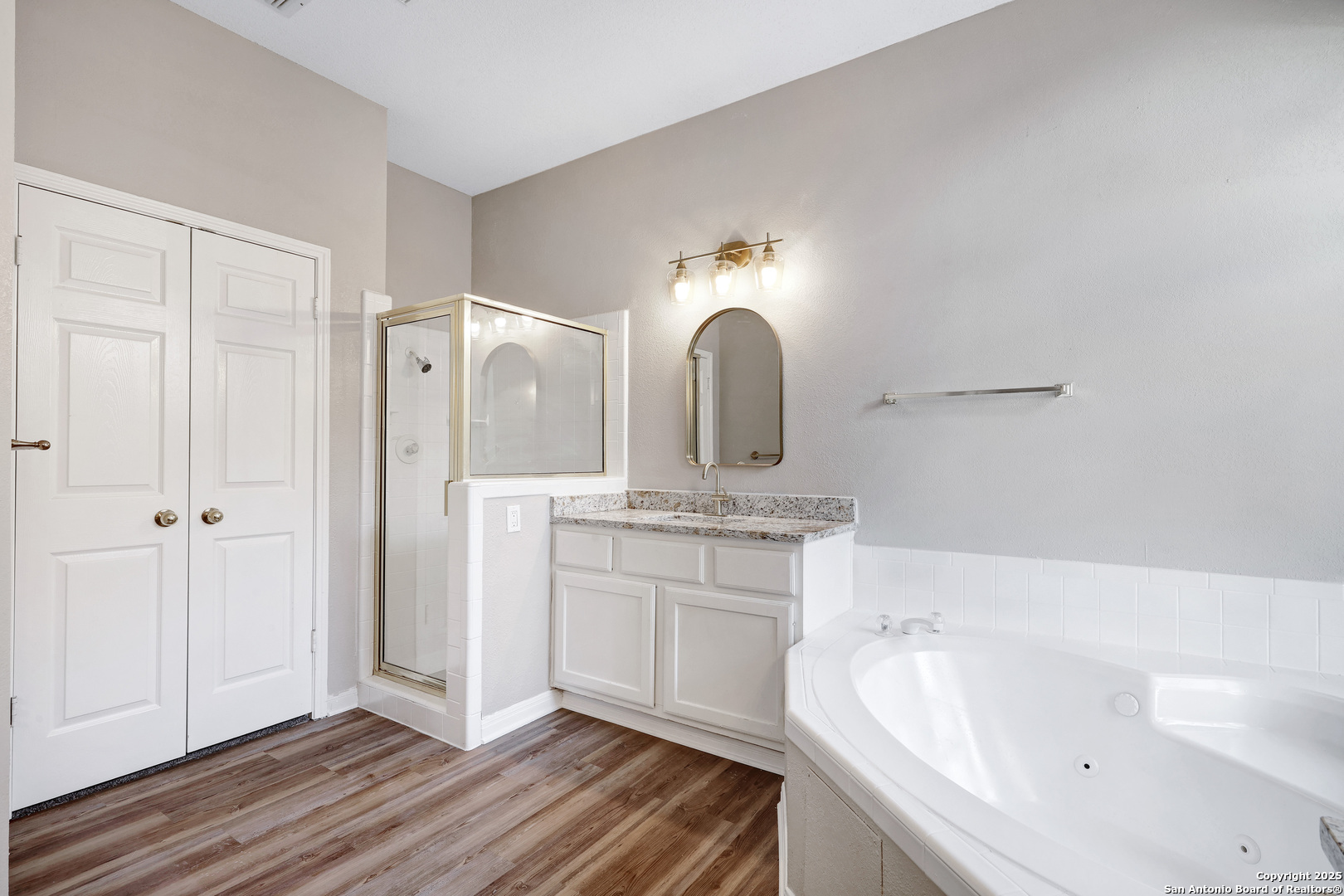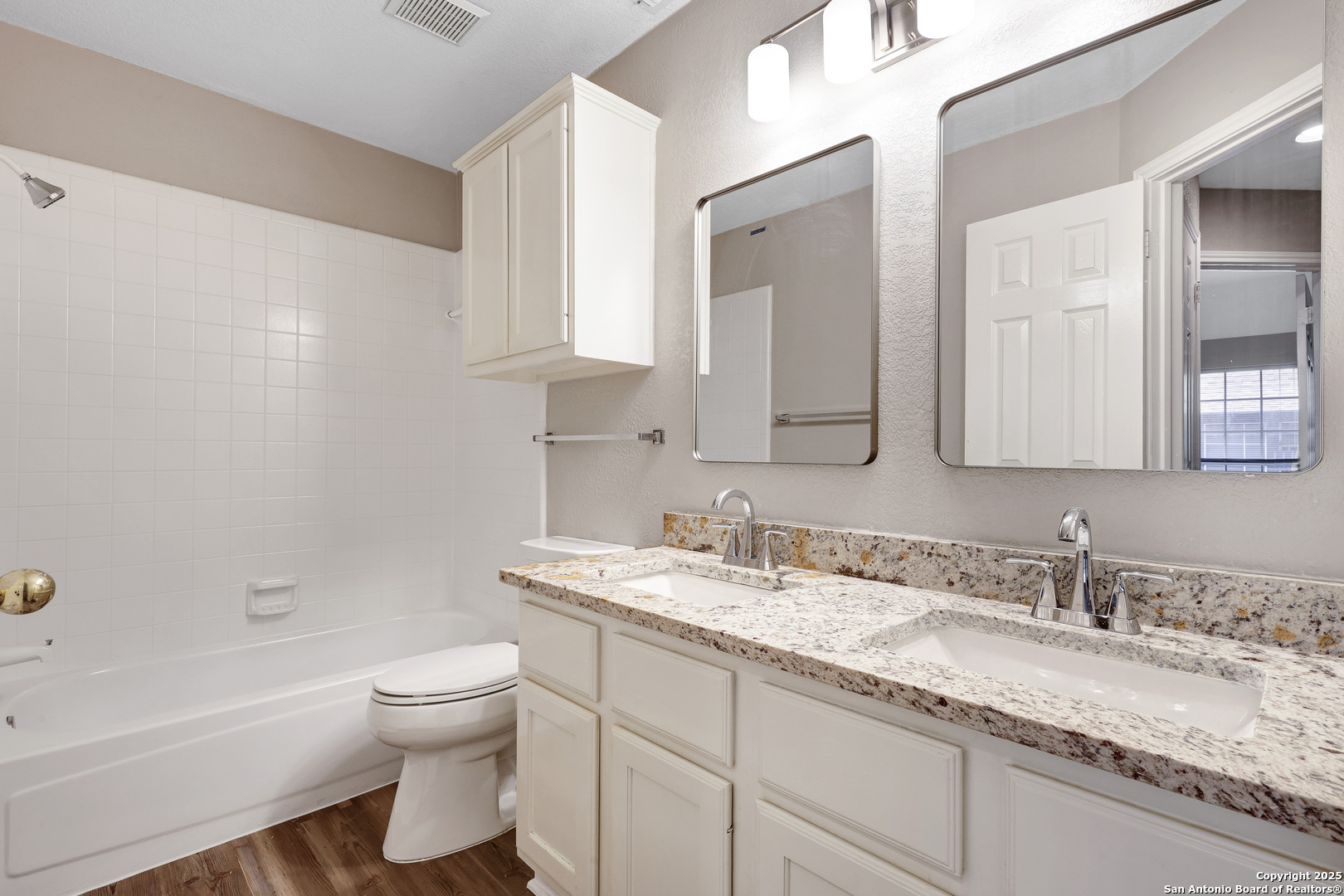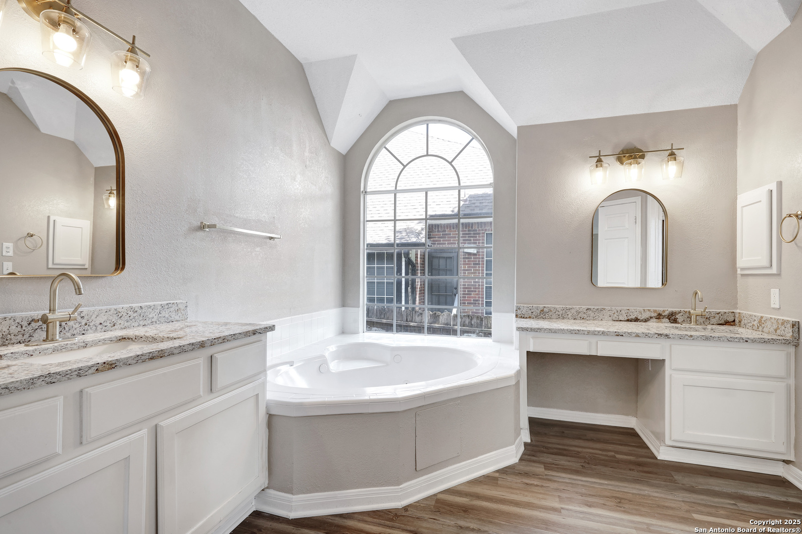 Enjoy this incredible opportunity with this instant equity home, 2025 tax value 465k, 3 bedrooms and 2 baths with 2250 sq. ft. in the desirable Santa Fe Trail neighborhood! Roof is two years old , HVAC is four years old, water heater is almost new, attic insulation has been upgraded, nice lot with backyard deck, water softener and sprinkler system. Seller is applying finishing touches, new ceiling fans, new fixtures, freshly painted, new granite counter tops in kitchen and bathrooms, new dishwasher, new downdraft cooktop, new LVP laminate flooring and new carpeting in bedrooms. Very close to McAllister Park, ten minutes from the airport, super convenient to 281, Loop 410, Loop 1604 and Wurzbach Parkway. Shopping and entertainment are just a short drive. Enjoy the neighborhood pool and tennis courts!