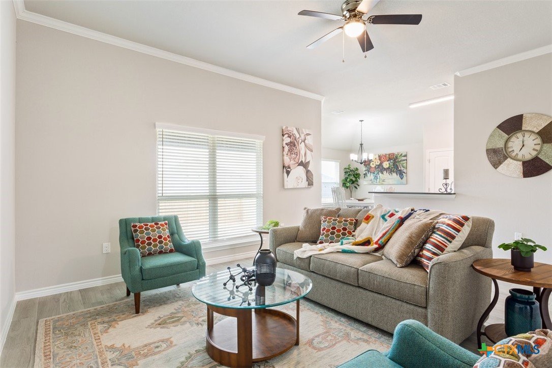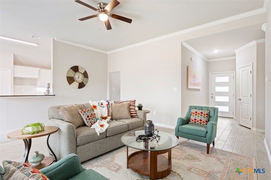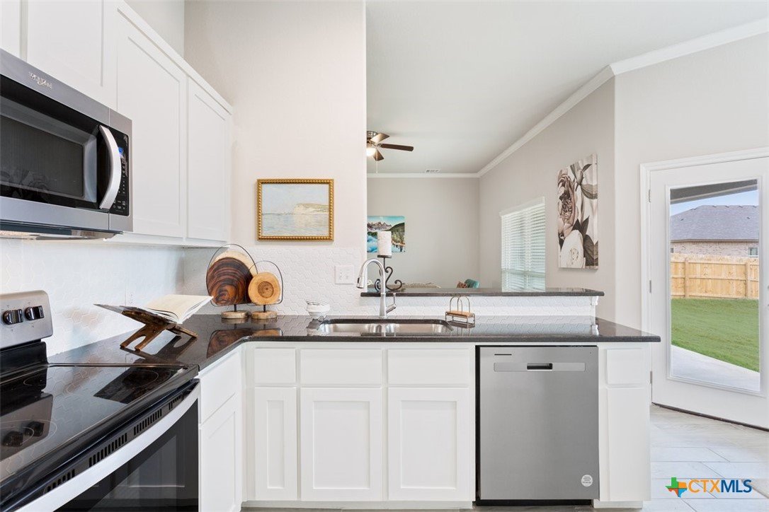 This 4 sided brick traditional home is nature inspired. Nice yard with full sod, full sprinkler system and privacy fenced. The home includes window blinds throughout and garage door opener, builder has included it all! Ceramic tile floors and ceiling fans throughout. The kitchen has granite counters, tile backsplash, stainless steel appliances and a nice pantry. The bathrooms have granite counters and the primary has his and her closets. A laundry room is just off the garage. This neighborhood is centrally located to hospitals, Lake Belton and the Temple Industrial Area. Builder will contribute toward buyer closing costs. Directions: