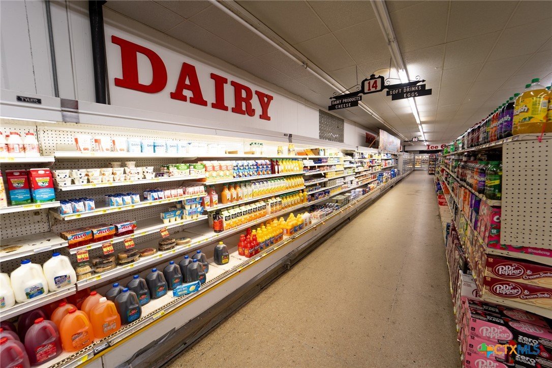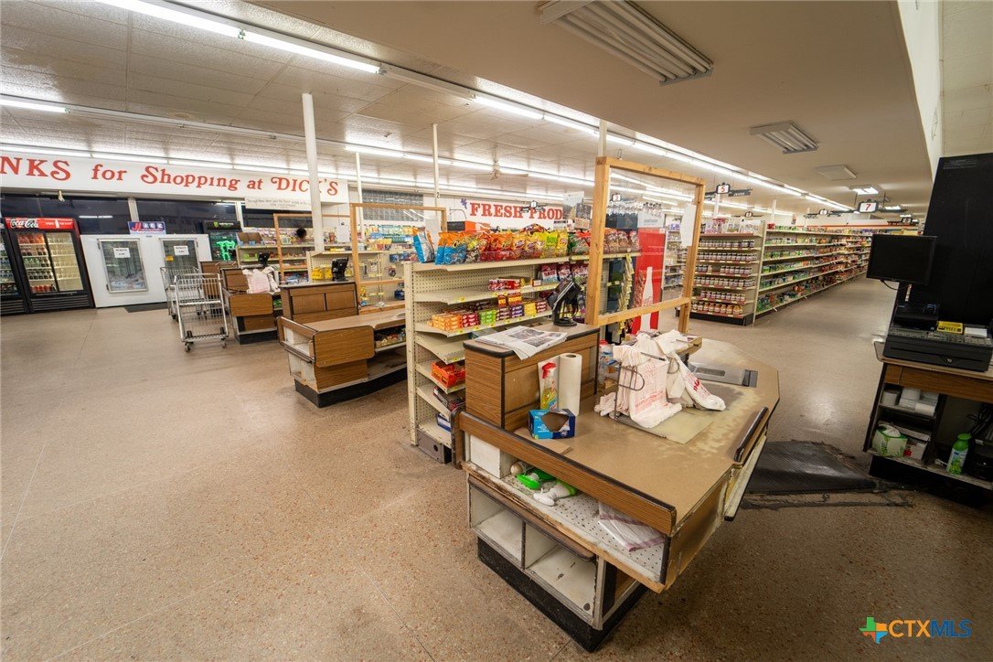 Two parcels totaling 2.33 acres located in the heart of Victoria with city streets on all sides. This location has endless possibilities from grocery, retail, light industrial, storage, meat processing, recreation, restaurant and more. The main building has 21,408 sq. ft with 12,393 in the main open area, 7,735 in warehouse (one seperate buildins for storage is included in footage), 1280 in office space and a freezer that is 360 not included in the space, all sq. ft. are approximates. The building is constructed with 8" concrete walls and 4" concrete ceilings, behind the drop ceiling. The building is on a slab and has a flat roof. The main area has terrazo tile floors and the remainder is concrete. Parking lot is ashpalt approximately 54,000 sq. ft. Package A/C units The location has room to build or expand. Building is "as is", it is asbestos free. Phase I Report and Survey on file.