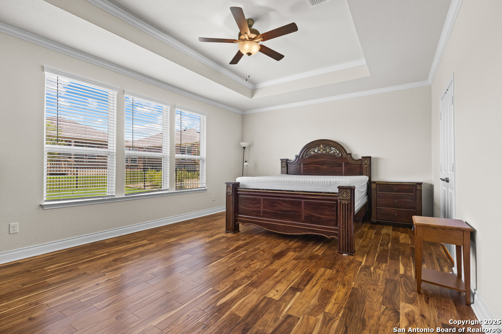 Discover comfort, space, and vibrant living in this 2-bedroom, 2.5-bathroom home nestled on a prime corner lot in the coveted 55+ community, The Ridge at Hill Country Retreat. Upon arrival, the beautifully landscaped front yard creates eye-catching curb appeal. Step inside to a thoughtfully designed interior featuring an open layout with a recessed ceiling in the living room and large windows along the back of the home that flood the space with natural light. Wood and tile flooring stretch throughout, adding both elegance and ease of maintenance. The kitchen is a true highlight-designed for both function and style. It offers abundant cabinet storage, generous countertop space for meal prep or entertaining, a built-in oven, and a stunning gas cooktop that will impress any home chef. A flexible bonus space provides the perfect setting for a home office, craft room, or hobby area. The oversized laundry room includes a sink and plenty of space to organize or customize to your needs. Car enthusiasts and those in need of extra storage will love the spacious 3-car tandem garage, complete with epoxy flooring and plenty of room for vehicles, tools, and hobbies. Enjoy outdoor living year-round on the expansive covered patio-ideal for morning coffee or relaxing with friends in the evening. Living here is more than just owning a beautiful home; it's becoming part of a vibrant, welcoming community. Residents enjoy top-tier amenities including indoor and outdoor pools, pickleball courts, scenic walking trails, and a full calendar of social activities such as dance club, karaoke nights, and festive gatherings.