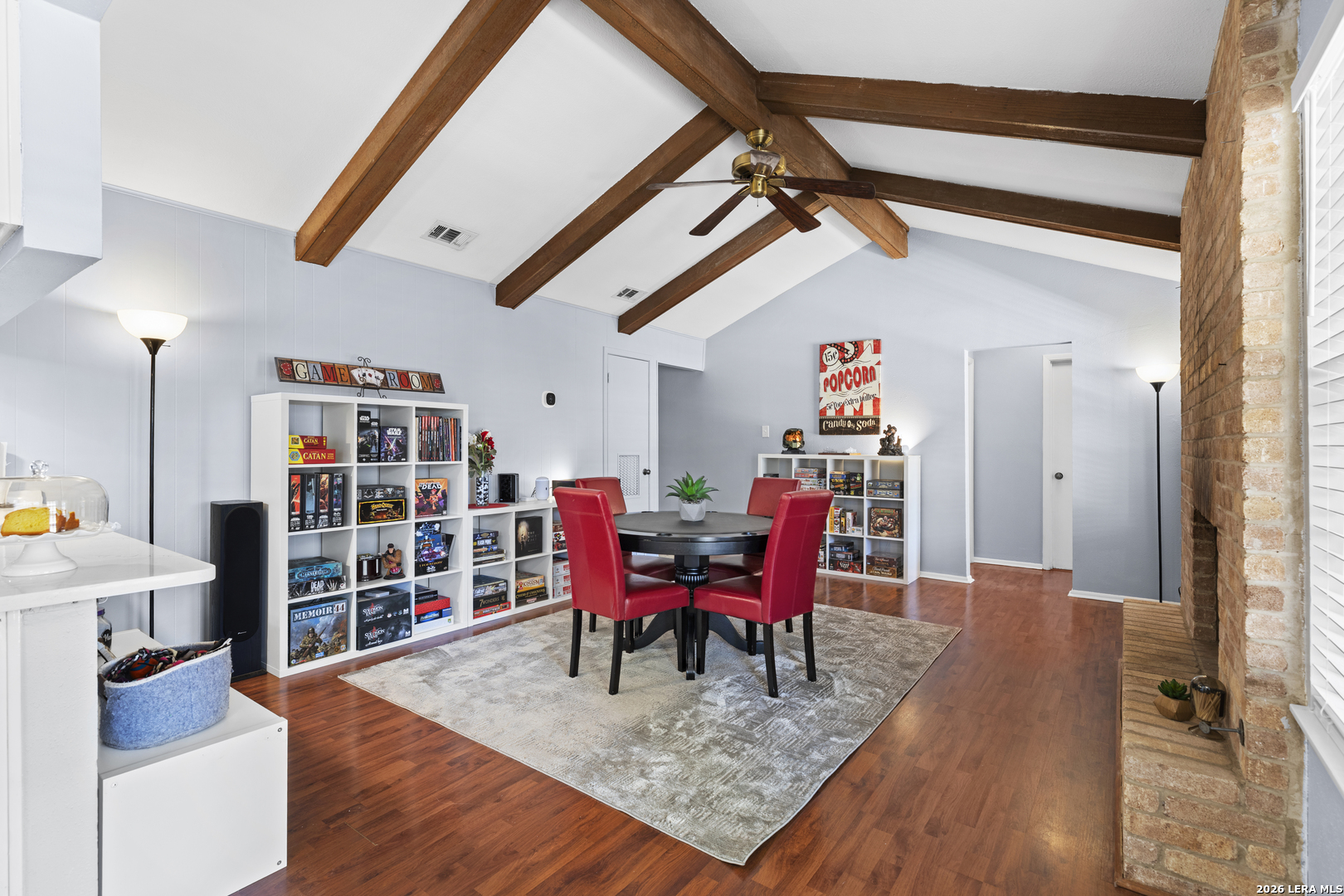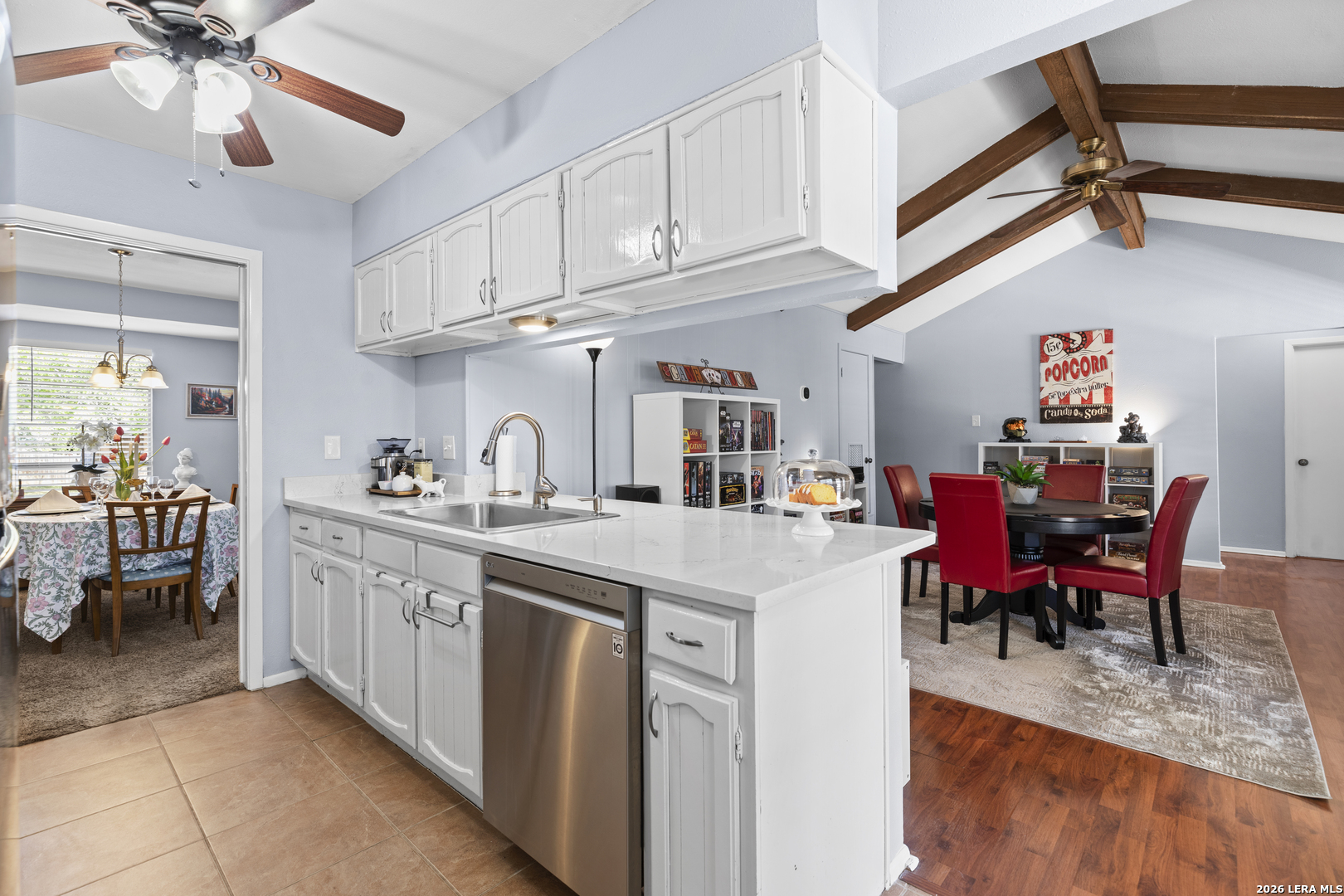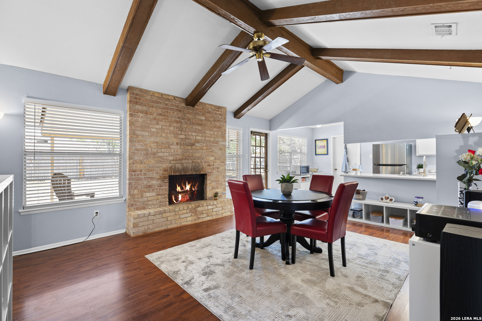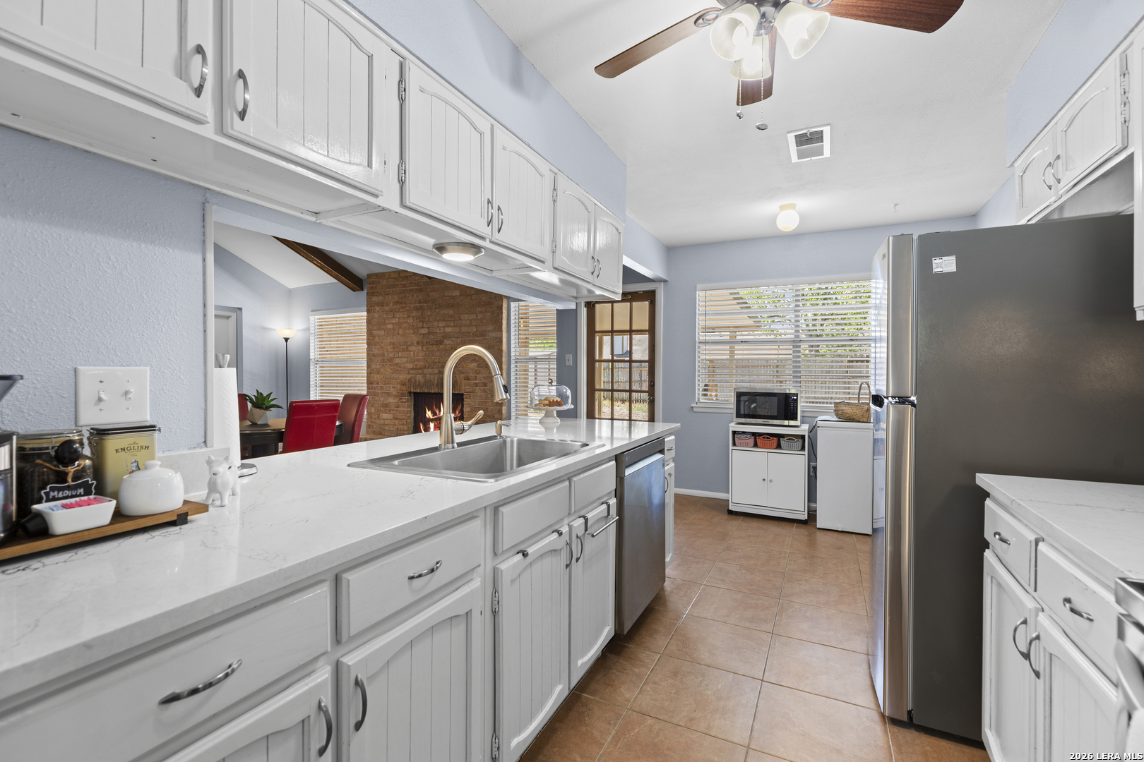 Welcome to this well loved and meticulously cared for ranch style home in the established Larkspur community! You'll crave the quiet and quaint atmosphere of this charming area. Better yet, there's no HOA. It offers an open and functional layout designed for comfortable and effortless entertaining. Enjoy two distinct living areas, featuring a combined dining room and a cozy family room. The heart of the home includes an inviting, classic fireplace with high beamed ceilings. Your newly renovated kitchen includes quartz countertops, stainless steel appliances, and a lovely farm sink. An adorable laundry room includes shelving units for extra storage. Relax on your covered patio for the perfect weekend barbecues. Mature trees throughout property that include plenty of natural shade. Home has just been painted for an overall aesthetic look. Foundation repair completed this year, with a transferable warranty. This wonderful home is move-in ready and waiting for its next chapter. Schedule your showing today to experience the warmth and character of this charmer!