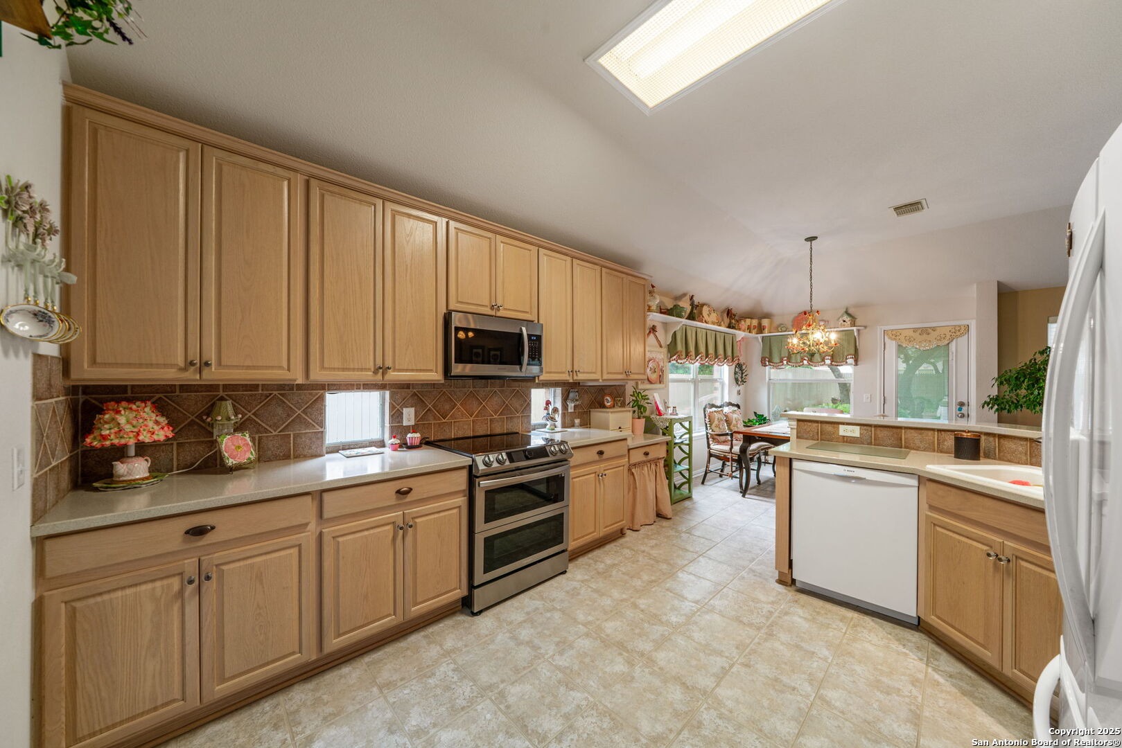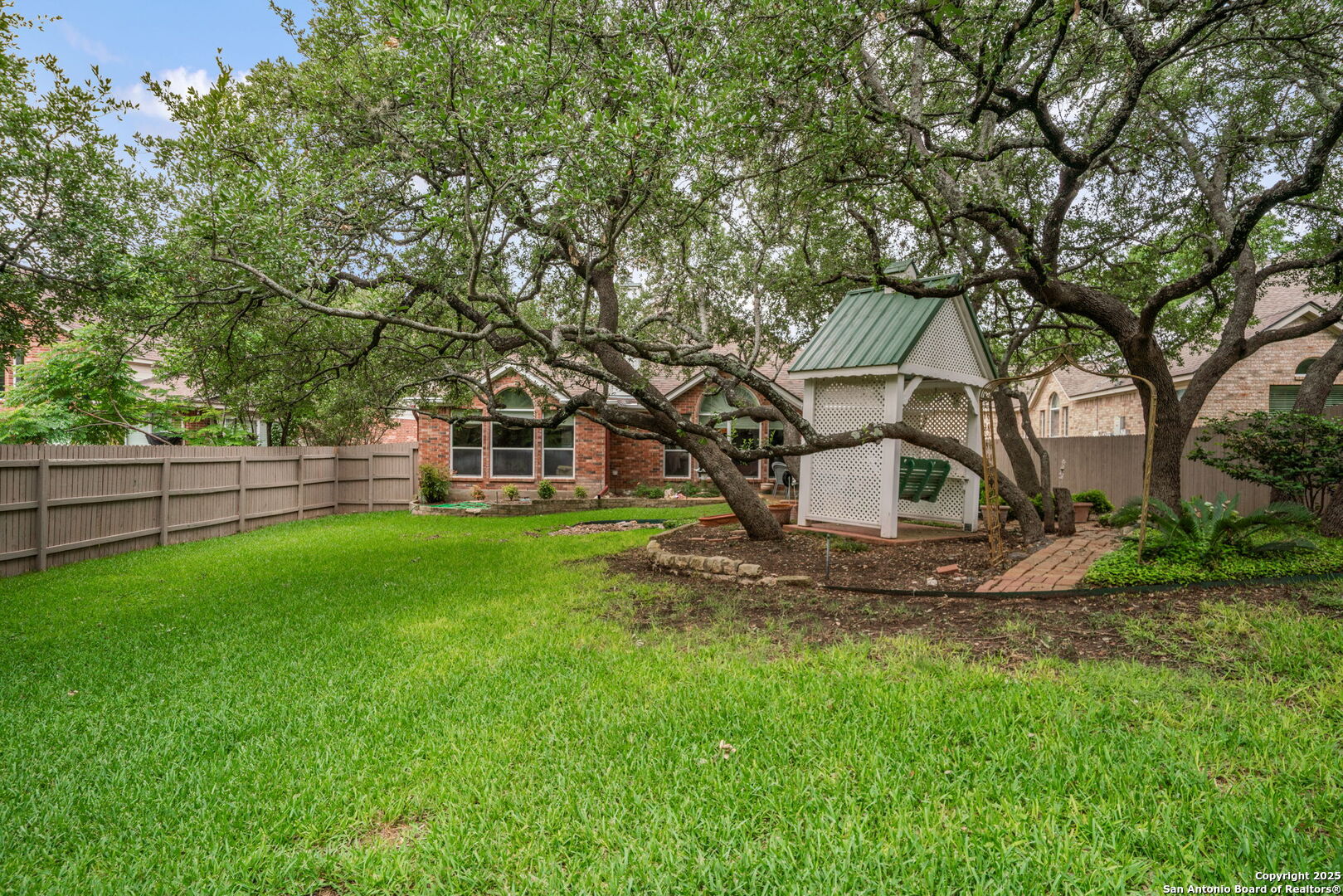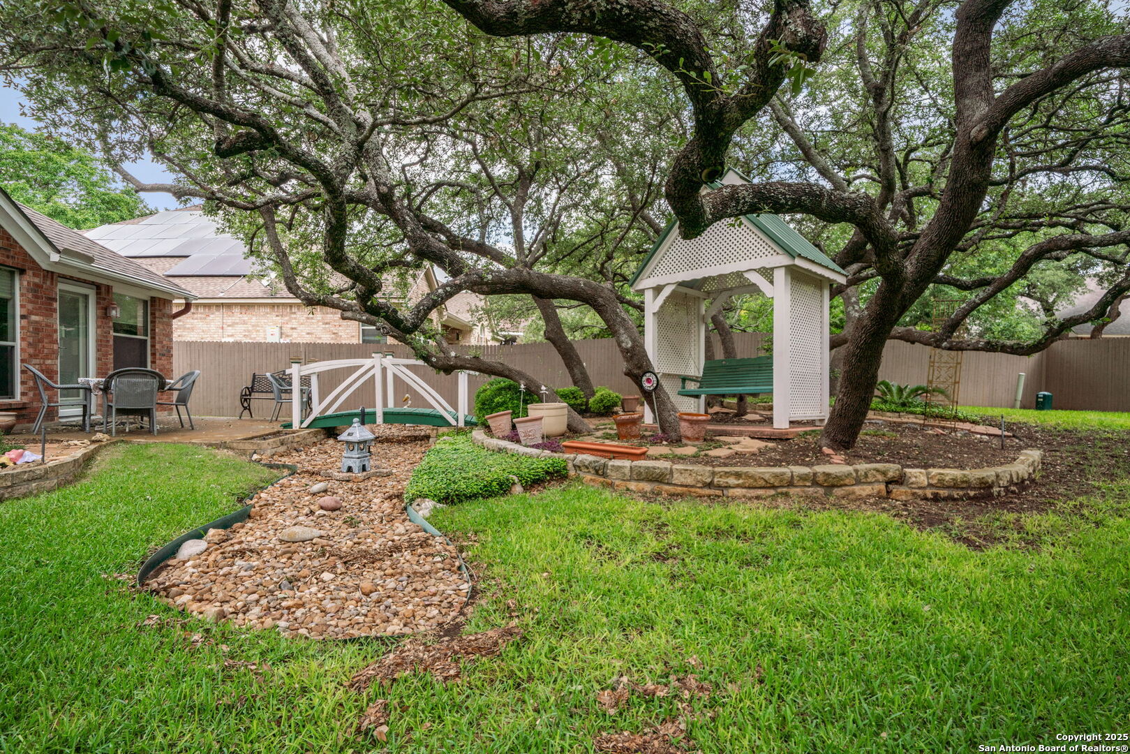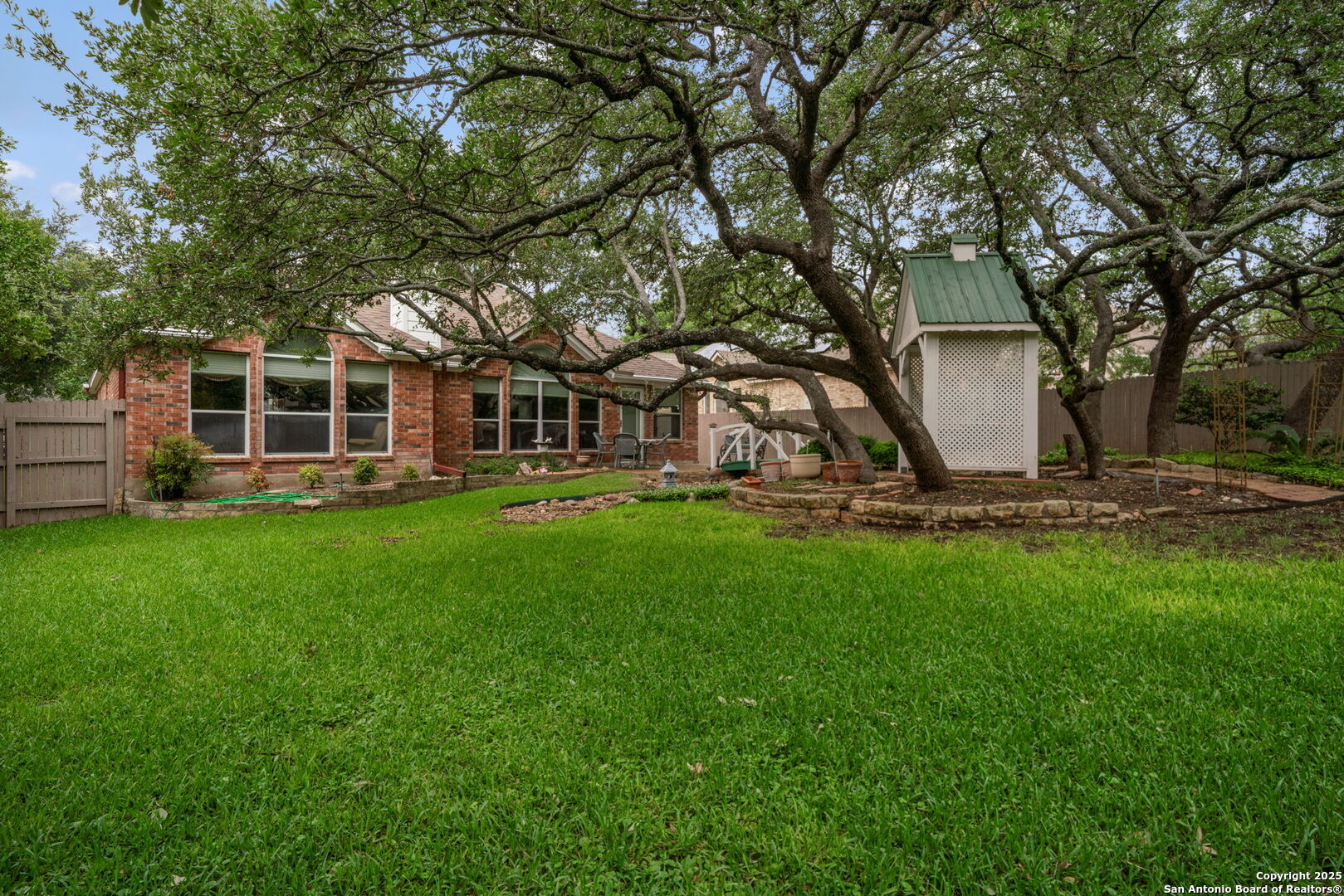 Welcome to your house in Helotes, TX! This stunning 2-bedroom, 2-bathroom residence offers a perfect blend of functionality, style, and comfort. Nestled in an established neighborhood within the highly sought-after Northside Independent School District (NISD), this house is just moments away from all the amenities you need. Step inside to discover an immaculate open floor plan that seamlessly connects the living spaces, making it perfect for entertaining and family gatherings. The high ceilings and strategically placed open wall space between the formal dining and living rooms create an inviting atmosphere, allowing you to interact effortlessly with family and guests throughout the home. This house also features a versatile flex space that can be tailored to your needs-ideal for a home office, workout area, or playroom. This adaptable room ensures you have the flexibility to create the perfect environment for your lifestyle. Each room in this house is generously sized, offering comfort and tranquility. With ample closet space and extra cabinets, you'll have plenty of room to store your belongings, keeping your living space uncluttered and organized. Step outside to the stunning backyard oasis, where you'll find lush green grass-a rare gem during drought conditions. The level yard is perfect for outdoor activities, while the beautiful oak trees provide shade and serenity. Enjoy leisurely afternoons or host barbecues on the charming patio, creating memories with family and friends. Located in a well-established neighborhood, this house not only offers a sense of community but also the convenience of being close to top-rated schools and a variety of amenities. Shopping, dining, and recreational activities are just a short drive away, enhancing your lifestyle. Don't miss the opportunity to own this incredible house with its blend of comfort, elegance, and practicality.