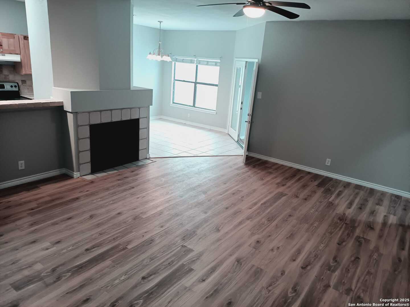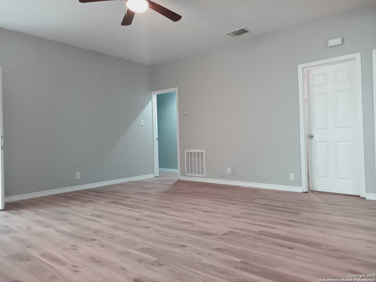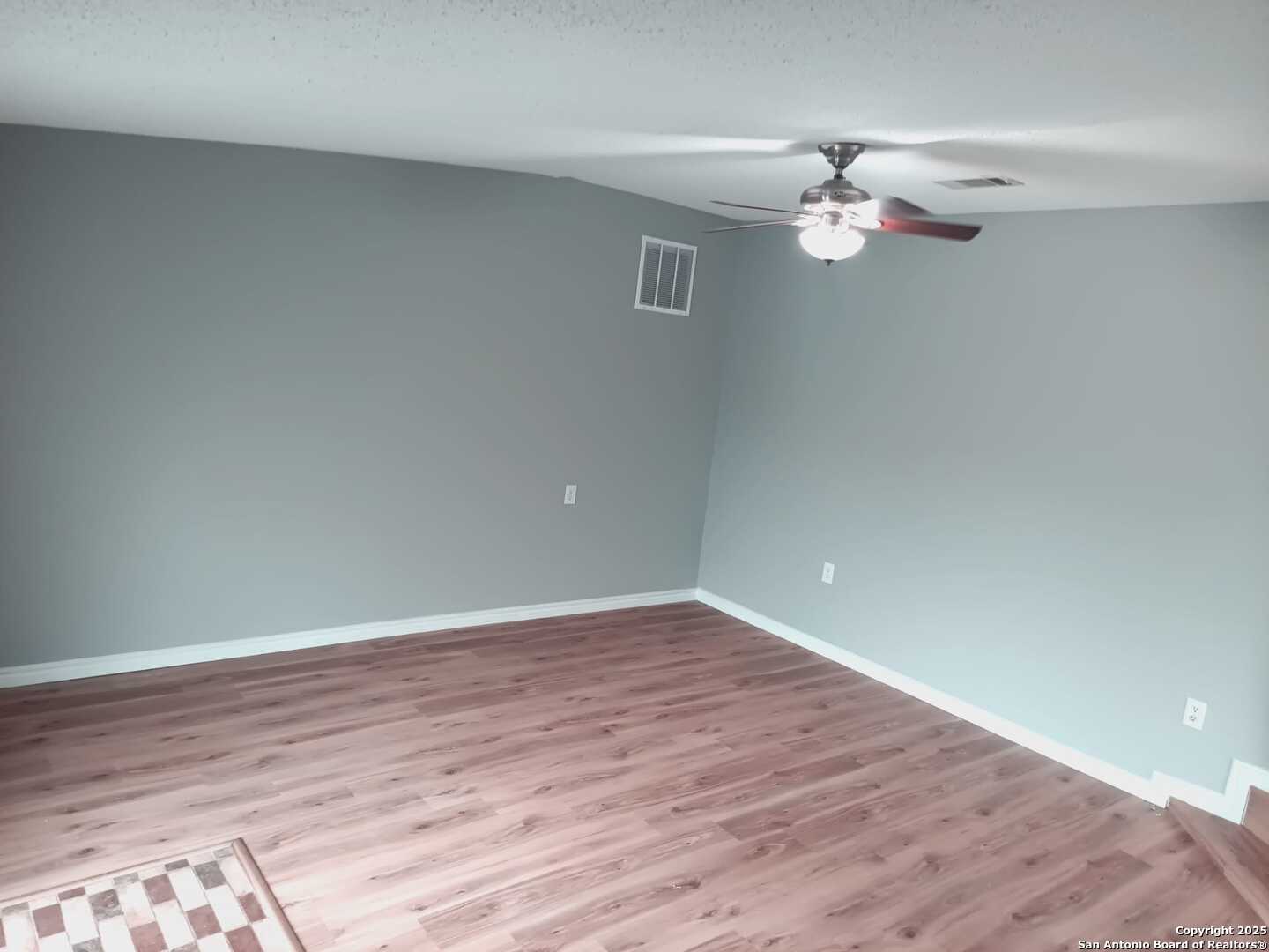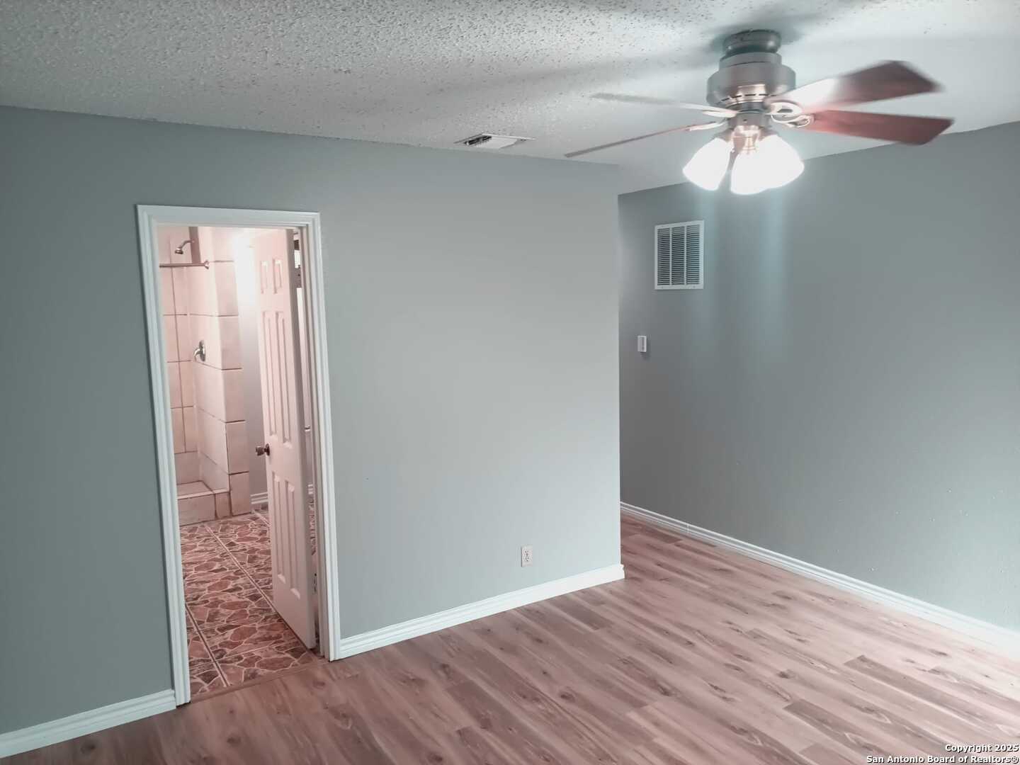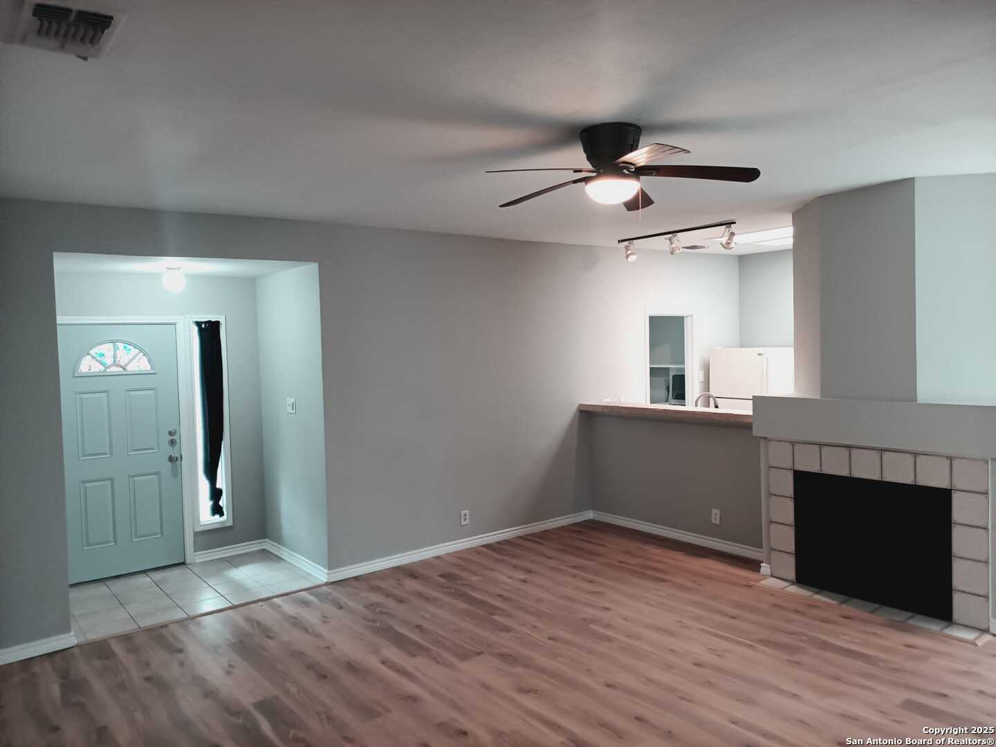 SPACIOUS 3 bedroom 2 bath home. Located in Feather Ridge Subdivision. Nicely remodeled with upgrades including new kitchen cabinets, bathroom cabinets, paint throughout and newly laid floors!. Large open living area and dining area. Backroom opens onto the back patio (no closet located in this 3rd room). Master includes walk in shower and HUGE walk in closet. Two car oversized garage with a work area and lots of storage. Easy access to multiple highways including I35 and 1604 and Loop 410. Appliances include washer, dryer & refrigerator. Step outside to your large, fenced backyard that backs up to a serene greenbelt, providing peace and privacy. It's the ideal spot for outdoor gatherings or simply enjoying nature. Easy Commute to JBSA (formerly Fort Sam Houston), Randolph AFB, Rackspace, RBFCU, IKEA, Shopping and more. Neighborhood has a Community Park with seasonal activities for all. Lawn service available with an additional small monthly fee.
