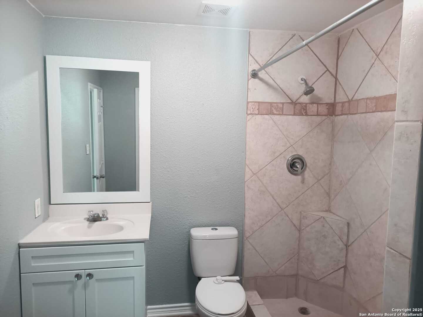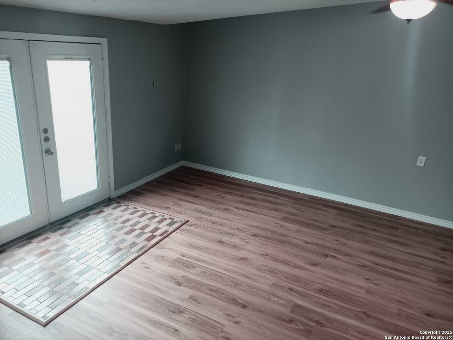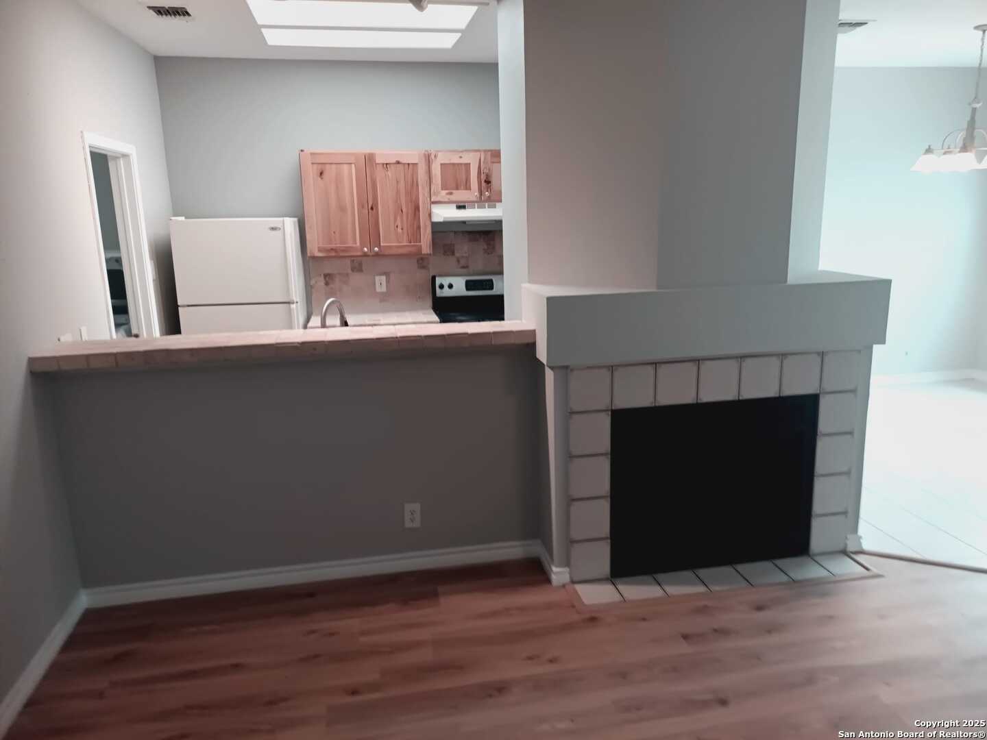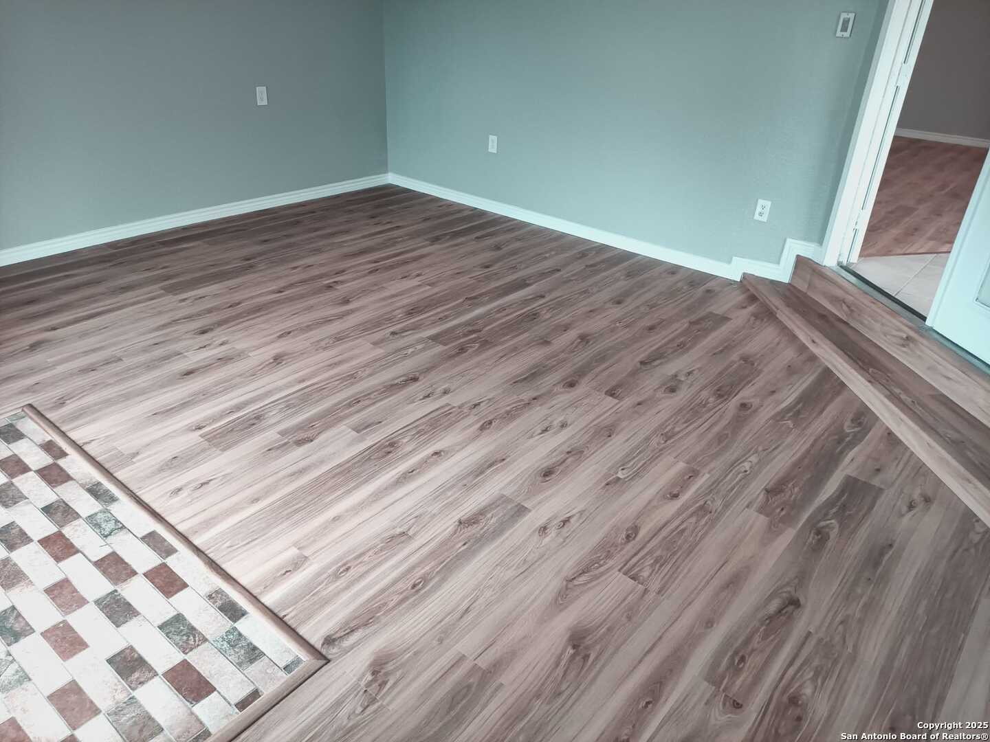 SPACIOUS 3 bedroom 2 bath home. Located in Feather Ridge Subdivision. Nicely remodeled with upgrades including new kitchen cabinets, bathroom cabinets, paint throughout and newly laid floors!. Large open living area and dining area. Backroom opens onto the back patio (no closet located in this 3rd room). Master includes walk in shower and HUGE walk in closet. Two car oversized garage with a work area and lots of storage. Easy access to multiple highways including I35 and 1604 and Loop 410. Appliances include washer, dryer & refrigerator. Step outside to your large, fenced backyard that backs up to a serene greenbelt, providing peace and privacy. It's the ideal spot for outdoor gatherings or simply enjoying nature. Easy Commute to JBSA (formerly Fort Sam Houston), Randolph AFB, Rackspace, RBFCU, IKEA, Shopping and more. Neighborhood has a Community Park with seasonal activities for all. Lawn service available with an additional small monthly fee.
