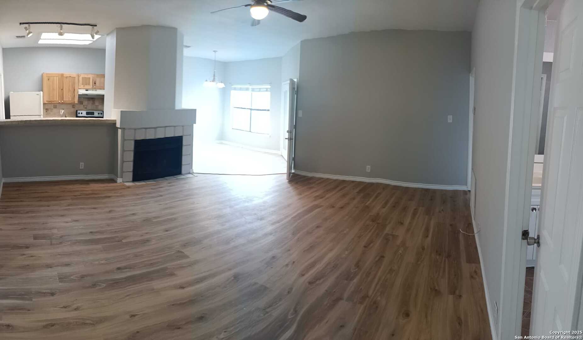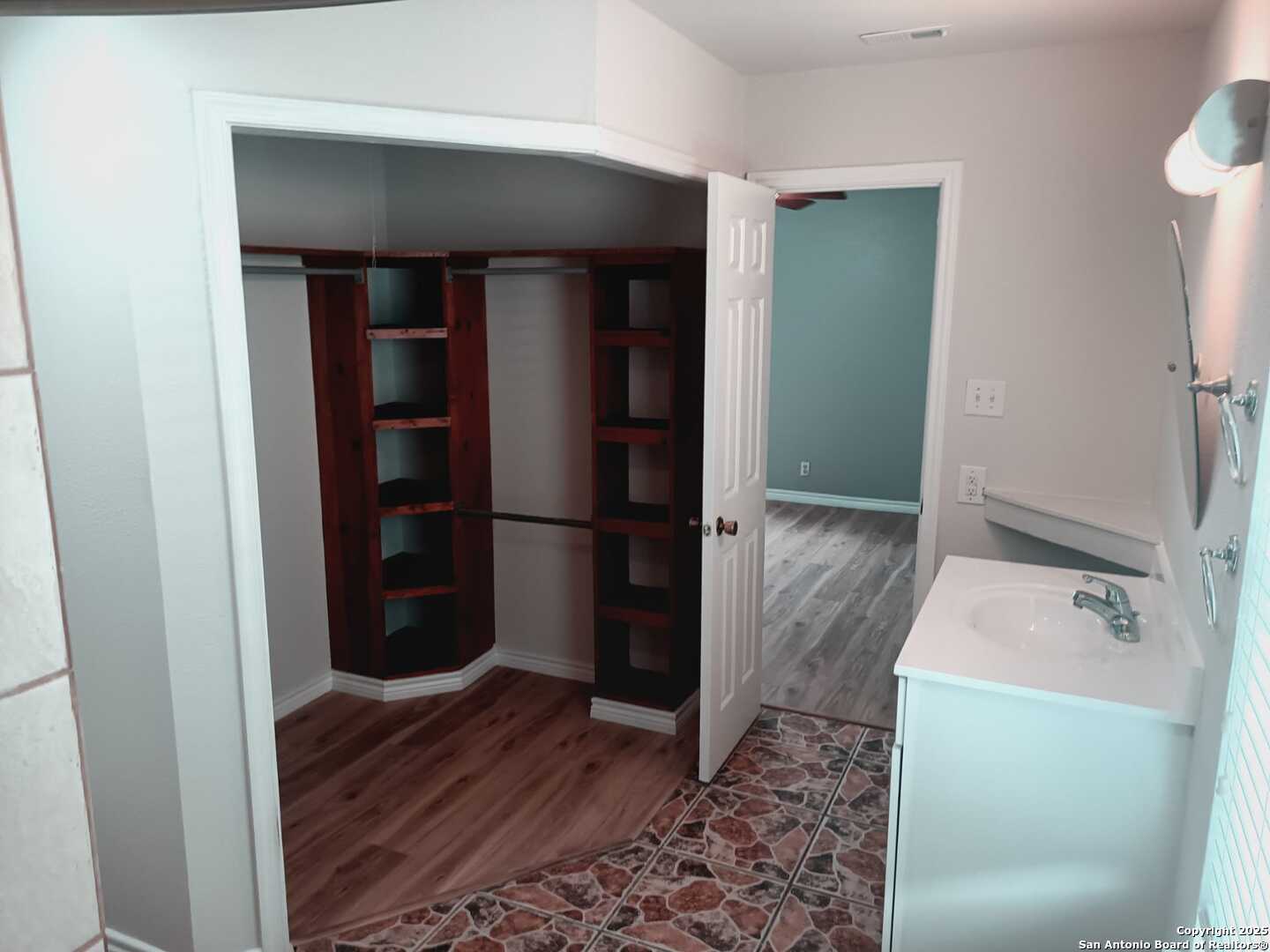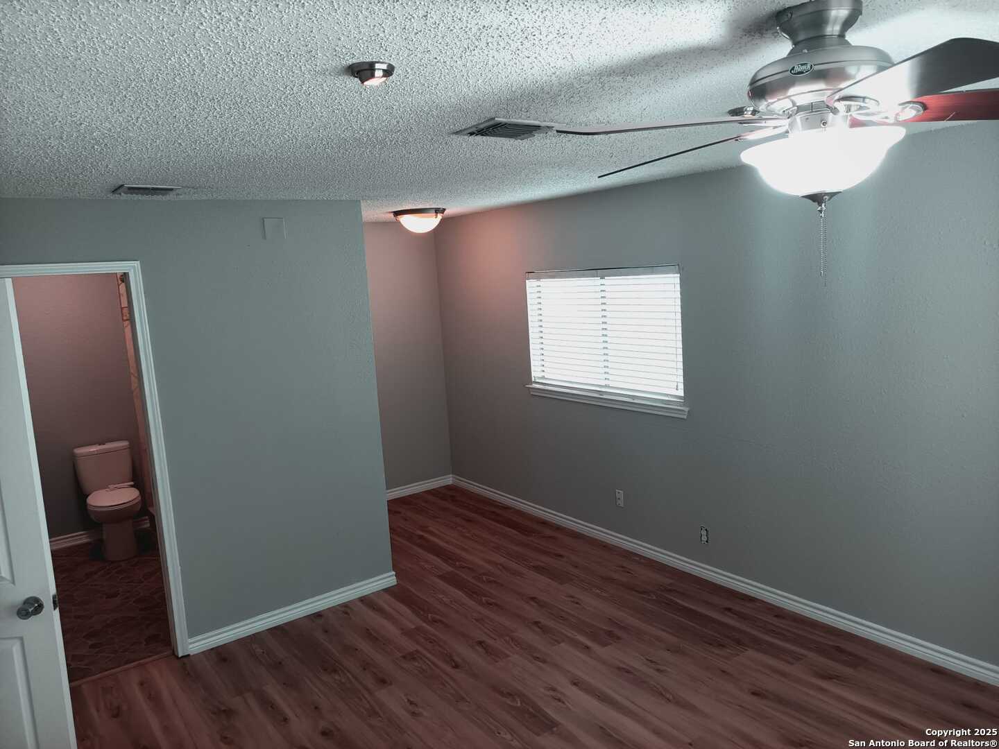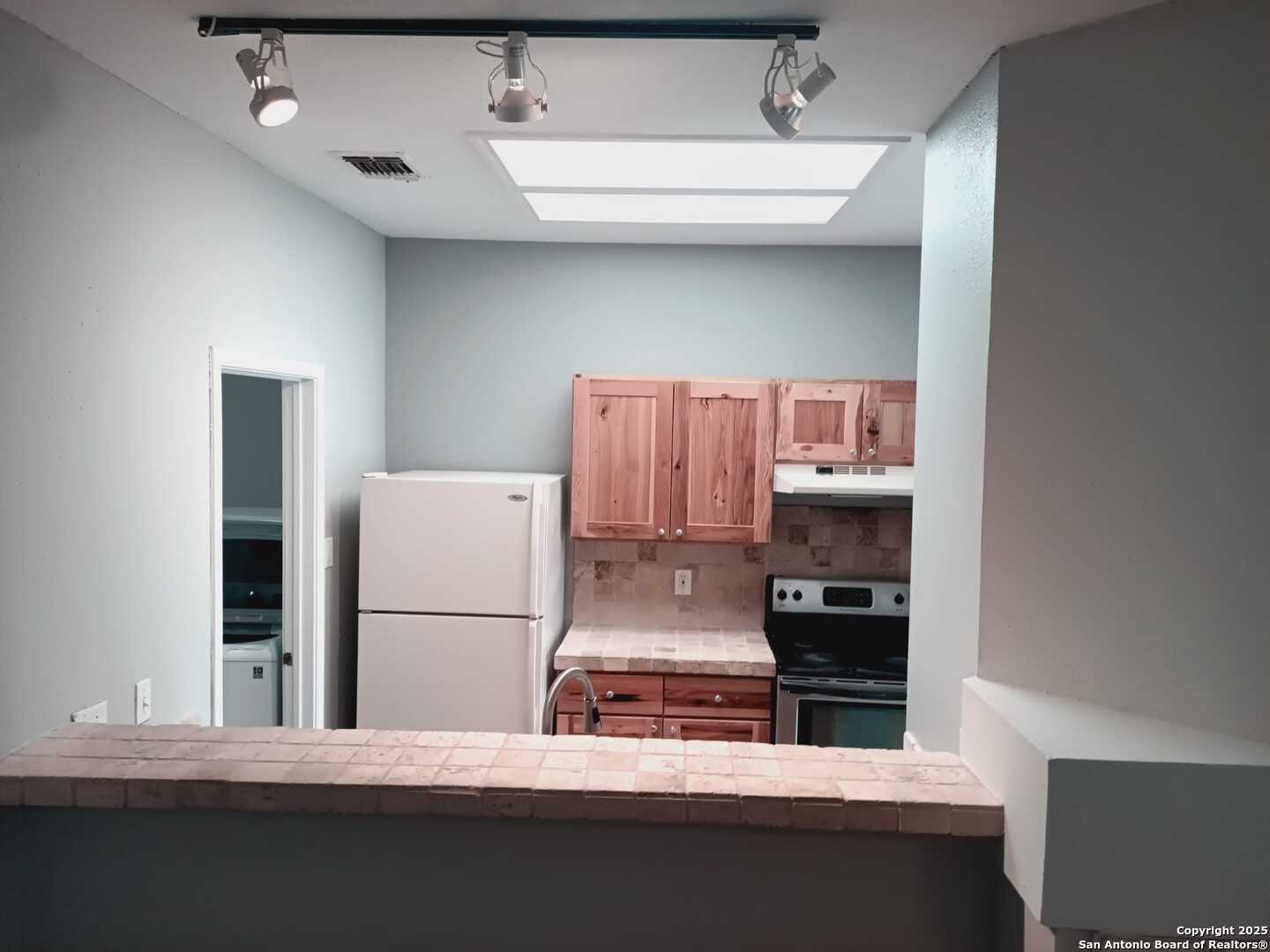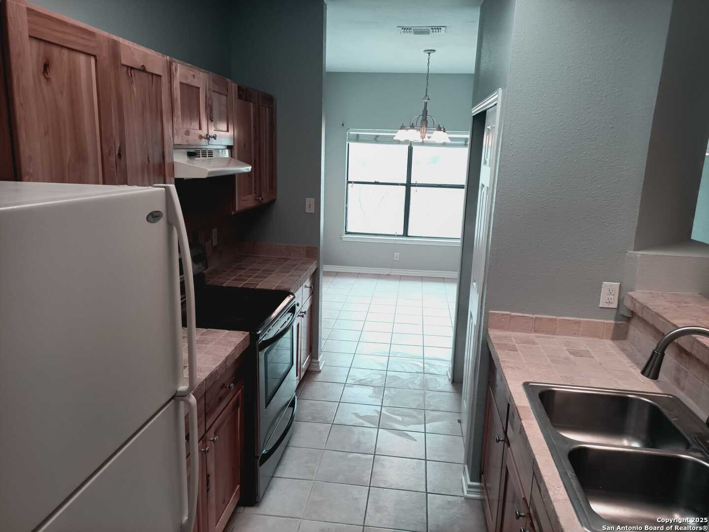 SPACIOUS 3 bedroom 2 bath home. Located in Feather Ridge Subdivision. Nicely remodeled with upgrades including new kitchen cabinets, bathroom cabinets, paint throughout and newly laid floors!. Large open living area and dining area. Backroom opens onto the back patio (no closet located in this 3rd room). Master includes walk in shower and HUGE walk in closet. Two car oversized garage with a work area and lots of storage. Easy access to multiple highways including I35 and 1604 and Loop 410. Appliances include washer, dryer & refrigerator. Step outside to your large, fenced backyard that backs up to a serene greenbelt, providing peace and privacy. It's the ideal spot for outdoor gatherings or simply enjoying nature. Easy Commute to JBSA (formerly Fort Sam Houston), Randolph AFB, Rackspace, RBFCU, IKEA, Shopping and more. Neighborhood has a Community Park with seasonal activities for all. Lawn service available with an additional small monthly fee.
