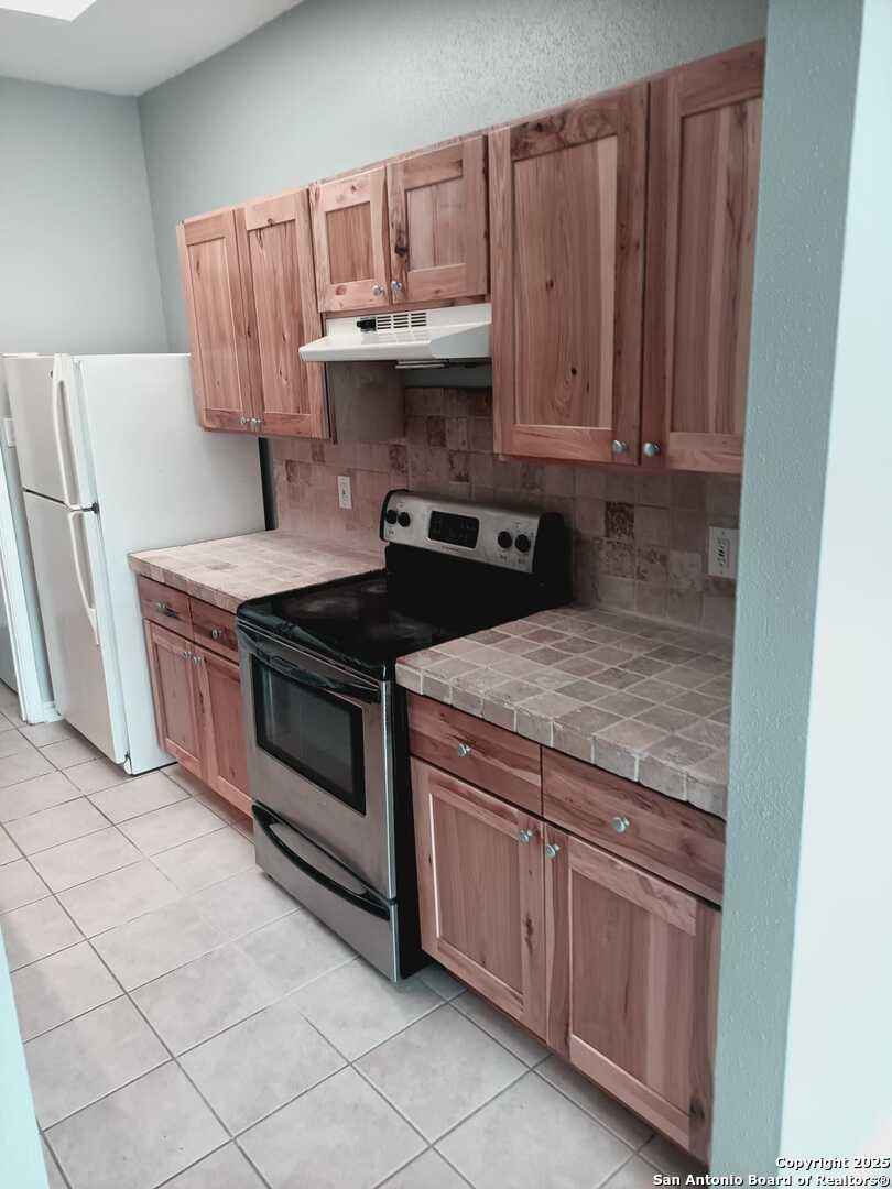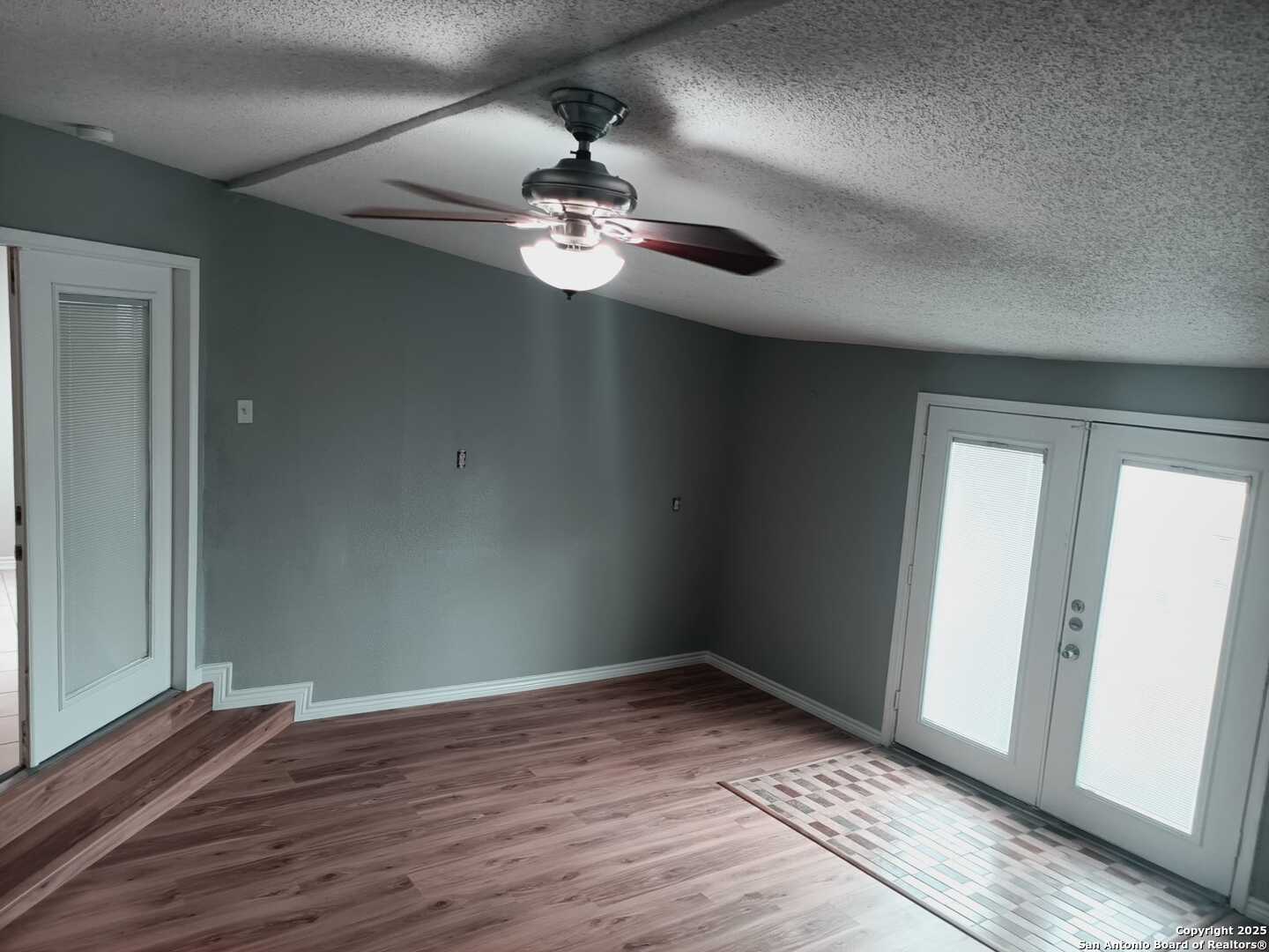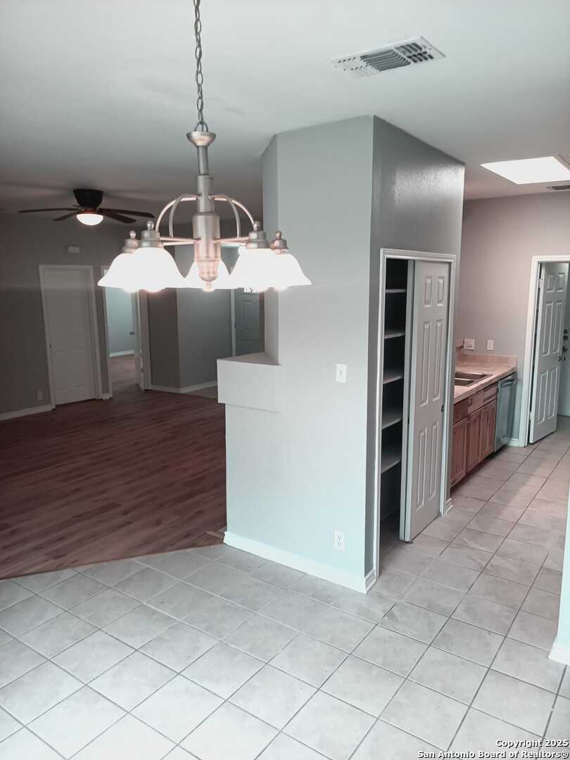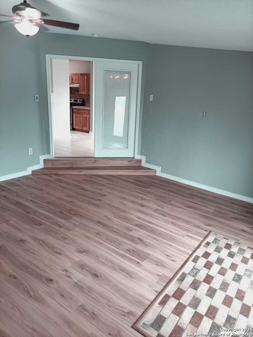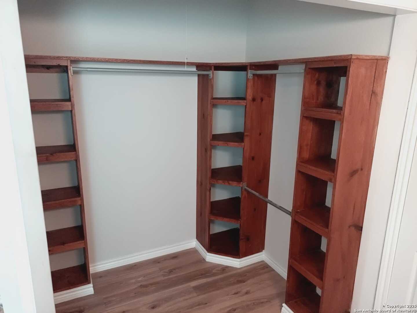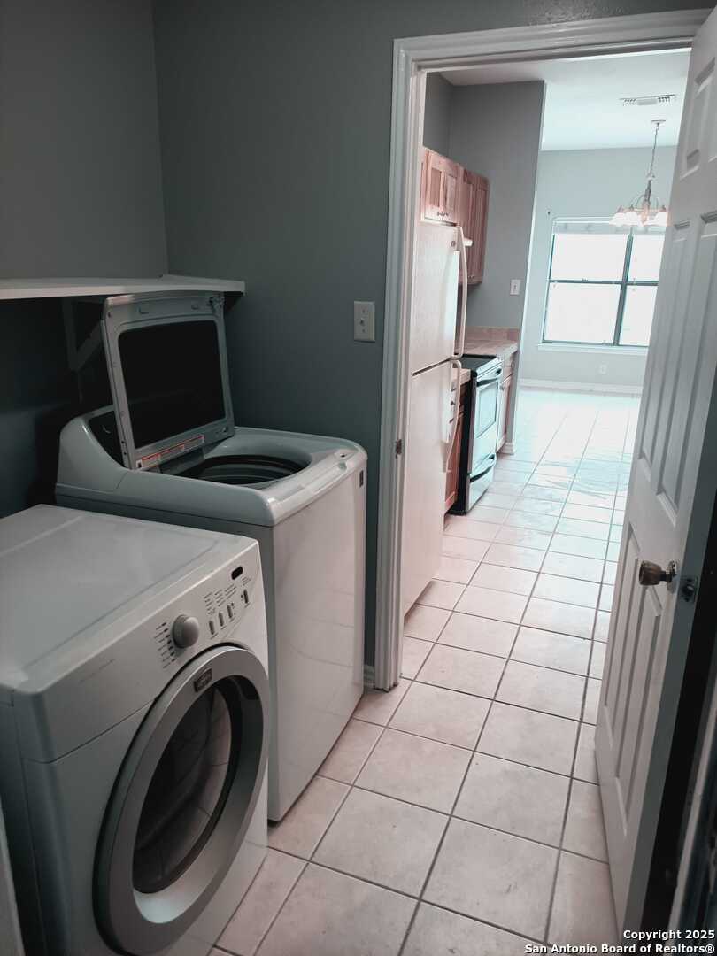 SPACIOUS 3 bedroom 2 bath home. Located in Feather Ridge Subdivision. Nicely remodeled with upgrades including new kitchen cabinets, bathroom cabinets, paint throughout and newly laid floors!. Large open living area and dining area. Backroom opens onto the back patio (no closet located in this 3rd room). Master includes walk in shower and HUGE walk in closet. Two car oversized garage with a work area and lots of storage. Easy access to multiple highways including I35 and 1604 and Loop 410. Appliances include washer, dryer & refrigerator. Step outside to your large, fenced backyard that backs up to a serene greenbelt, providing peace and privacy. It's the ideal spot for outdoor gatherings or simply enjoying nature. Easy Commute to JBSA (formerly Fort Sam Houston), Randolph AFB, Rackspace, RBFCU, IKEA, Shopping and more. Neighborhood has a Community Park with seasonal activities for all. Lawn service available with an additional small monthly fee.