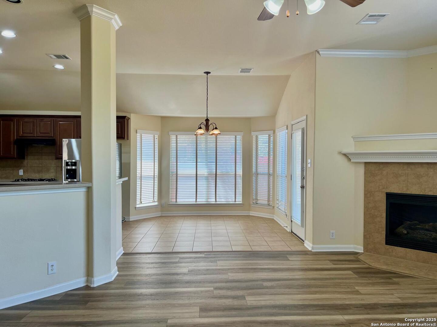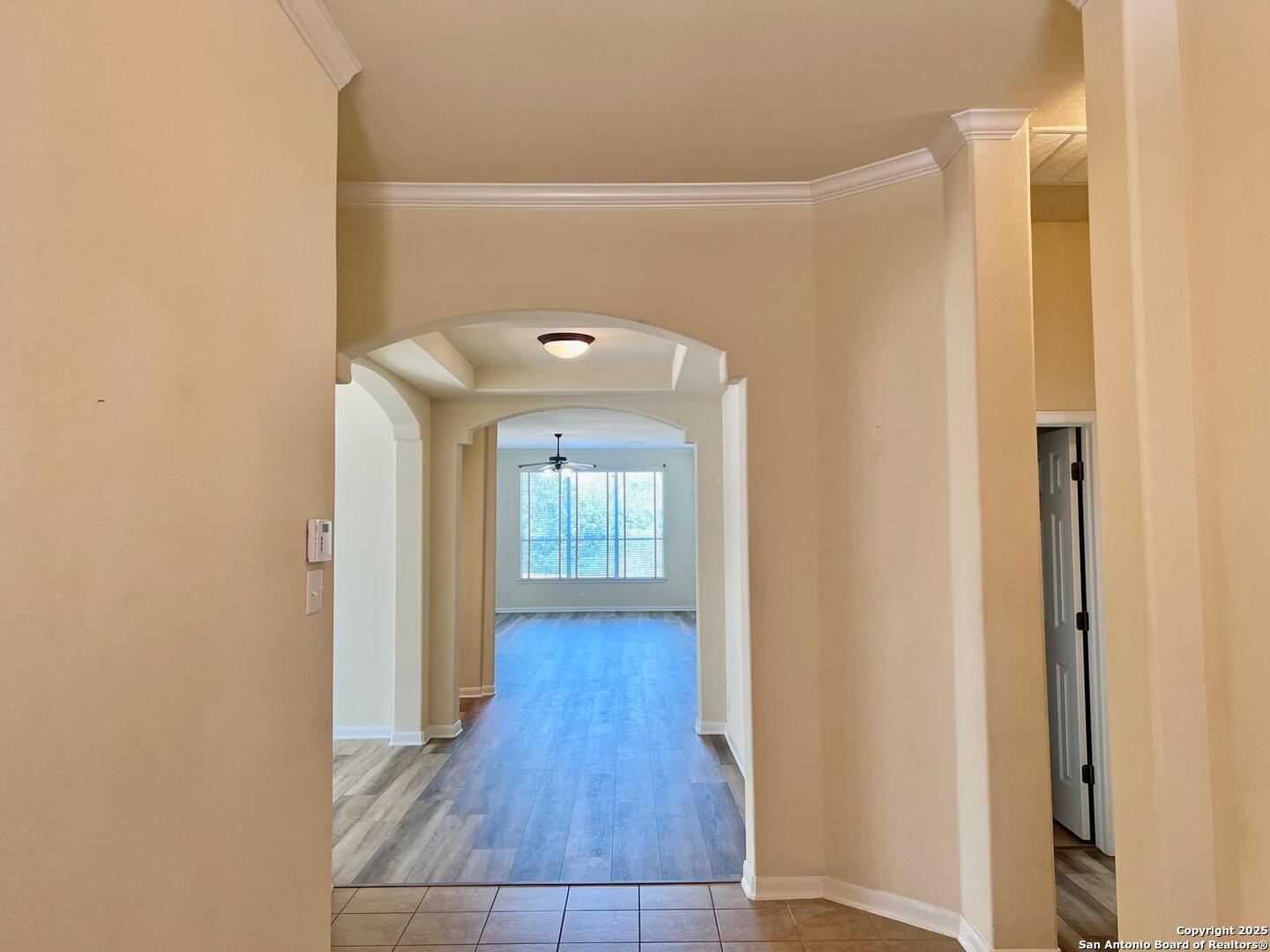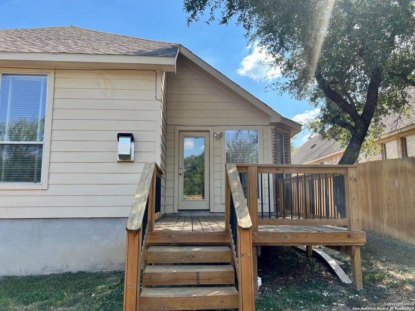 Step into your dream home! This gorgeous custom single-story residence offers 2,300 sq. ft. of comfortable living space, featuring 4 bedrooms and 2 baths! The 4th bedroom/flex room is the perfect study/guest room with closet space for storage! Enjoy beautiful ceramic tile in wet areas, neutral paint tones, and blinds throughout. The grand foyer with tray ceiling opens to a spacious family room that flows seamlessly into the over-sized kitchen-complete with a breakfast bar, stainless-steel appliances, and sleek silestone countertops. Enjoy THREE eating areas, a dedicated private dining room, breakfast nook off the kitchen and tons of room for entertaining at the breakfast bar! The primary suite boasts dual vanities, an oversized tub, separate shower, and a generous walk-in closet. Conveniently located near Hwy 90 & Loop 1604 and just minutes from Lackland AFB. Don't miss your chance-schedule your showing today!