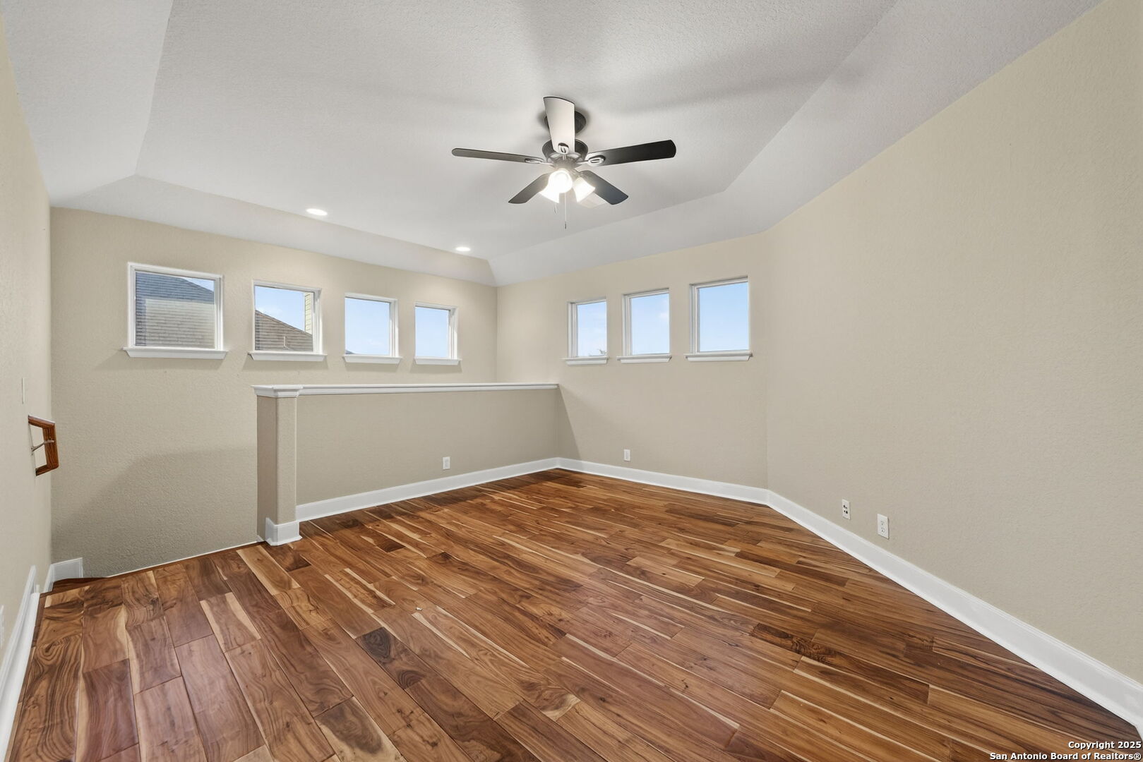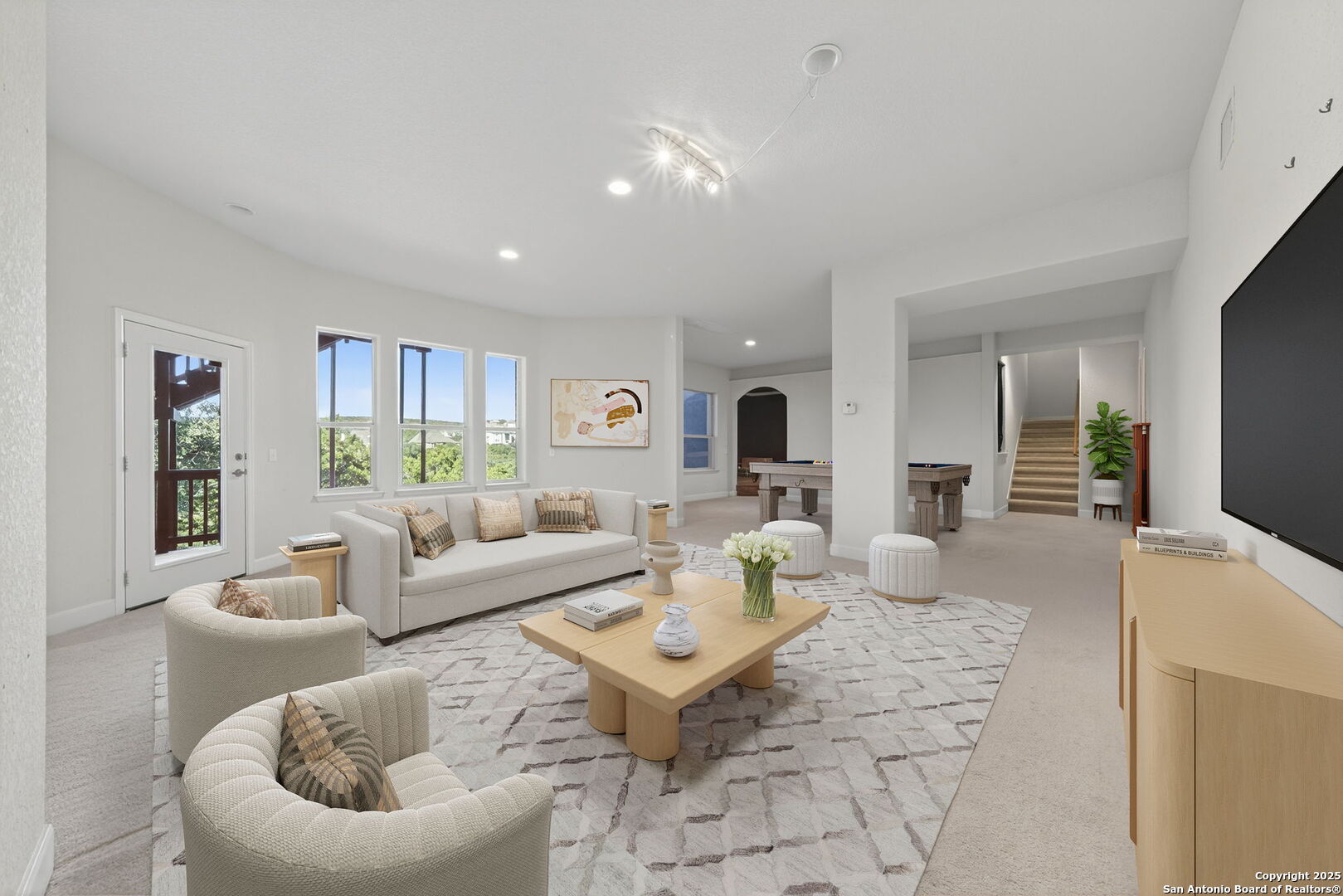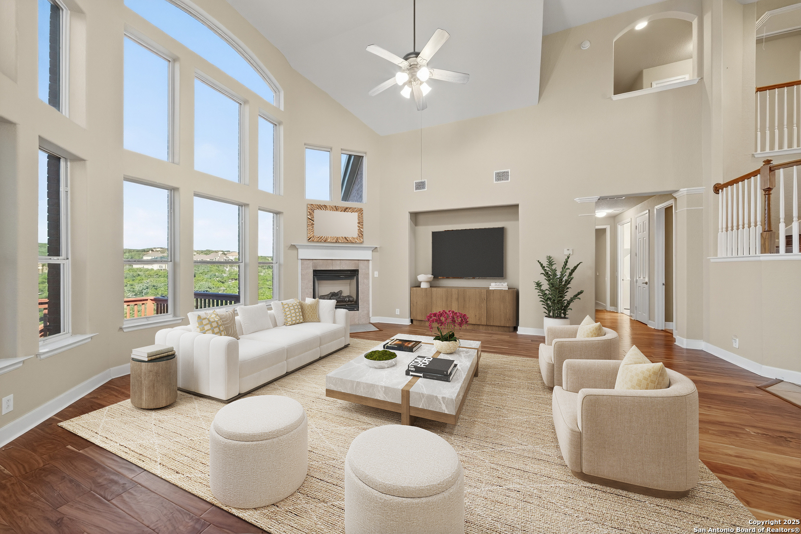 Stunning Hill Country home with unmatched views & rare Texas walk-out basement. Discover extraordinary Hill Country living in this spacious and versatile home perched on nearly 3/4 of an acre and backing to a serene greenbelt. With soaring panoramic views showcased through expansive picture windows on all three levels, this home perfectly blends everyday comfort with breathtaking natural beauty. Designed for flexibility and modern living, the home features a unique Texas walk-out basement-a rare find in the area-ideal for homeschooling, crafts and hobbies, a teen retreat, a work-from-home studio, or even podcast production. The lower level also offers a dedicated media room, creating an exceptional space for entertainment and relaxation. Upstairs, a bright and inviting library with built-in bookcases anchors the upper living spaces, accompanied by a spacious gameroom. With five living areas throughout the home, including the walk-out basement, there's room for everyone and every activity. This home is also wonderfully suited for hosting. The thoughtful layout includes two separate staircases, one leading to an upstairs area ideal for a mother-in-law suite or guest retreat with its own access from the main floor. Beautiful wood floors span the main two levels, complemented by tile in the wet areas. With its incredible views, rare architectural features, and endless possibilities for living, working, and entertaining, this is truly a one-of-a-kind Hill Country home you won't want to miss.