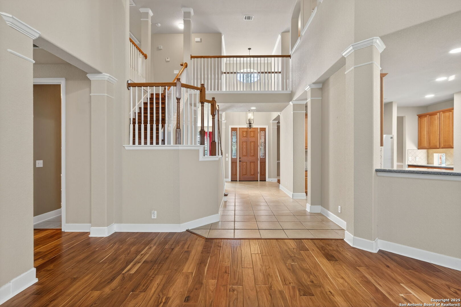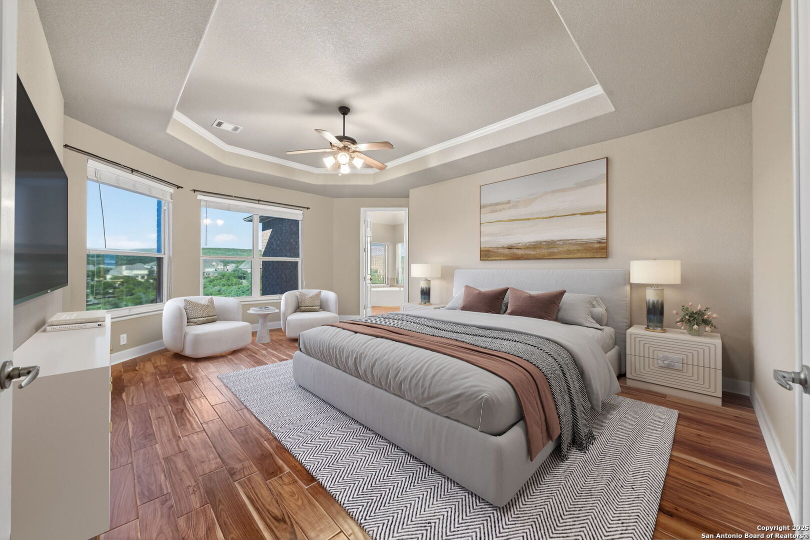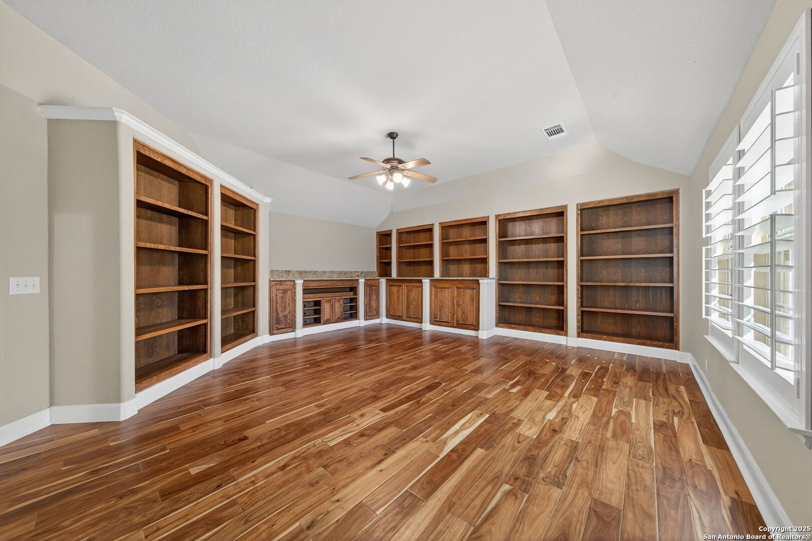 Stunning Hill Country home with unmatched views & rare Texas walk-out basement. Discover extraordinary Hill Country living in this spacious and versatile home perched on nearly 3/4 of an acre and backing to a serene greenbelt. With soaring panoramic views showcased through expansive picture windows on all three levels, this home perfectly blends everyday comfort with breathtaking natural beauty. Designed for flexibility and modern living, the home features a unique Texas walk-out basement-a rare find in the area-ideal for homeschooling, crafts and hobbies, a teen retreat, a work-from-home studio, or even podcast production. The lower level also offers a dedicated media room, creating an exceptional space for entertainment and relaxation. Upstairs, a bright and inviting library with built-in bookcases anchors the upper living spaces, accompanied by a spacious gameroom. With five living areas throughout the home, including the walk-out basement, there's room for everyone and every activity. This home is also wonderfully suited for hosting. The thoughtful layout includes two separate staircases, one leading to an upstairs area ideal for a mother-in-law suite or guest retreat with its own access from the main floor. Beautiful wood floors span the main two levels, complemented by tile in the wet areas. With its incredible views, rare architectural features, and endless possibilities for living, working, and entertaining, this is truly a one-of-a-kind Hill Country home you won't want to miss.