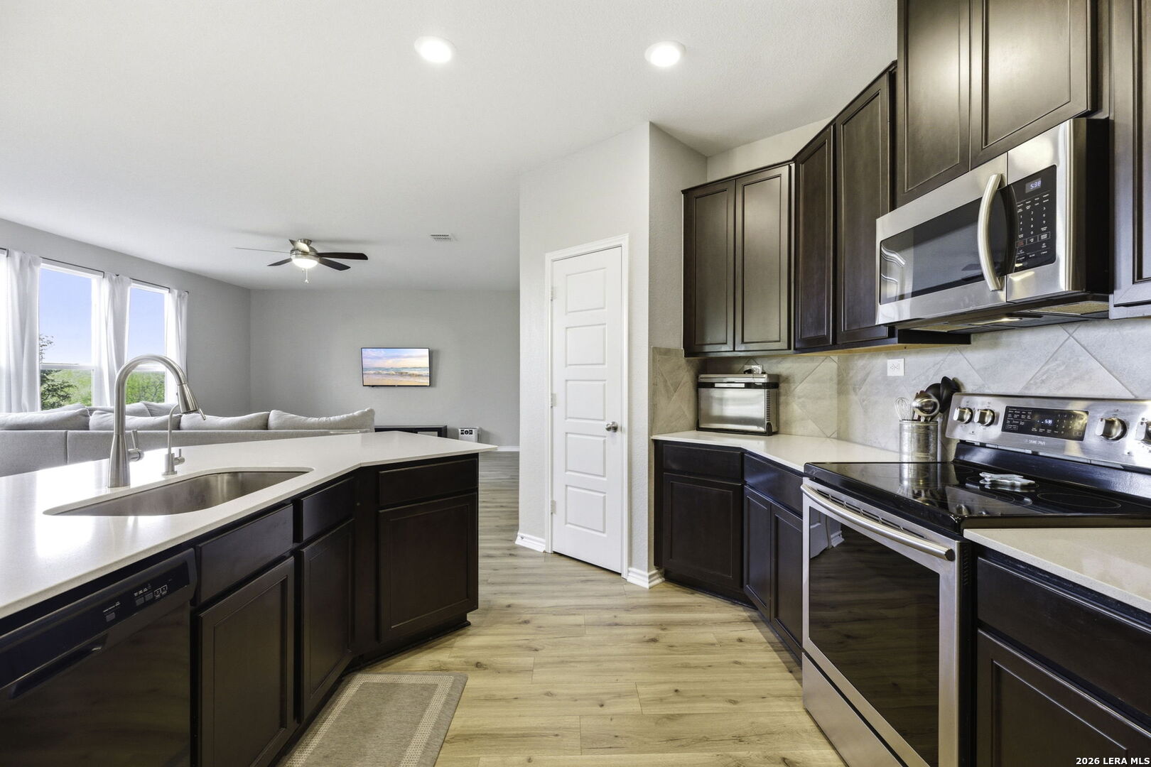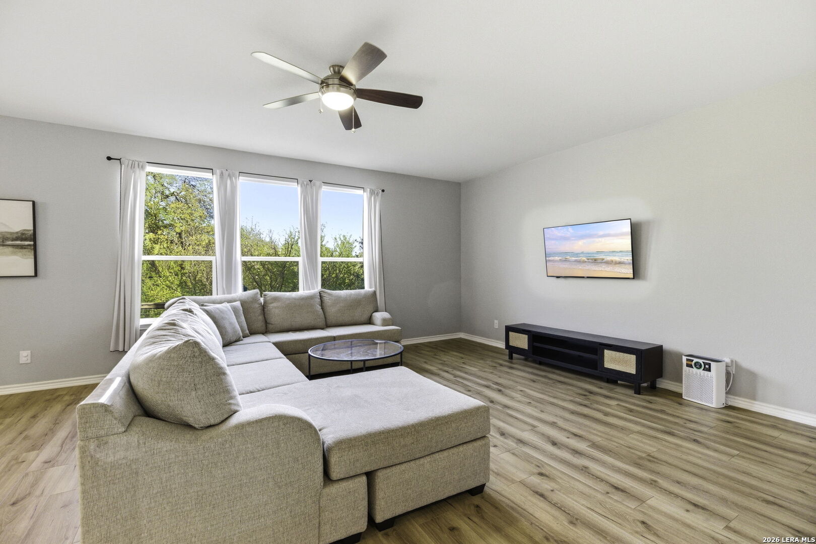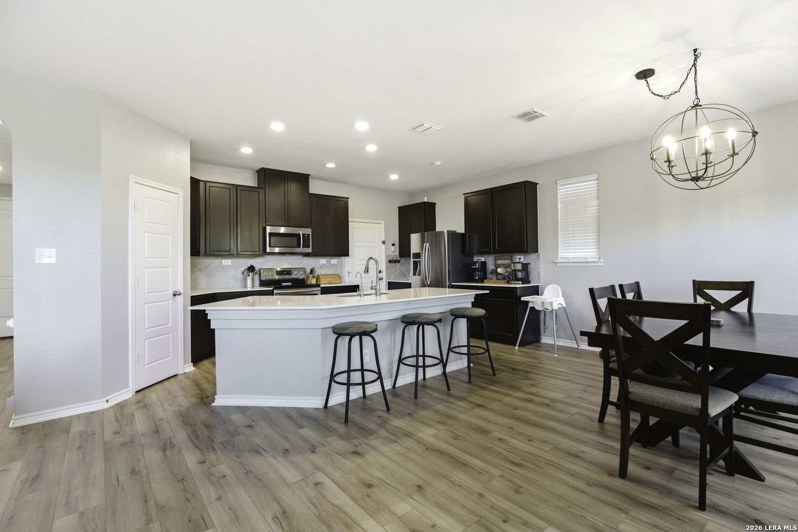 Welcome to 1303 Swan Court, an exceptional residence tucked away on a serene cul-de-sac in one of San Antonio's most sought-after communities. This stunning home effortlessly blends refined elegance with modern comfort, offering a sophisticated lifestyle in the heart of the desirable Dove Creek. From the moment you enter, you're greeted by an expansive, light-filled interior adorned with upscale finishes and thoughtfully designed spaces. The open-concept layout creates a seamless flow, perfect for both grand entertaining and intimate gatherings. At the center of the home, the gourmet kitchen impresses with abundant cabinetry, generous prep space, and an inviting design that opens beautifully to the living and dining areas. The luxurious primary suite serves as a private retreat, featuring a spa-inspired en-suite bath and ample closet space designed for both comfort and convenience. Secondary bedrooms are equally well-appointed, offering flexibility for guests, a home office, or personalized living spaces. Step outside to your own private oasis, where the backyard provides the perfect setting for outdoor relaxation or upscale entertaining on a recently added deck. The home's cul-de-sac placement enhances privacy while maintaining close proximity to premier shopping, dining, top-rated schools, and major thoroughfares. Experience elevated living at 1303 Swan Court-where style, comfort, and location come together in perfect harmony. An Assumable VA loan with a favorable rate for Veterans who qualify.