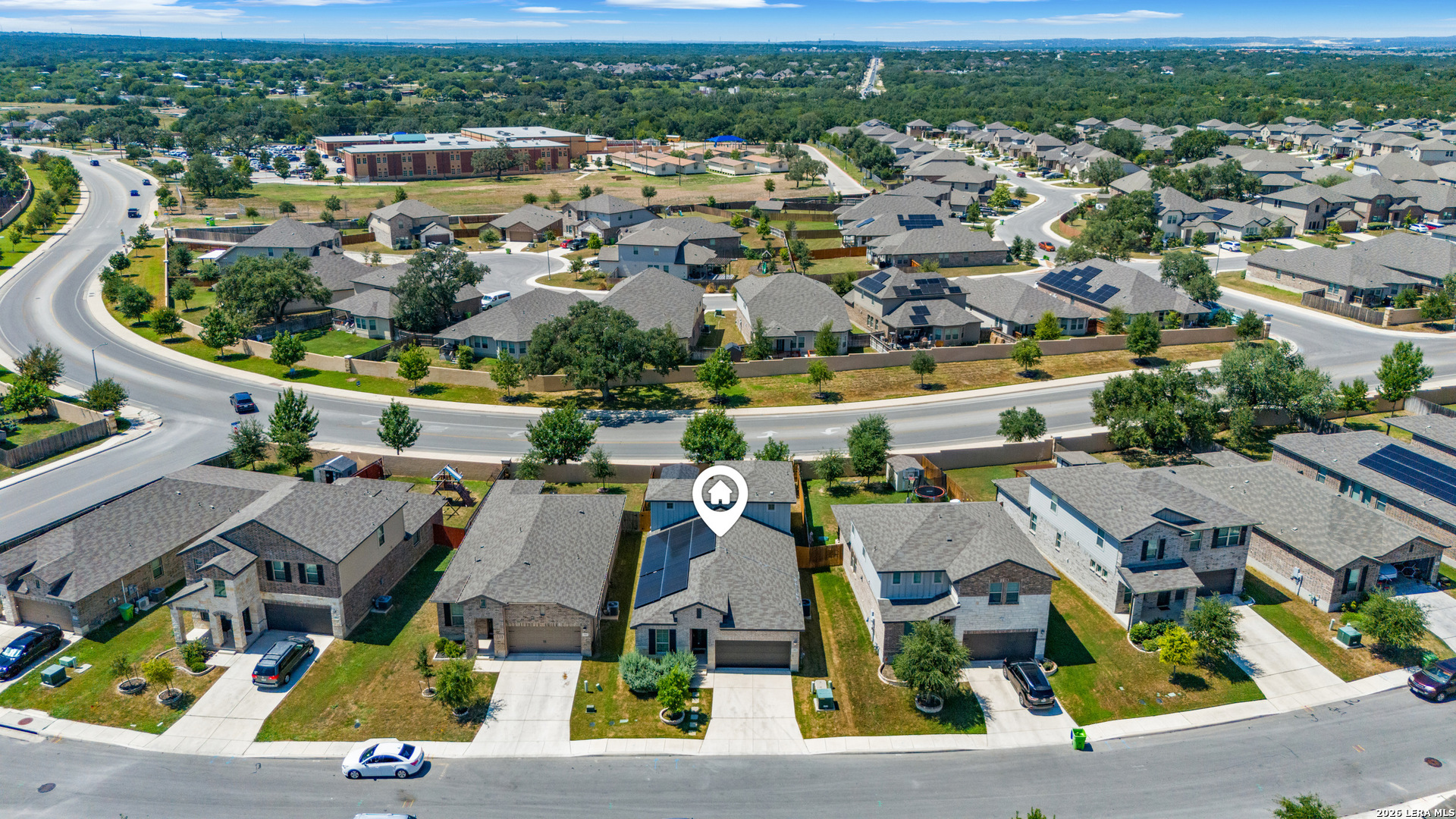 Welcome to this spacious and beautifully maintained home featuring 4 bedrooms, 3 full bathrooms, a versatile game room, and an additional upstairs bedroom-perfect for hosting guests or multigenerational living. The open-concept floor plan welcomes you with a generous living area and a separate dining space, ideal for entertaining. The gourmet kitchen is the heart of the home, showcasing a large center island, stylish stainless steel appliances, and a brand-new refrigerator. The primary suite is conveniently located on the main floor and offers a private retreat with dual vanities and a walk-in shower. A tucked-away office nook overlooking the backyard provides a quiet and functional space for work or study. Step outside to enjoy the expansive backyard, complete with a covered patio and storage shed-perfect for relaxing or entertaining. Energy-efficient solar panels help keep utility costs low. This home offers a rare 2.75% assumable interest rate for qualified VA buyers-an incredible opportunity in today's market! Conveniently located near top-rated schools and just 16 miles from Lackland AFB and 26 miles from Fort Sam Houston, this home is ideal for military families or commuters alike. This home truly checks all the boxes-space, comfort, and convenience. Schedule your private showing today!