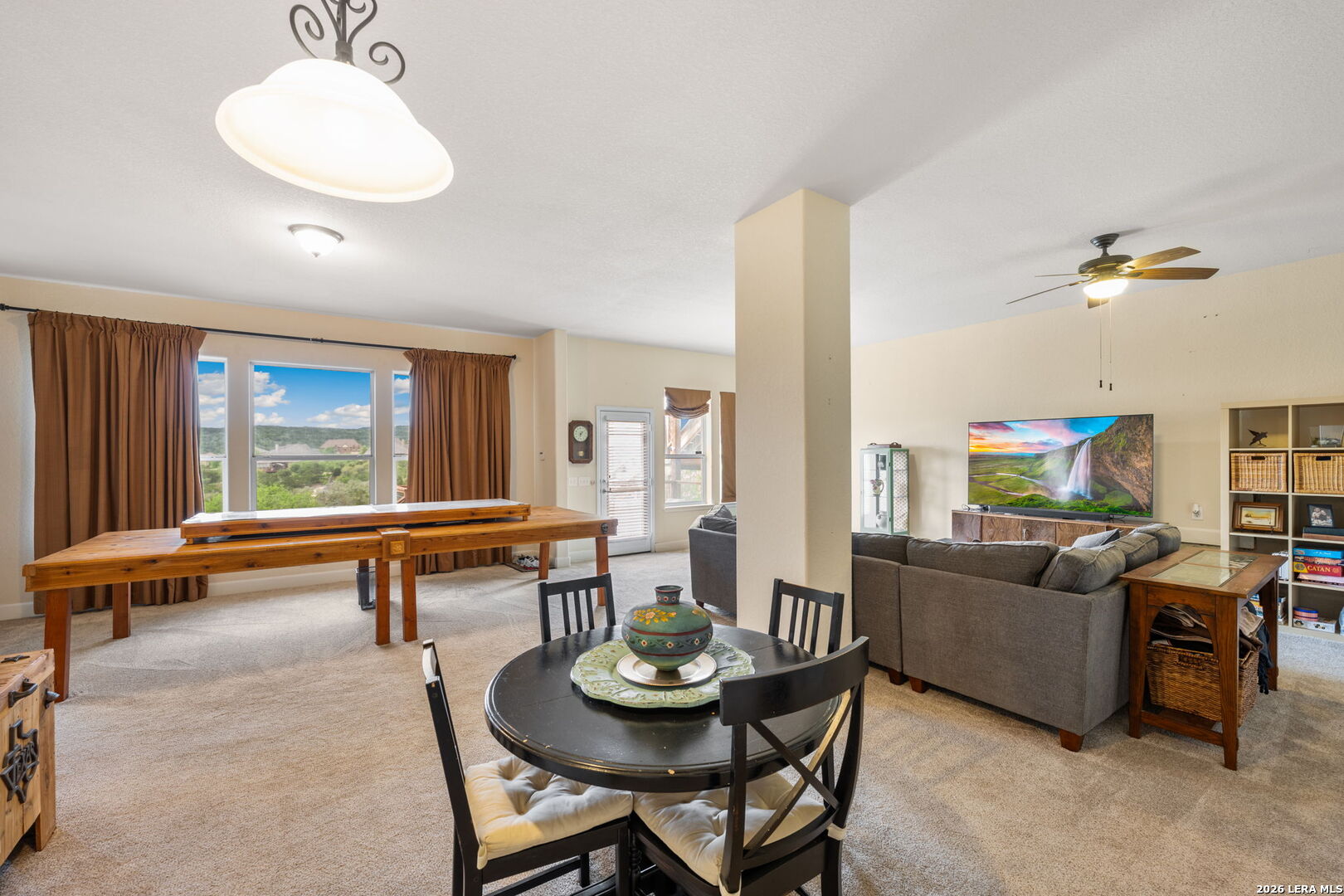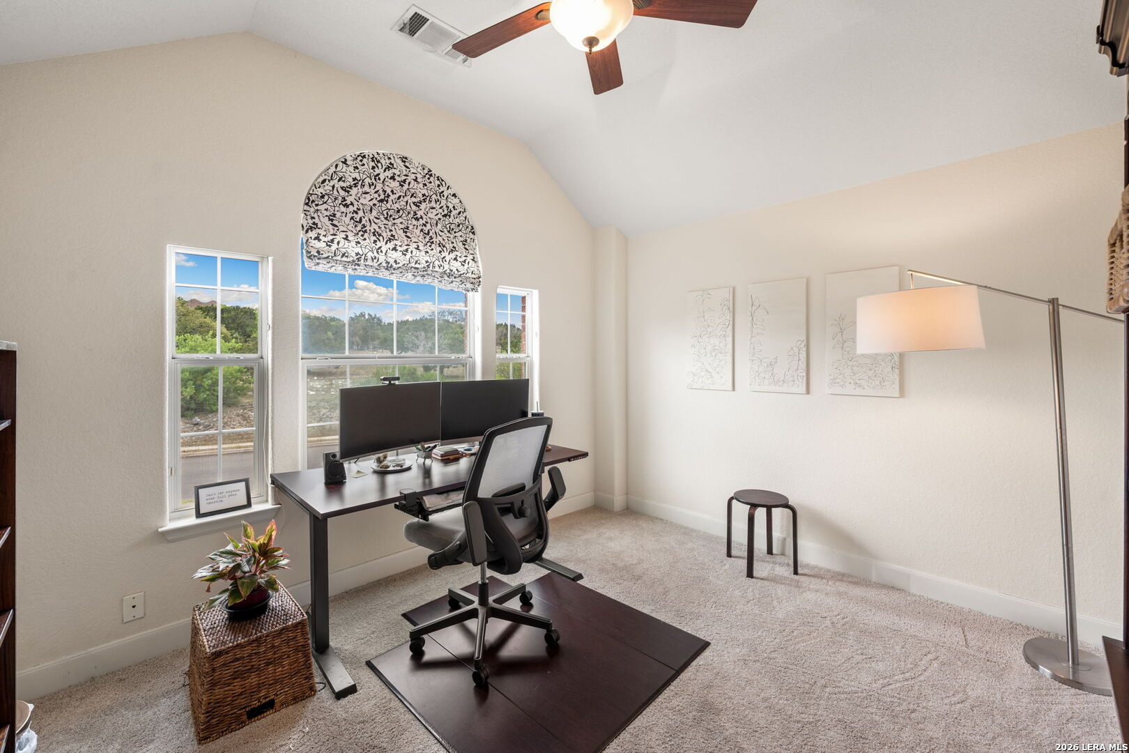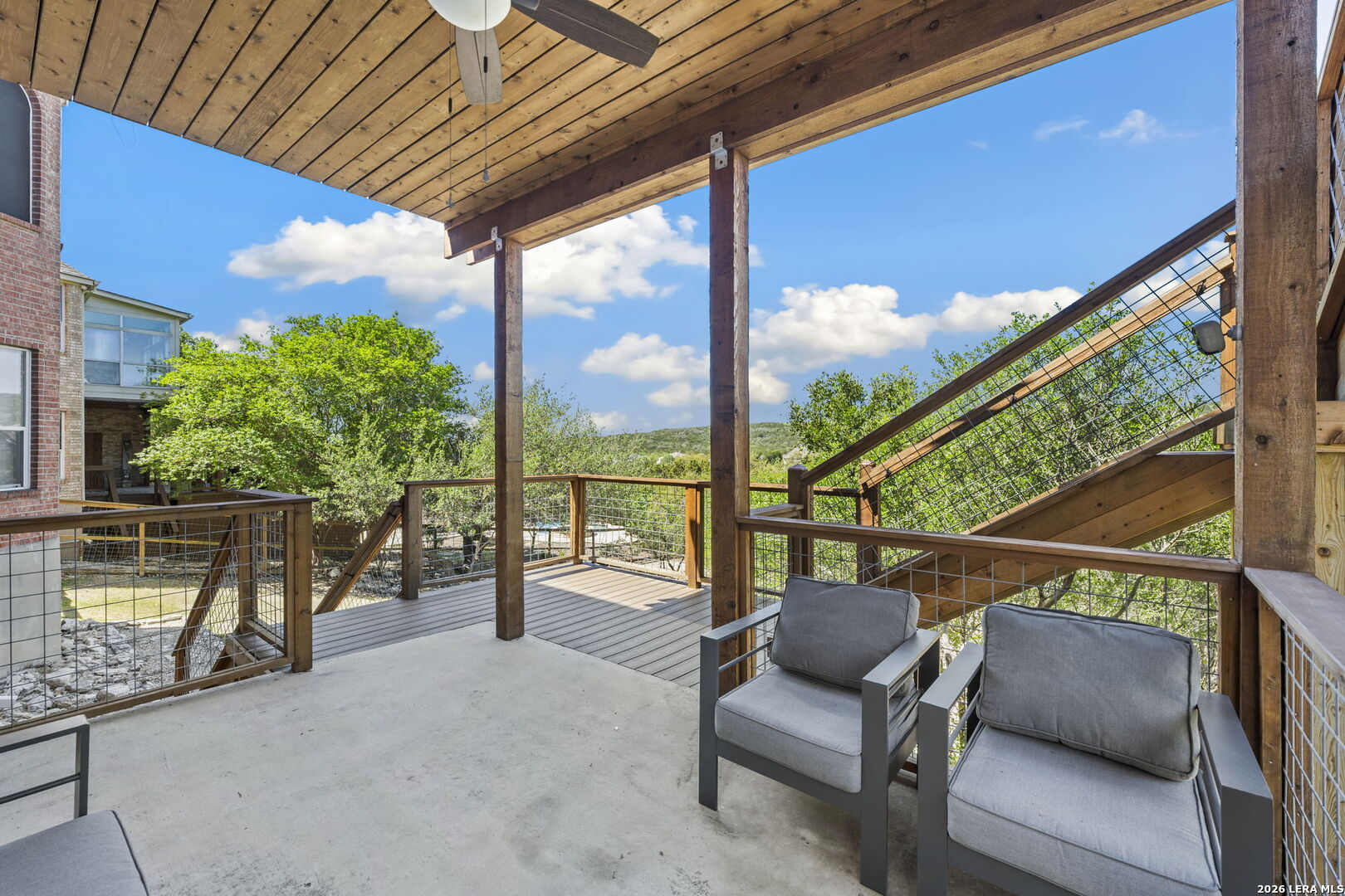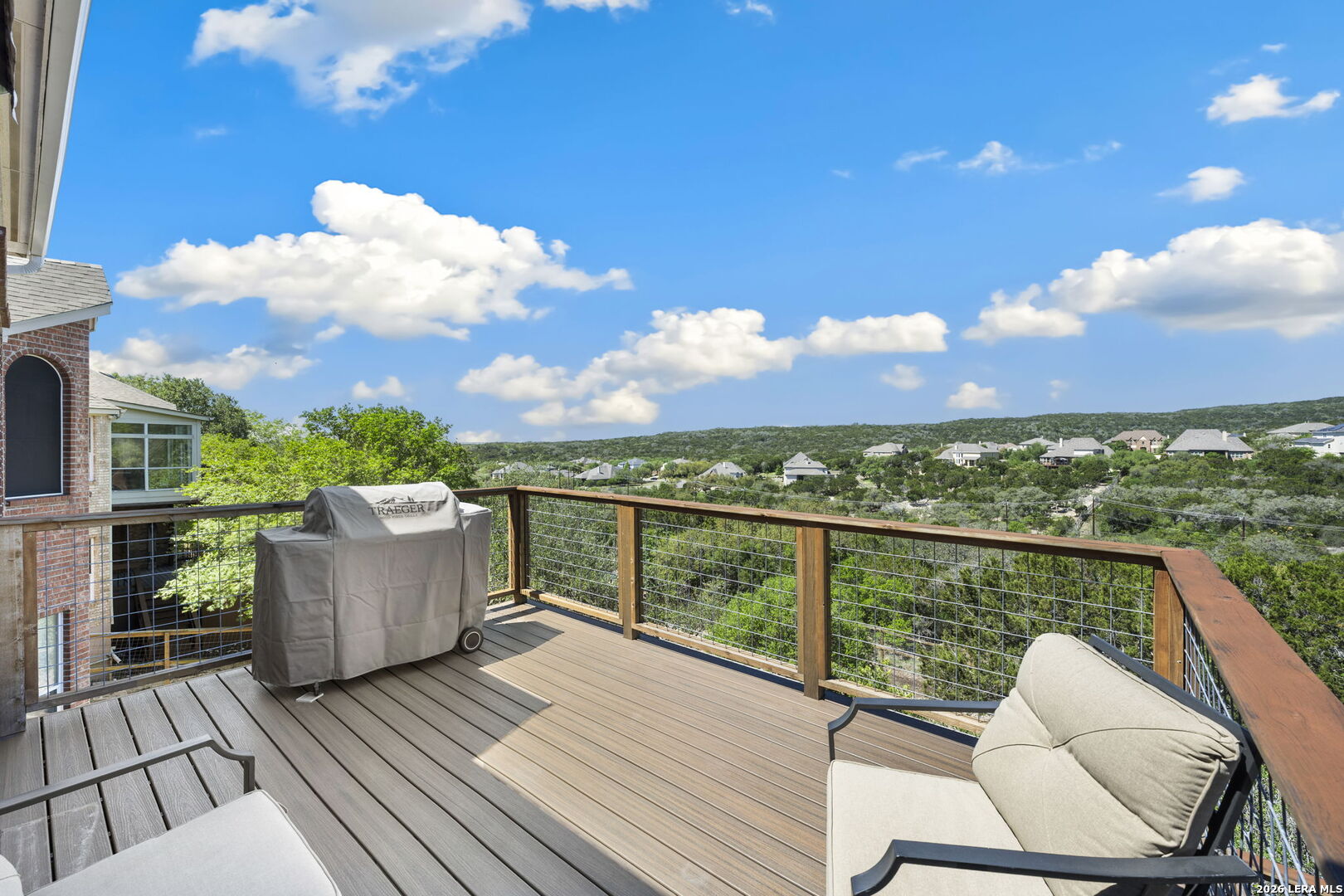 Natural light pours through a wall of windows, drawing you into a space where soaring ceilings and breathtaking bluff views set the tone for the day ahead. The living area centers around a cozy fireplace with custom built-ins that add both character and function, then flows seamlessly into the kitchen and dining spaces, creating an easy, connected layout for everyday living and entertaining. The kitchen offers generous prep space with Silestone countertops, gas cooking, stainless steel appliances, abundant cabinetry, and a bright breakfast nook wrapped in windows. Whether hosting or unwinding, each space feels welcoming, comfortable, and made to be lived in. Tucked on the main level, the primary suite offers a quiet retreat with peaceful surroundings, while a dedicated office creates a place to focus when needed. Downstairs, a Texas-style basement level becomes the go-to spot for game nights, movies, or gathering with friends, with flexible space for hobbies, a gym, or a workshop and easy access to the outdoors. Upstairs, four additional bedrooms provide room to spread out, with two connected by a Jack and Jill bath and the other two served by a nearby hallway bathroom. Thoughtful updates add peace of mind, including a recently replaced upstairs AC unit, UV lights installed on both systems, and the added benefit of a water softener. Other recent updates include a retractable awning, UV screens, gutters, storm doors, carpet, and a reverse osmosis filtration system. Outside, a new deck added in 2023 becomes a favorite place to take in the expansive scenery, all set on an oversized .75-acre lot that offers space, privacy, and room to enjoy it all. Moments from Old Town Helotes and neighborhood amenities, this home delivers space, scenery, and a lifestyle that's hard to match. Please be aware that some photos have been virtually staged.