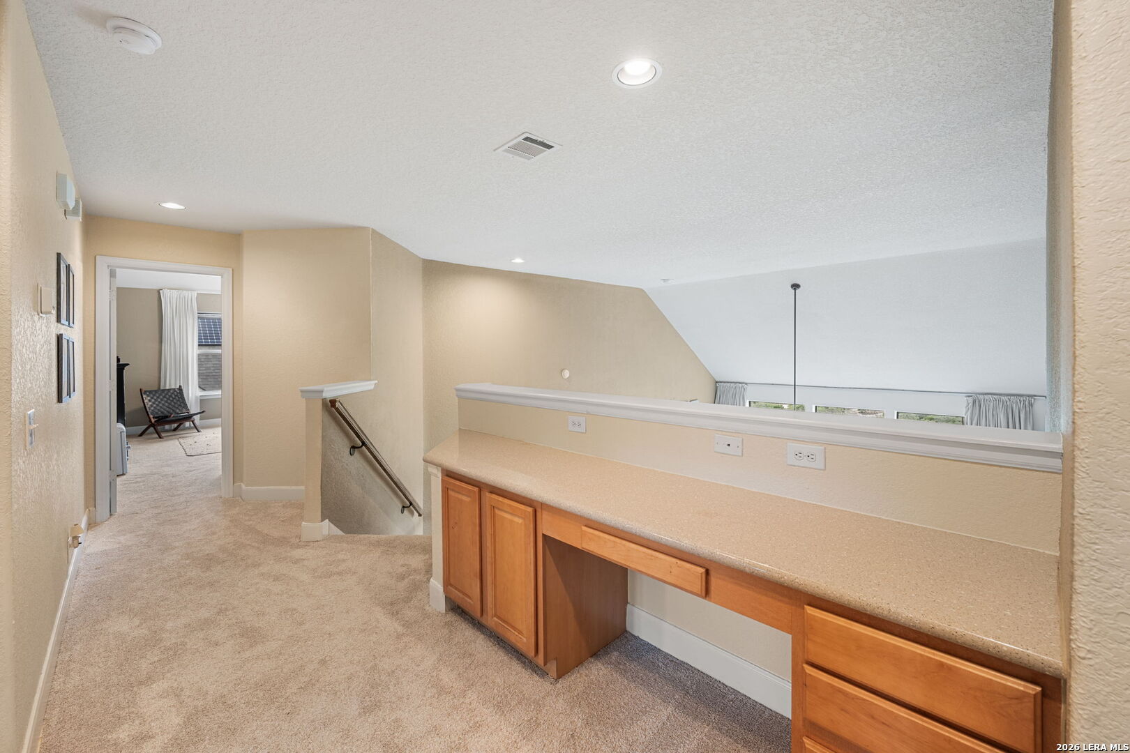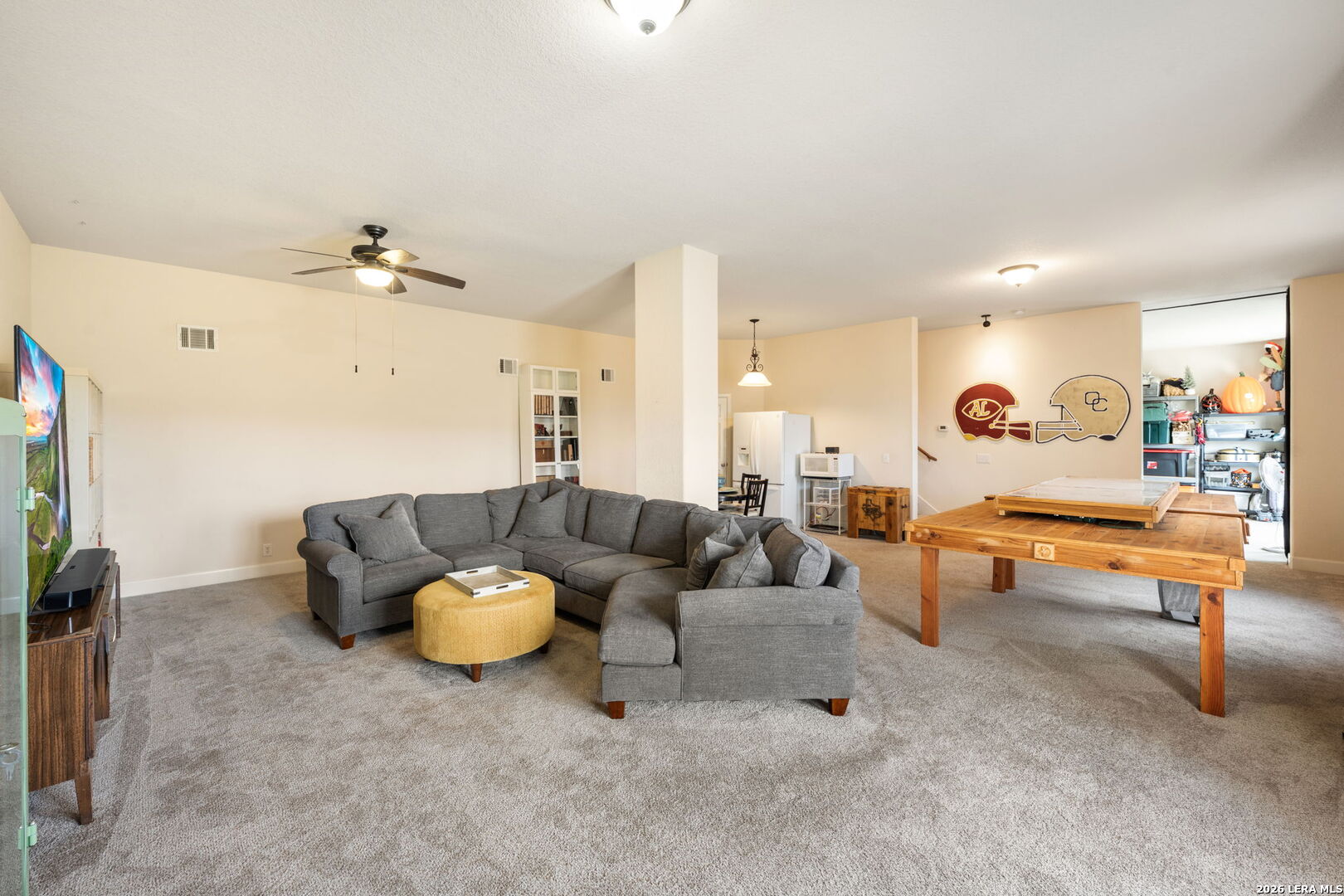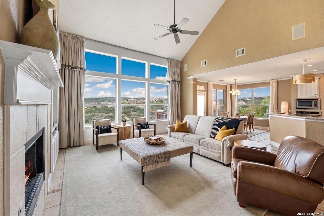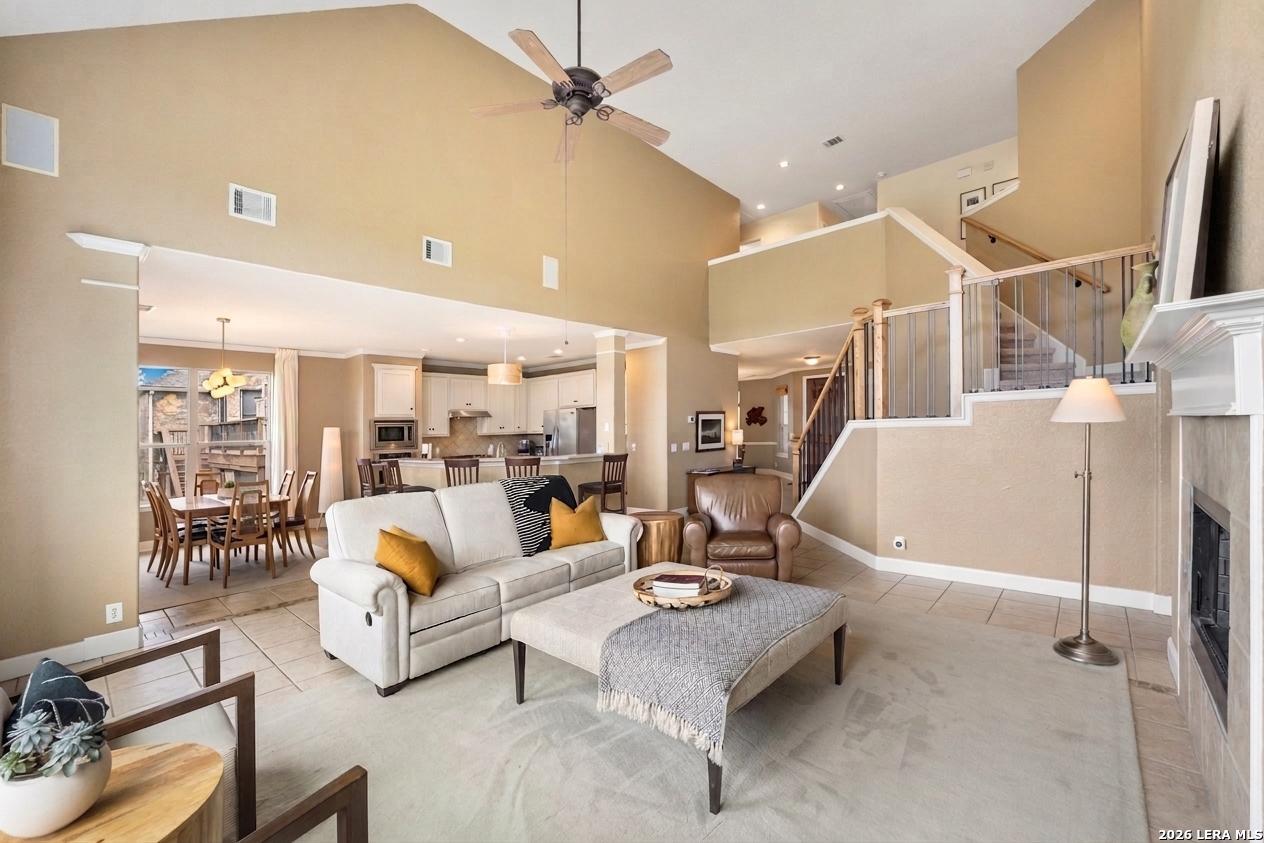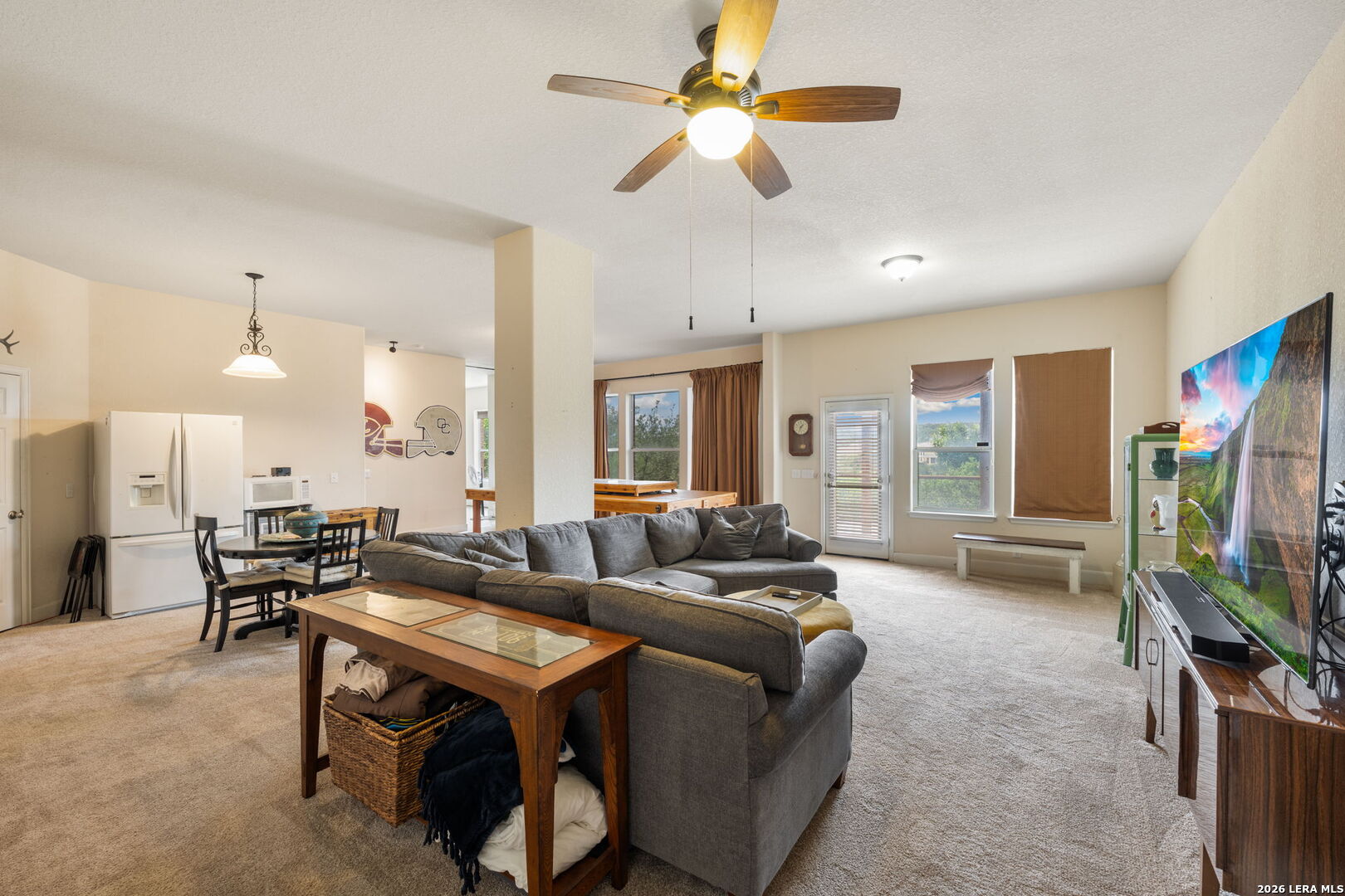 Natural light pours through a wall of windows, drawing you into a space where soaring ceilings and breathtaking bluff views set the tone for the day ahead. The living area centers around a cozy fireplace with custom built-ins that add both character and function, then flows seamlessly into the kitchen and dining spaces, creating an easy, connected layout for everyday living and entertaining. The kitchen offers generous prep space with Silestone countertops, gas cooking, stainless steel appliances, abundant cabinetry, and a bright breakfast nook wrapped in windows. Whether hosting or unwinding, each space feels welcoming, comfortable, and made to be lived in. Tucked on the main level, the primary suite offers a quiet retreat with peaceful surroundings, while a dedicated office creates a place to focus when needed. Downstairs, a Texas-style basement level becomes the go-to spot for game nights, movies, or gathering with friends, with flexible space for hobbies, a gym, or a workshop and easy access to the outdoors. Upstairs, four additional bedrooms provide room to spread out, with two connected by a Jack and Jill bath and the other two served by a nearby hallway bathroom. Thoughtful updates add peace of mind, including a recently replaced upstairs AC unit, UV lights installed on both systems, and the added benefit of a water softener. Other recent updates include a retractable awning, UV screens, gutters, storm doors, carpet, and a reverse osmosis filtration system. Outside, a new deck added in 2023 becomes a favorite place to take in the expansive scenery, all set on an oversized .75-acre lot that offers space, privacy, and room to enjoy it all. Moments from Old Town Helotes and neighborhood amenities, this home delivers space, scenery, and a lifestyle that's hard to match. Please be aware that some photos have been virtually staged.