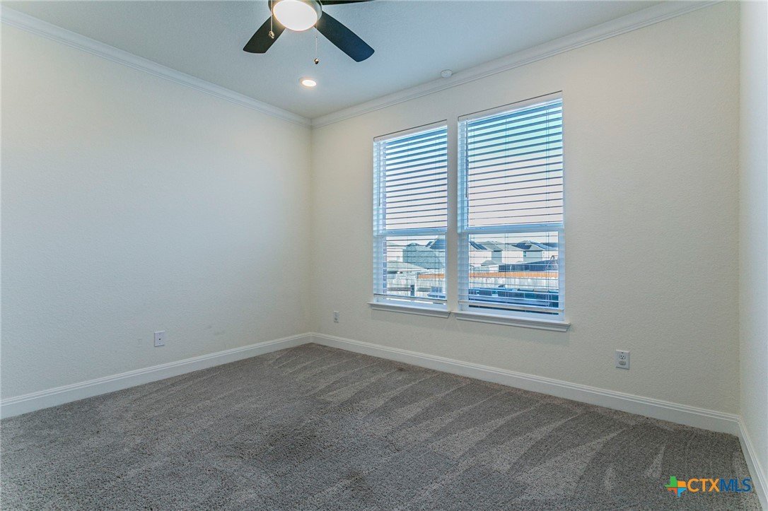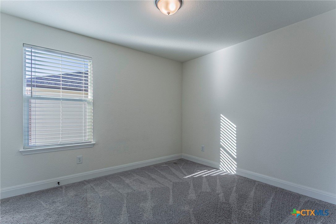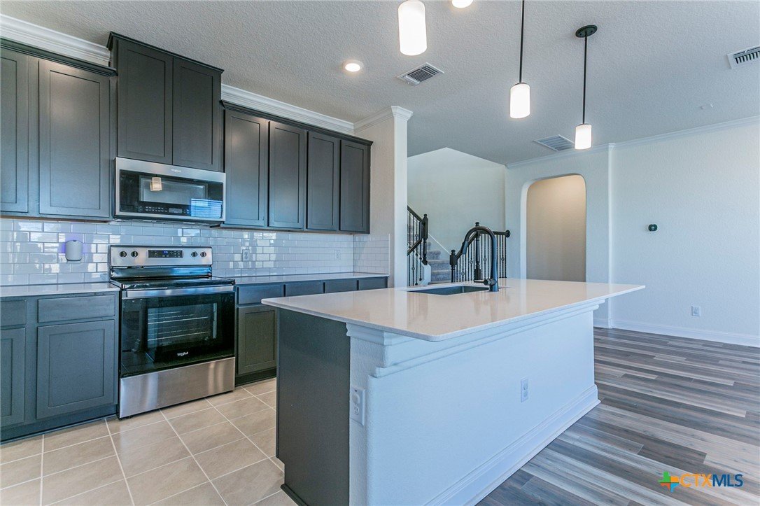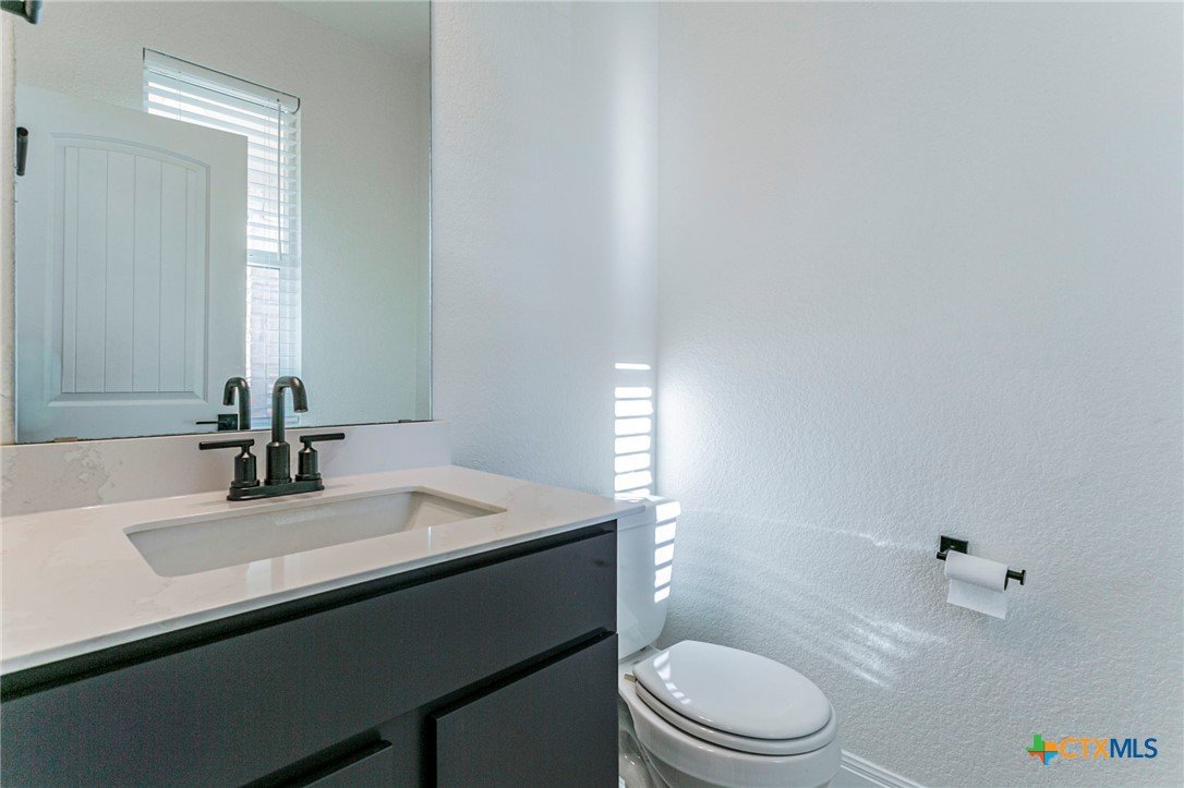 Welcome to this beautifully designed KB Home two-story residence, thoughtfully positioned on a corner lot in the desirable West Canyon Trails community of Belton. Built in 2023, this home offers the perfect blend of modern construction, functional living space, and timeless finishes. Featuring 4 spacious bedrooms, 2 full bathrooms, and a convenient half bath, the layout is ideal for both everyday living and entertaining. The open-concept main level is anchored by a light-filled living area that flows seamlessly into the kitchen and dining space, enhanced by durable ceramic tile flooring and contemporary fixtures throughout. The kitchen is a true focal point, showcasing decorative solid surface countertops, a large center island with breakfast bar seating, stainless steel appliances, abundant cabinetry, and a walk-in pantry—perfect for hosting or casual family meals. The private downstairs primary suite offers a peaceful retreat with a walk-in closet and a well-appointed en-suite bath. Upstairs, you’ll find additional generously sized bedrooms and a versatile second living area, ideal for a game room, media space, or home office. Plush carpeting, recessed lighting, and ceiling fans add comfort and style throughout. Additional highlights include a 2-car garage, covered patio, privacy fencing, energy-efficient features such as a radiant barrier attic, smart thermostat, and central heating and air. Located within Belton ISD and offering quick access to IH-35 and Loop 121, this home is commuter-friendly to Belton, Temple, and Killeen, with shopping, dining, recreation, and Lake Belton and Stillhouse Hollow Lake just minutes away. This nearly new home delivers space, quality, and location—ready for its next chapter.