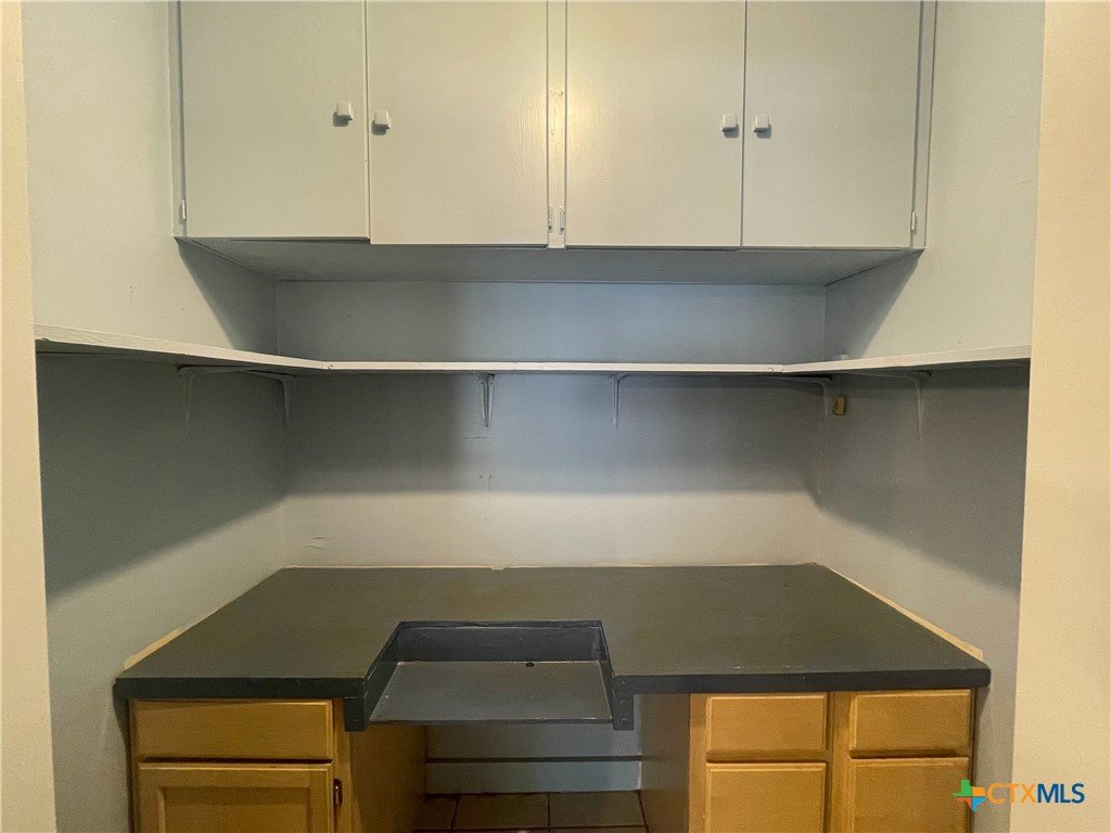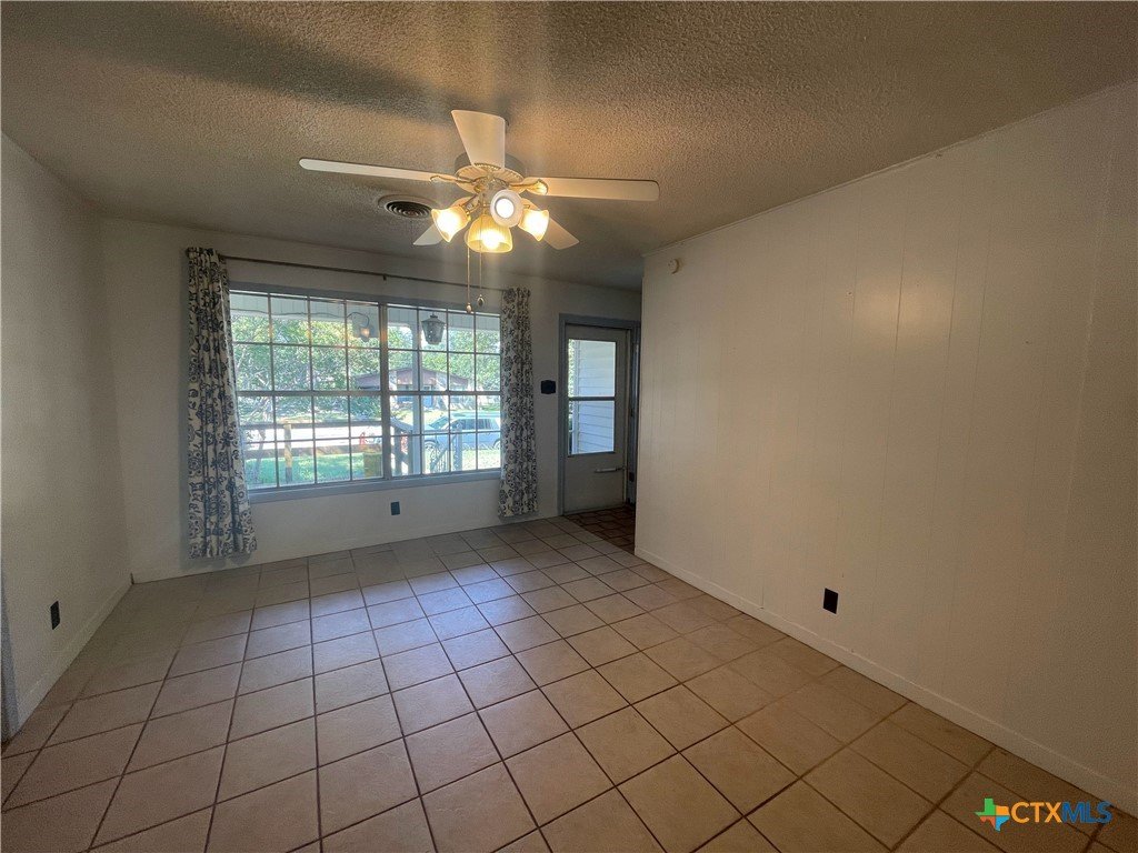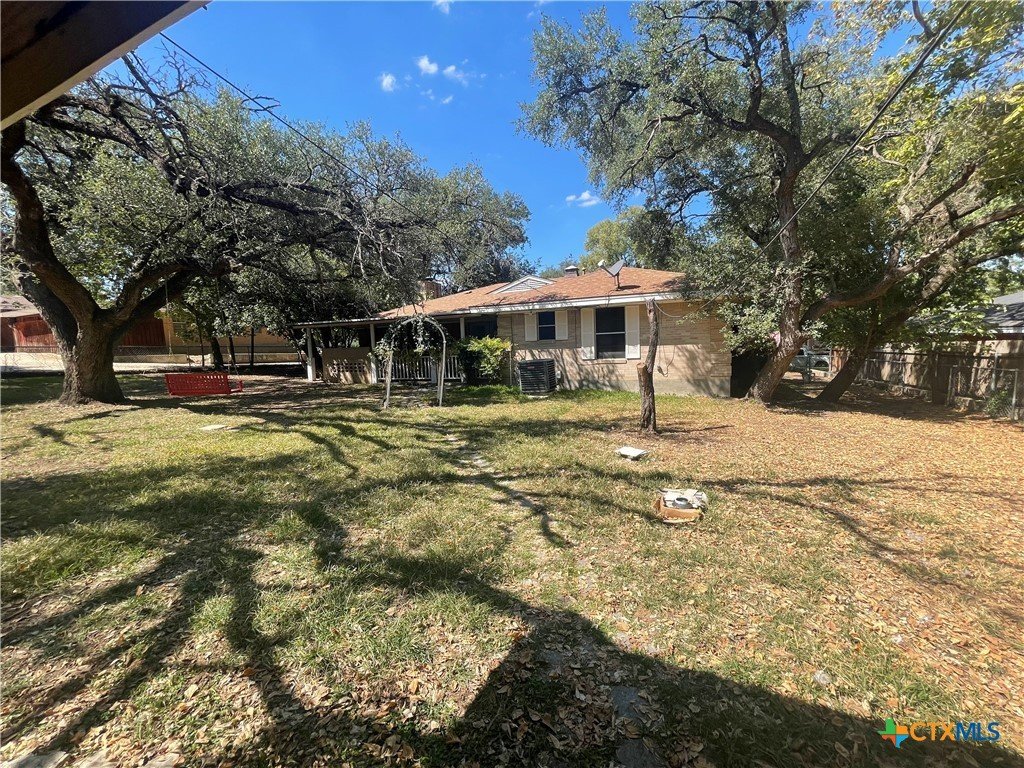 Discover this spacious 1,750 ft2, 3-bedroom, 2-bath home on the desirable west side of Lampasas, thoughtfully designed with ADA amenities for enhanced accessibility. The entire home features easy-to-maintain tile flooring, ensuring smooth movement throughout. The layout is welcoming, centered around a large den area boasting big windows that provide abundant natural light and a cozy wood-burning fireplace. The home includes both a formal dining area and a kitchen eating space with a handy breakfast bar. French doors lead out to a covered and enclosed patio, creating a secure and ideal outdoor extension, perfect for dog lovers. The property offers a huge, fenced backyard and includes a dedicated storage building—great for keeping belongings dry or setting up a versatile mini-workshop for hobbies like woodworking.