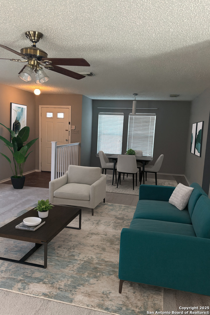 2.5-bath home located in the sought-after Woller Creek Subdivision! Enjoy a welcoming layout with separate living and dining areas-perfect for entertaining. Brand new carpet throughout. Bathrooms recently updated. The kitchen comes equipped with a stainless steel refrigerator, and both washer and dryer are included for your convenience. Unwind in the generously sized master suite with a private ensuite bathroom. Ideally situated near schools, including UTSA, this home offers both comfort and convenience. Don't miss out-schedule a viewing today!