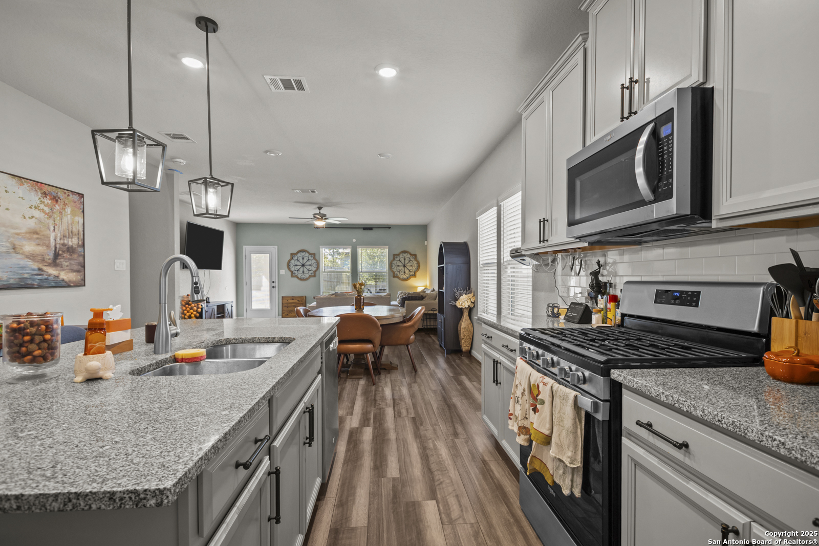 Welcome to 13044 Louberg in the heart of San Antonio's desirable 78253 area. This beautiful 4-bedroom, 2.5-bath home combines modern comfort with a warm, inviting design. The spacious open floor plan features a large living area filled with natural light, flowing seamlessly into a stunning island kitchen with granite countertops, stainless steel appliances, and ample cabinet space. The private main-floor primary suite includes a generous walk-in closet and a relaxing ensuite bath. Upstairs, you'll find additional bedrooms that provide plenty of space for family, guests, or a home office. Step outside to enjoy a covered patio that overlooks the peaceful backyard, perfect for outdoor gatherings or quiet evenings. Including Solar Panels. The community offers excellent amenities, including a sparkling pool, clubhouse, and playground. Set among scenic Hill Country views, this location provides easy access to shopping, dining, golf, and the entertainment of SeaWorld. Experience comfort, convenience, and a true sense of community in one of San Antonio's most welcoming neighborhoods.