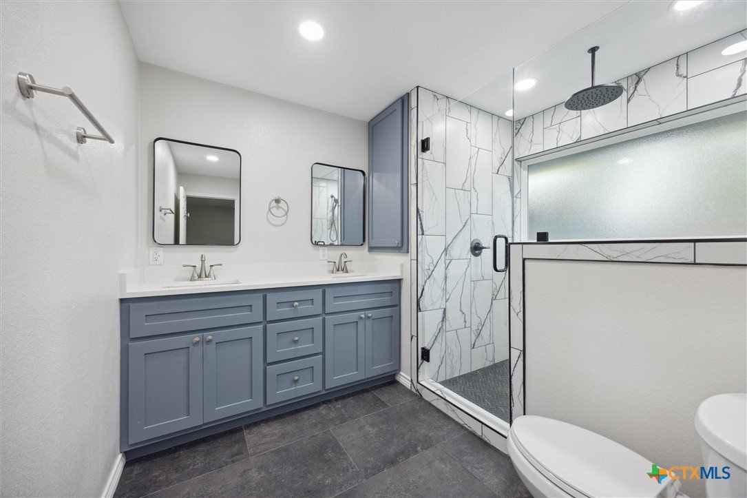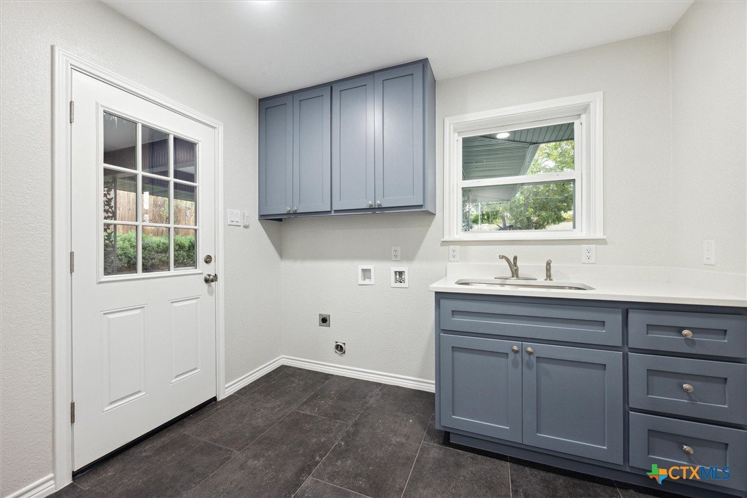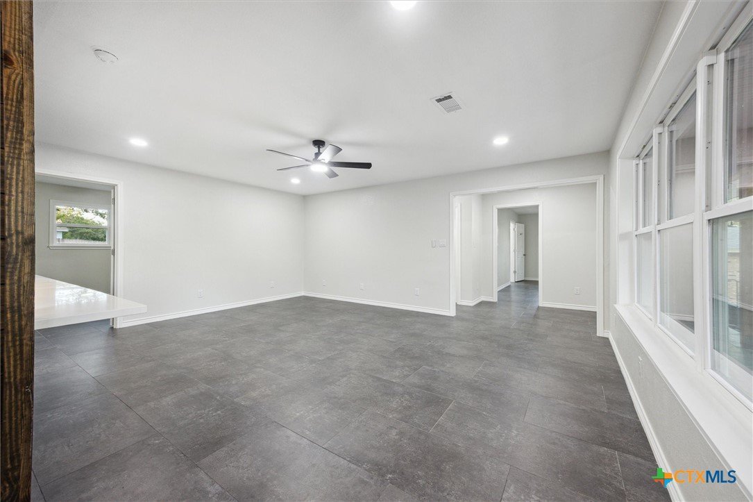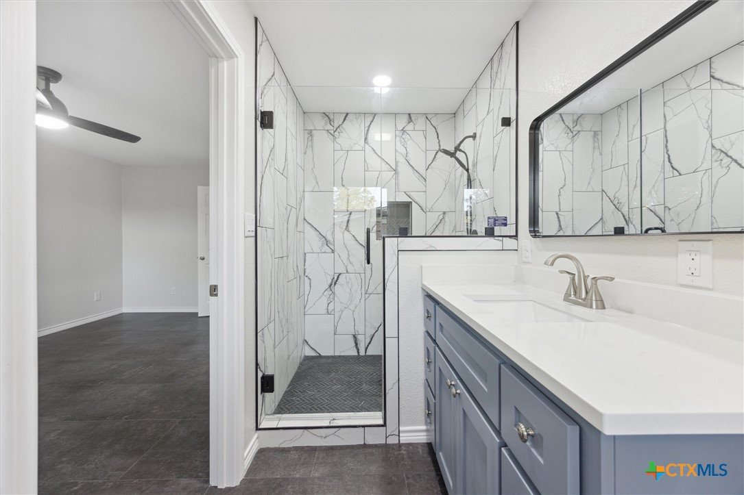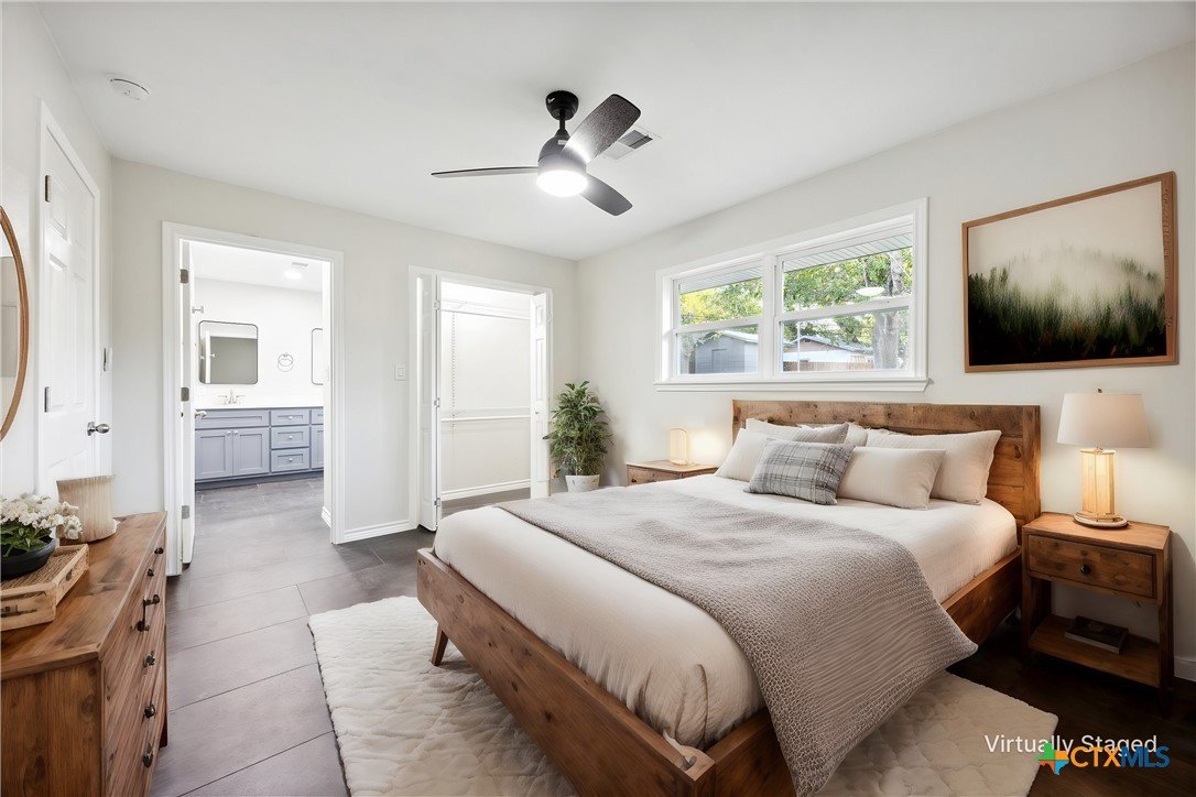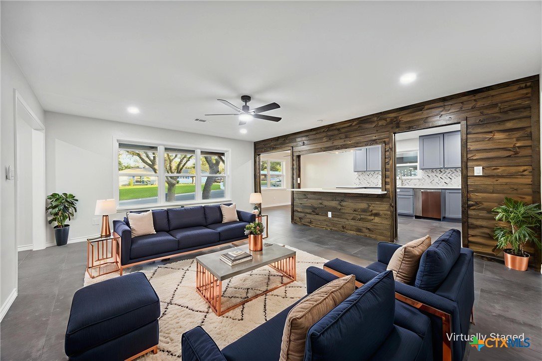 This modern Lampasas retreat has been completely reimagined—taken down to the studs and rebuilt with modern finishes and long-lasting quality. A durable metal roof, all-new plumbing (even under the slab), and fresh systems throughout give peace of mind for years to come. Inside, the open floor plan flows across beautiful tile floors with a welcoming living room at the heart of the home. The chef’s kitchen features sleek stone countertops, a spacious island, and plenty of cabinetry—ideal for everyday cooking or entertaining. With 4 bedrooms and 3 bathrooms, the layout includes two full primary suites with private en-suites, perfect for guests, multi-generational living, or flexible use. Out back, a generous yard offers space for barbecues, gatherings, or simply unwinding under Texas skies. Located just minutes from downtown Lampasas, you’ll enjoy quick access to local shops, dining, and community events while still tucked into a quiet neighborhood setting. Between quality craftsmanship and everyday comfort - this home is ready for its next chapter!