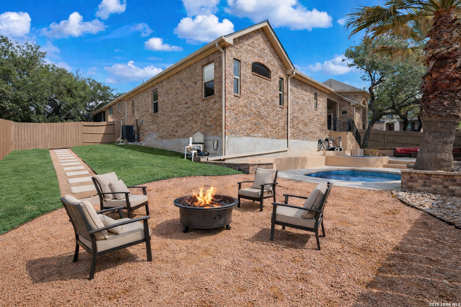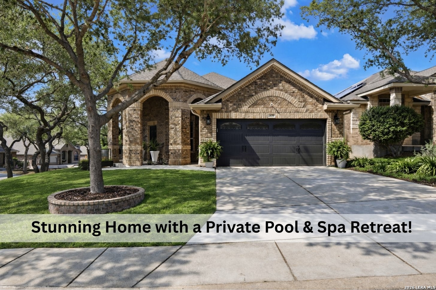 Gorgeous 3-bedroom, 2.5 bath home featuring an exceptional floor plan, perfectly situated on a desirable corner lot. The true showstopper is the backyard retreat-complete with a sparkling in-ground pool and spa, both newly resurfaced in April 2026 and backed by a 10-year warranty, offering peace of mind and long-term enjoyment. This home has been meticulously maintained with major updates, including a roof replaced in 2024, new gutters and a new HVAC system also replaced in 2024. Additional improvements include a new fence and water softener added in 2025. The yard has been thoughtfully xeriscaped for low-maintenance living, while still offering the flexibility to easily add grass if desired. The covered patio features an electric shade, creating a private and comfortable outdoor living space perfect for relaxing or entertaining. Inside, you'll find a spacious open-concept layout designed for both comfort and functionality. The primary suite offers a luxurious oversized walk-through shower and a well-appointed walk-in closet with custom built-ins. Secondary bedrooms are generously sized and connected by a convenient Jack-and-Jill bathroom. Ideally located just minutes from Joint Base San Antonio-Lackland, Boeing Tech Port, and SeaWorld San Antonio, as well as some of San Antonio's newest shopping and dining destinations. Everyday convenience is unmatched with two H-E-B locations and Costco all within approximately 3 miles. Situated in a neighborhood known for its quiet, serene atmosphere and strong sense of community, residents enjoy holiday gatherings and a welcoming environment for families of all ages. Zoned to William Brennan High School. No city taxes! This home truly offers the perfect blend of comfort, updates, location, and lifestyle-don't miss it!