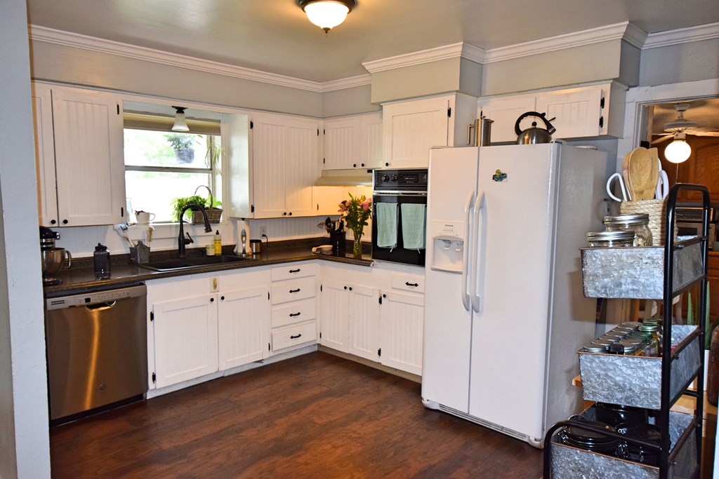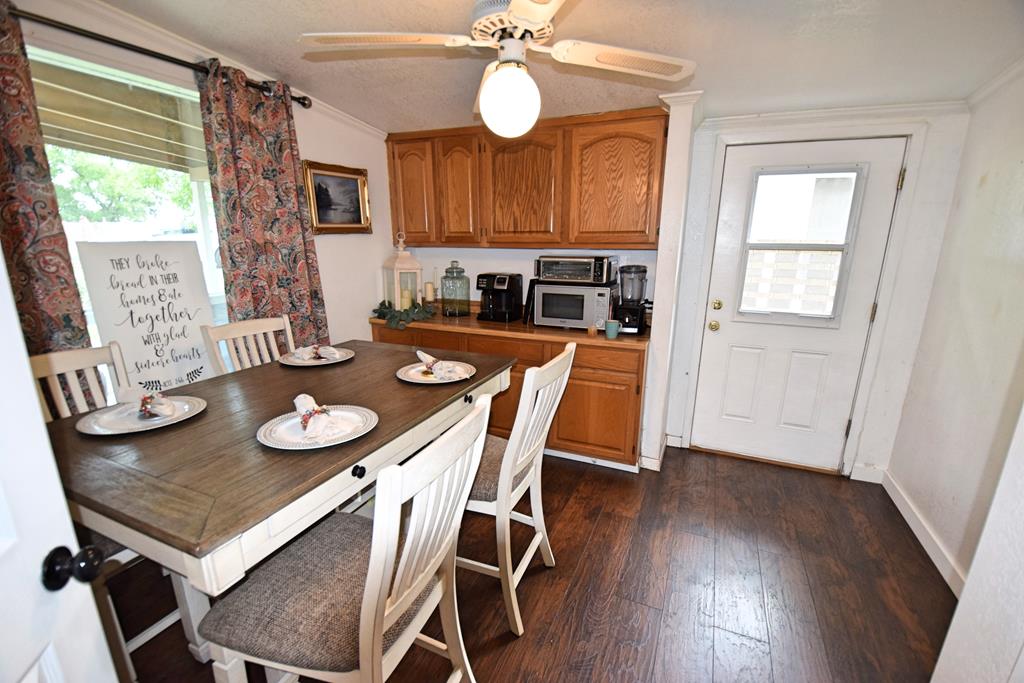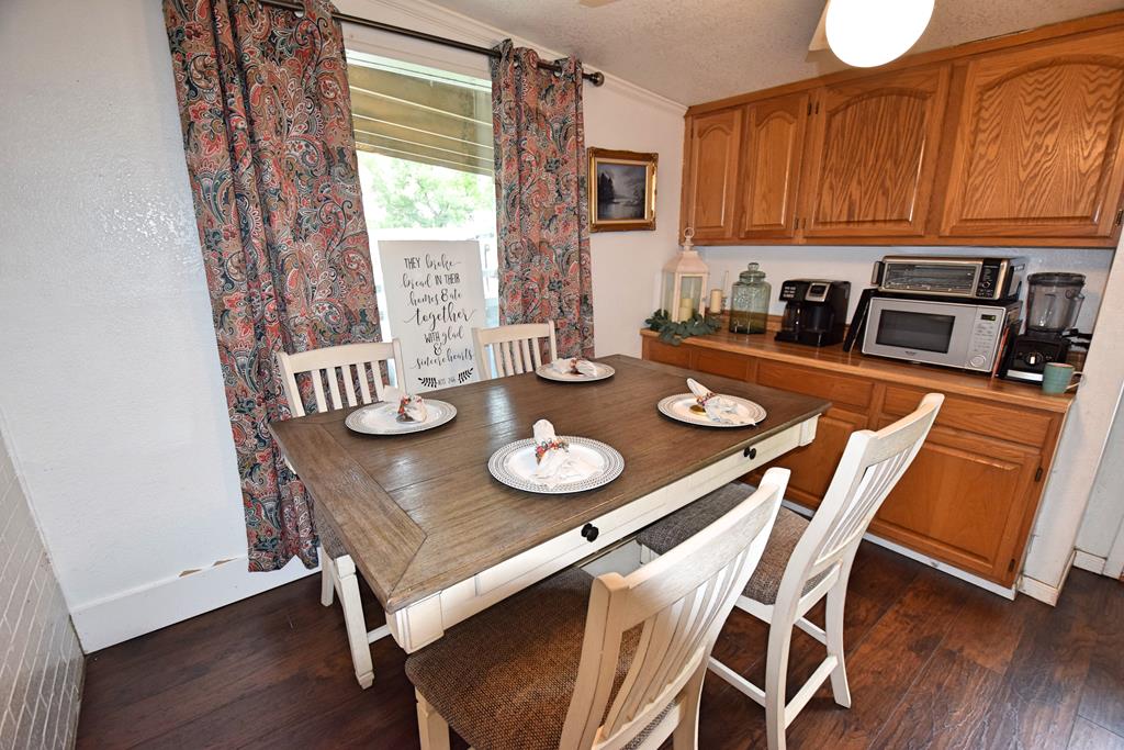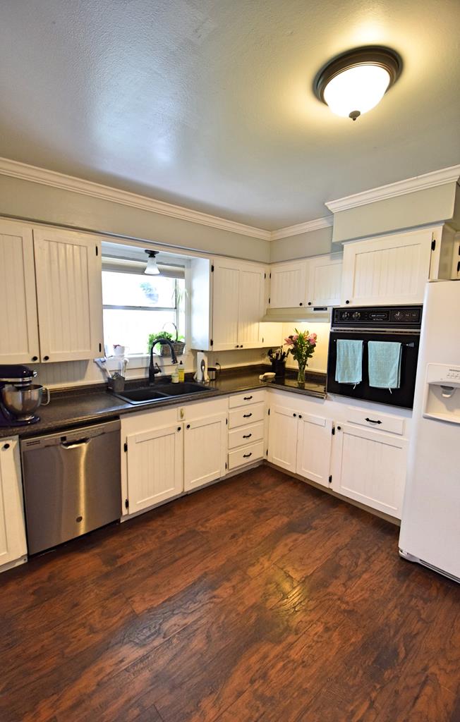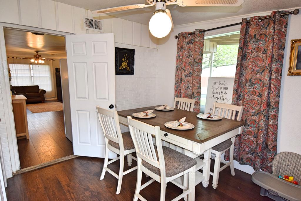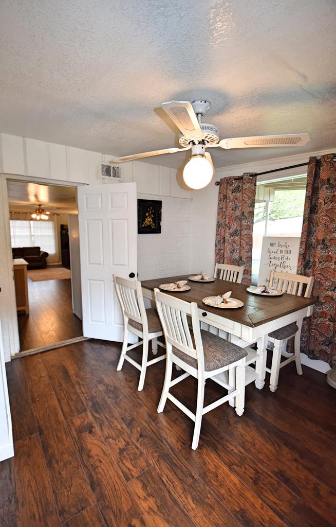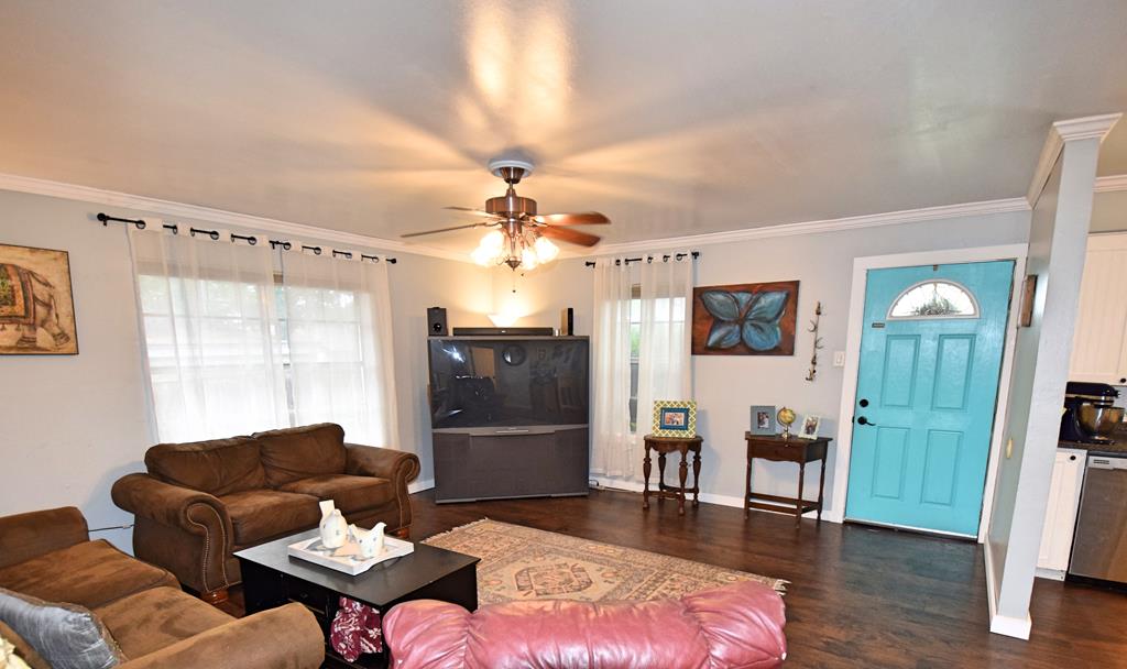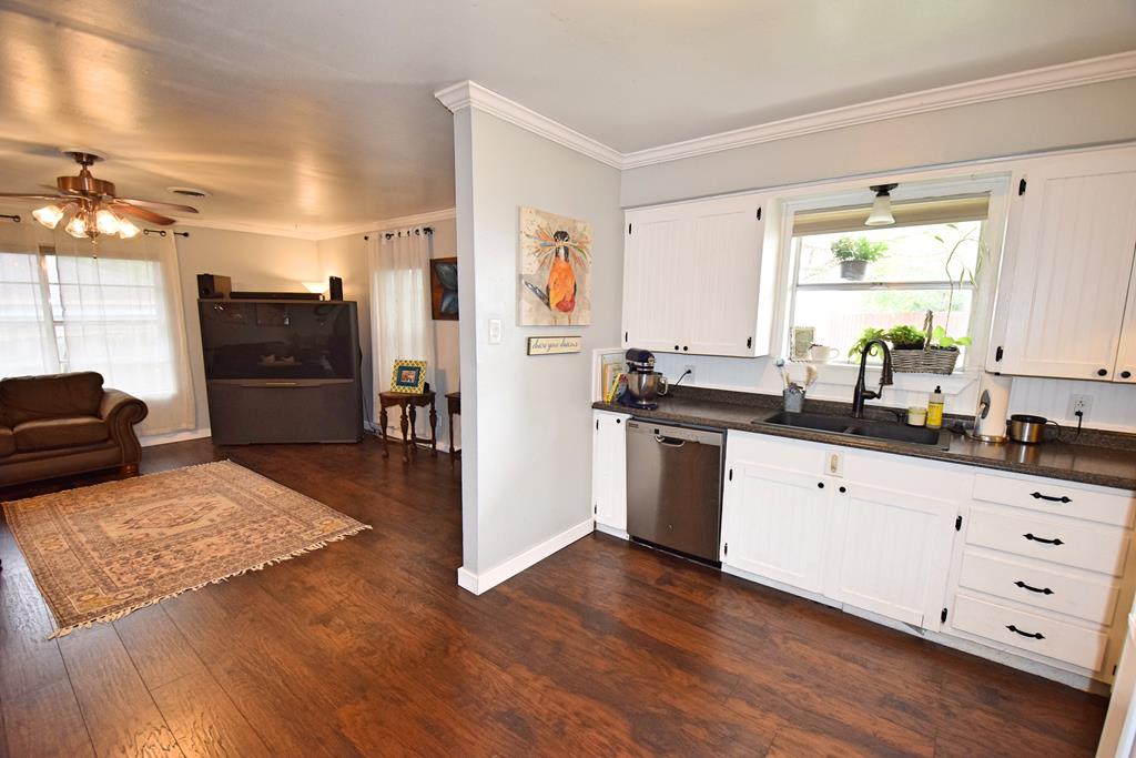 Beautifully updated 3 bed, 1.5 bath home in Antler Heights. This home has 1,572 square feet of living space with an open floorpan from kitchen to living. A separate formal dining room off the kitchen features a large picture window and buffet built-in. Updates include; brand new ac, new electric furnace, flooring, paint, bathroom vanities & toilet, trim, baseboards, crown molding, window coverings, interior doors & dishwasher. (Allowance for, or completed by closing - Drop ceiling in master bedroom to be sheet-rocked) Large master bedroom leads directly to covered back porch and privacy-fenced back yard with workshop/storage building. This charming home is on a nicely treed city lot just over a mile from Downtown Kerrville.