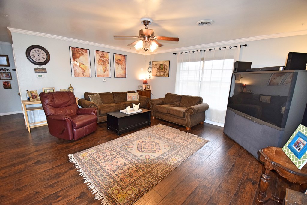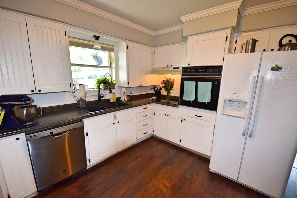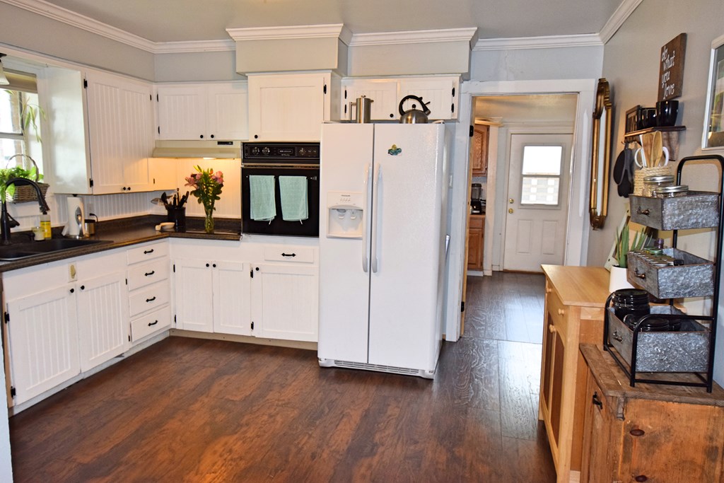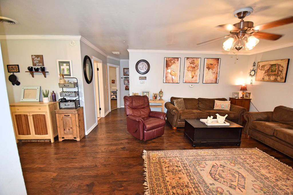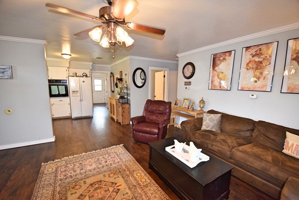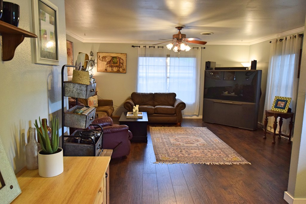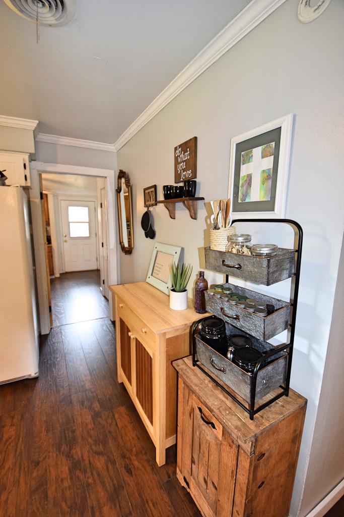 Beautifully updated 3 bed, 1.5 bath home in Antler Heights. This home has 1,572 square feet of living space with an open floorpan from kitchen to living. A separate formal dining room off the kitchen features a large picture window and buffet built-in. Updates include; brand new ac, new electric furnace, flooring, paint, bathroom vanities & toilet, trim, baseboards, crown molding, window coverings, interior doors & dishwasher. (Allowance for, or completed by closing - Drop ceiling in master bedroom to be sheet-rocked) Large master bedroom leads directly to covered back porch and privacy-fenced back yard with workshop/storage building. This charming home is on a nicely treed city lot just over a mile from Downtown Kerrville.