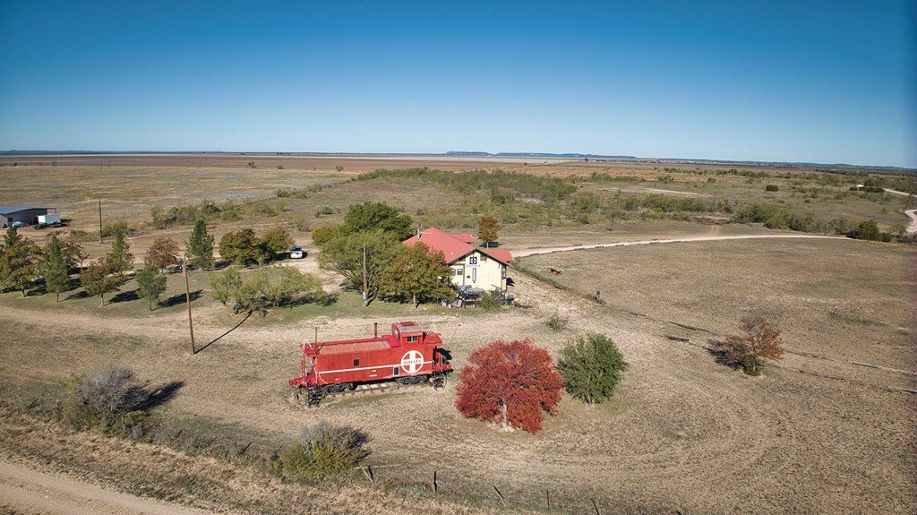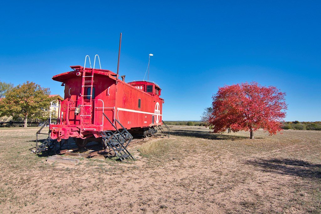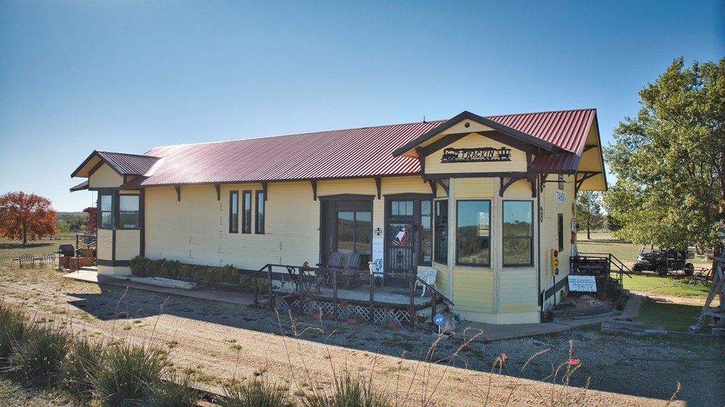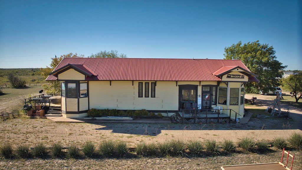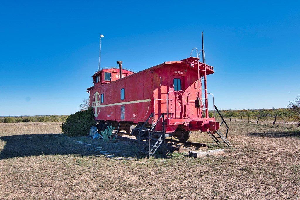 This property boasts 150 sprawling acres of pure Texan charm. Nestled within this expansive landscape, you'll discover a unique 1548 sq ft house with a rich history as a former Santa Fe railroad depot, thoughtfully relocated to this very site. Adjacent to the house, a charming red caboose stands as a timeless reminder of the property,s railroad heritage, complete with original features. A spacious 4500 sq ft insulated metal shop awaits your creative touch, providing ample space for your hobbies and endeavors. Additionally, theres a cozy 2 bed/1 bath small home.