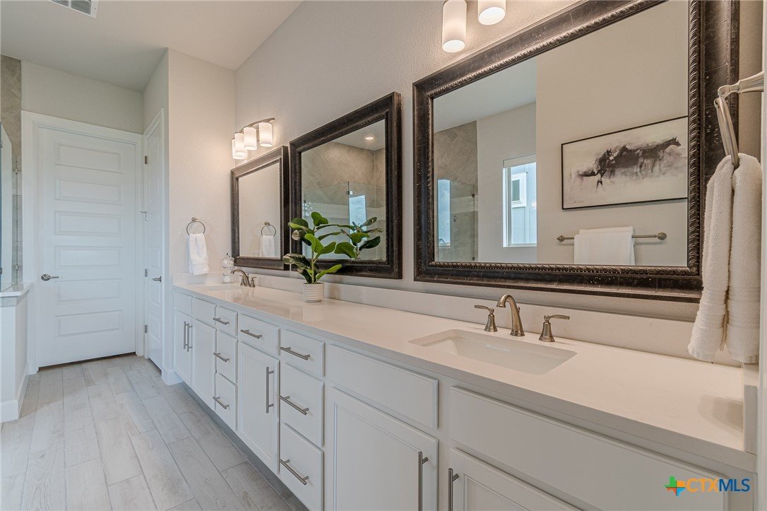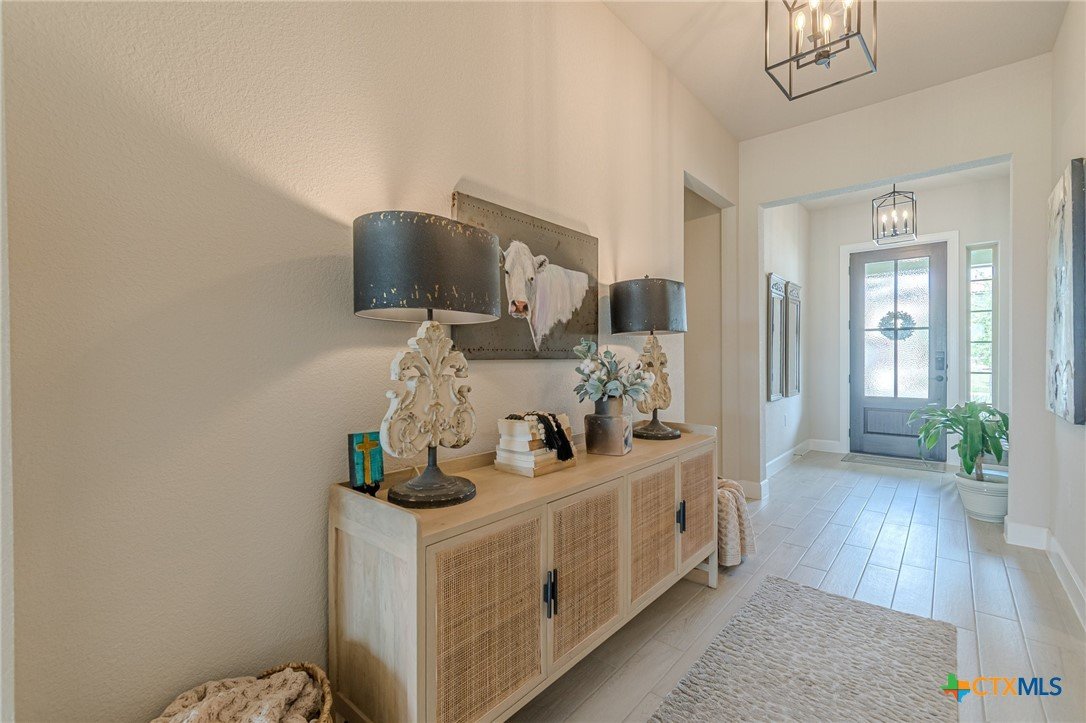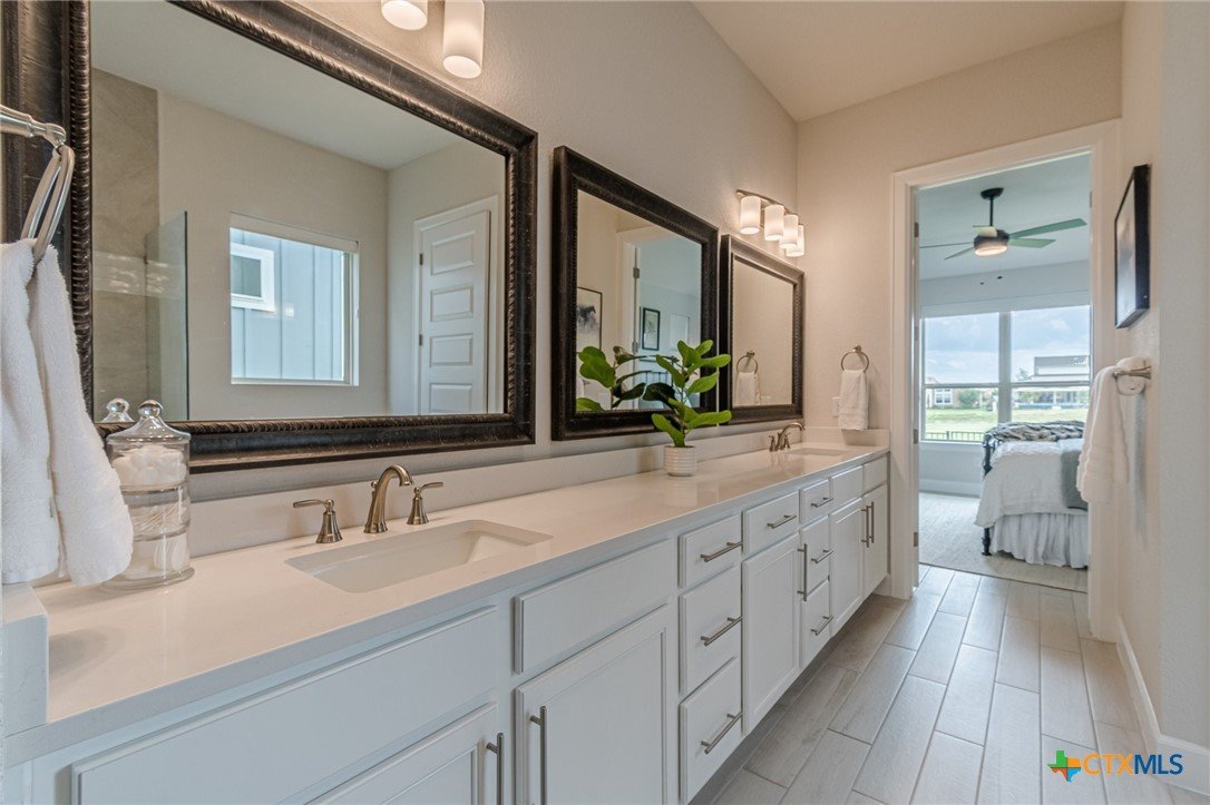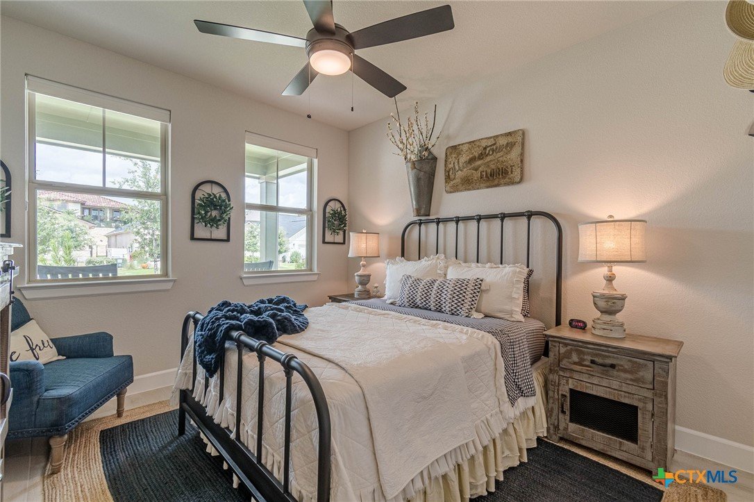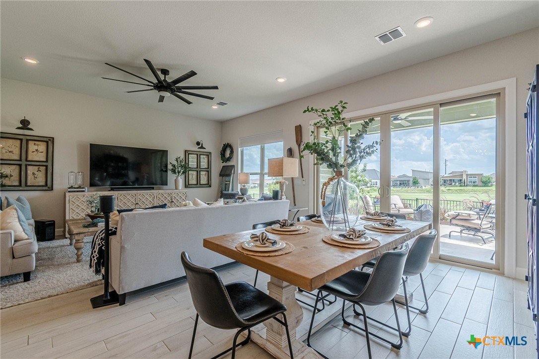 Welcome to this stunning Tulane floor plan, nestled in the prestigious 55+ Kissing Tree community! This home truly stands out—better than new—and checks every box, including a east-facing backyard overlooking the golf course, perfect for enjoying peaceful, shaded evenings. Step inside to a spacious, welcoming entryway that sets the tone for this beautifully designed home. Throughout, you'll find the perfect tone of light flooring that complements any style and adds warmth and continuity to the space. At the heart of the home lies a chef’s dream kitchen, featuring a striking two-tone blue and white cabinet design, quartz countertops, a blue subway tile backsplash, and a large island with farmhouse sink. Top-tier stainless steel appliances, double ovens, and custom pendant lighting enhance both form and function. Don't miss the custom coffee bar with butcher block top and glass-front cabinets—added post-build for that extra designer touch. One of the home's standout features is the rare, customized storage room—perfect for kitchen extras, hobbies, crafts, or easily accessible holiday decor. The open-concept kitchen, dining, and living area makes entertaining a breeze, with ample space to gather and relax. This thoughtfully designed floor plan includes two bedrooms, two full baths, and a versatile study/den. The primary suite is generously sized and offers serene golf course views. The luxurious en-suite bath includes custom-framed mirrors, elegant ceramic tile flooring, and a convenient get-ready bench. Additional highlights include: Extended garage with an extra four feet—roomy enough for two cars plus a golf cart, overhead garage storage for even more convenience, and custom built extended back patio and landscaping to maximize your outdoor living. Don’t miss your chance to own this exceptional home in one of the area's most sought-after communities. Schedule your tour today—before it's gone!