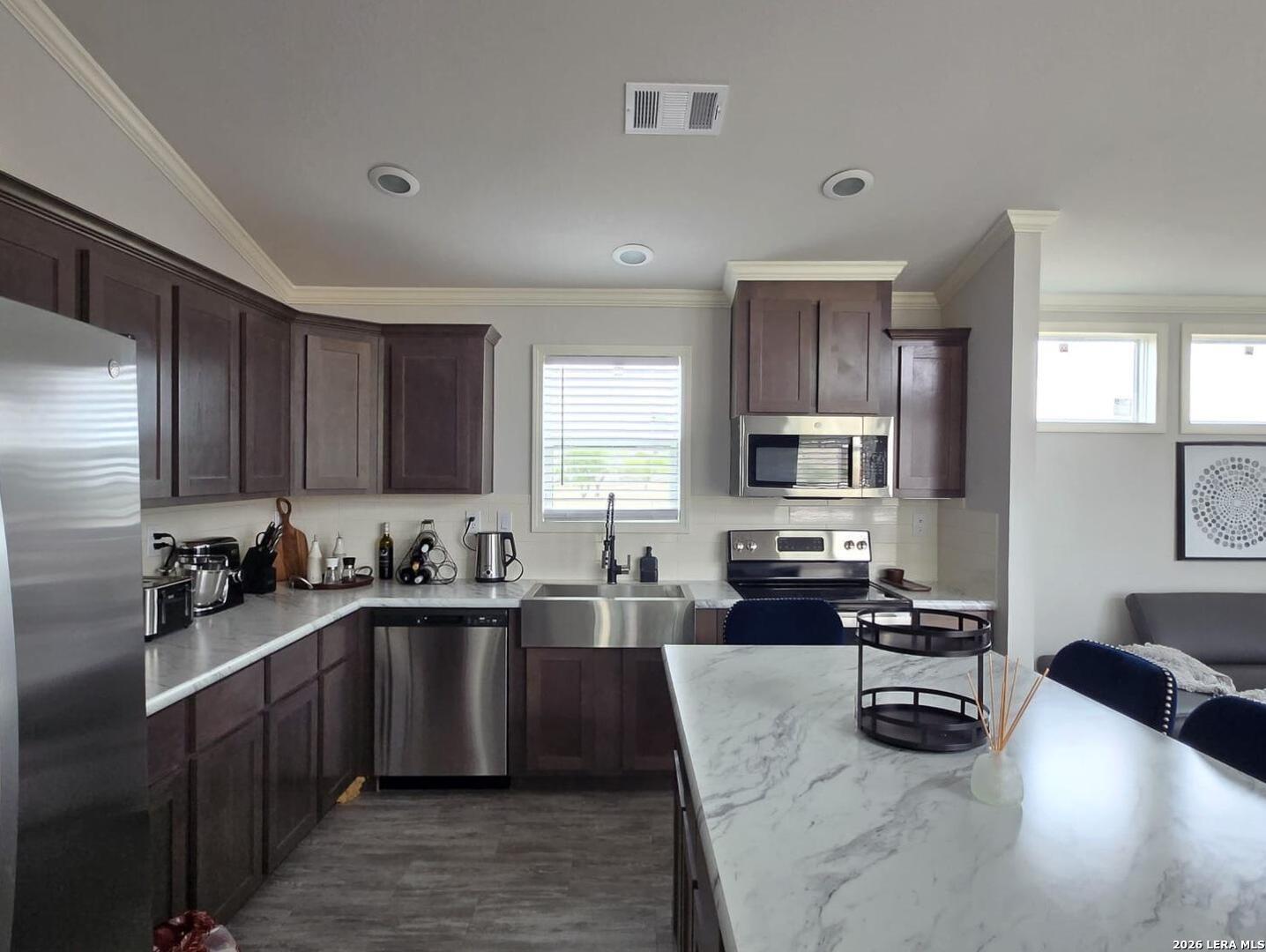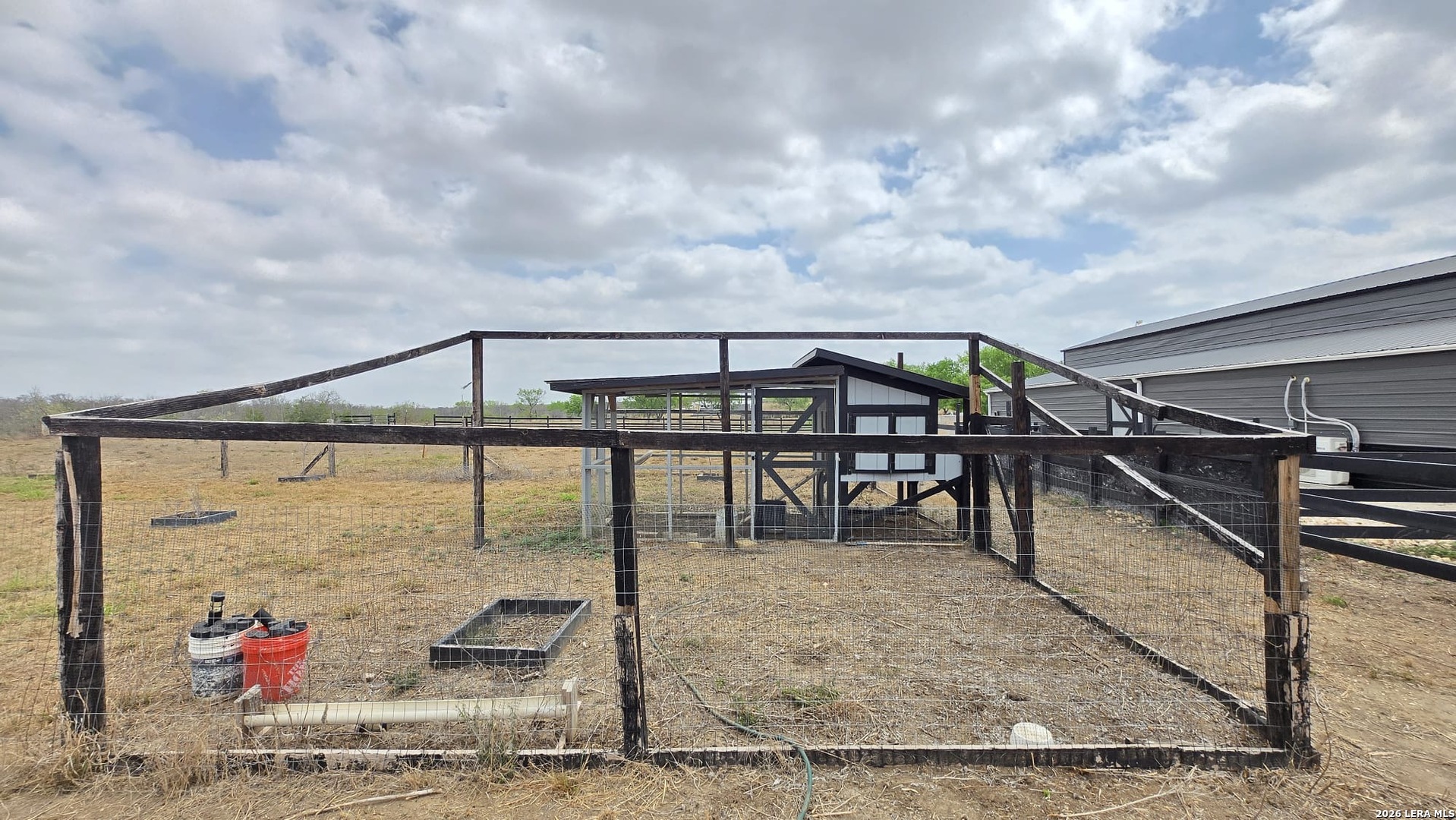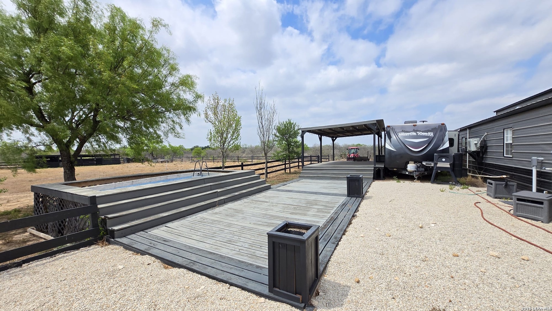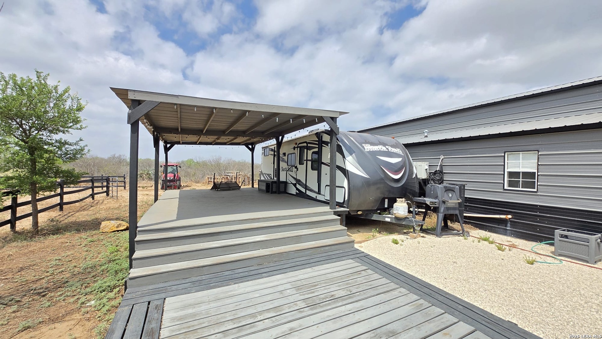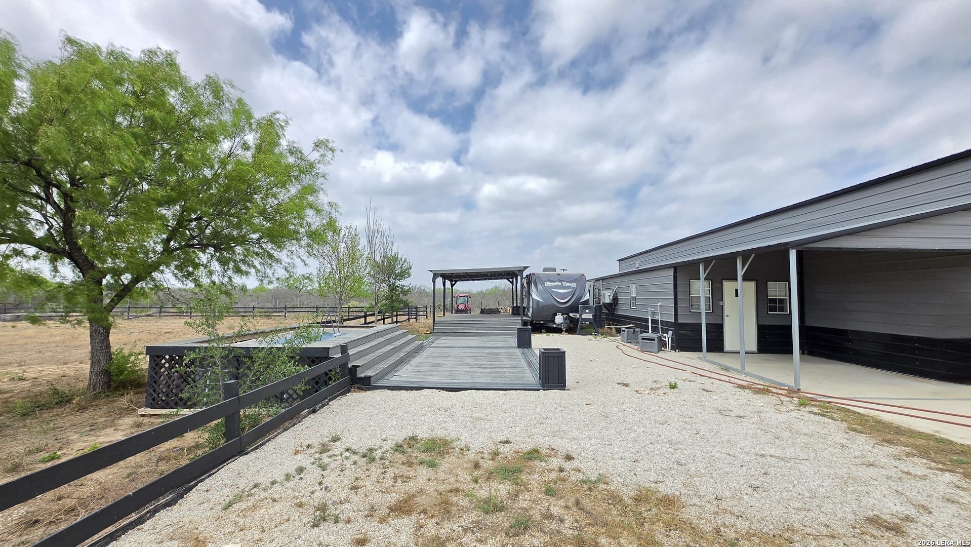 The Moore Homestead Ranchette is a one-of-a-kind Frio County- a completely turnkey 10-acre property with three living spaces, boutique-quality finishes, and infrastructure built to last. The main residence (2 bed / 2 bath, built 2023) features cathedral ceilings with clerestory windows, an open-concept kitchen with espresso cabinetry, marble island, farmhouse sink, and full stainless steel appliances. The primary bedroom includes a tray ceiling, double vessel sinks with matte black hardware, walk-in shower, and walk-in closet. Crown molding throughout. Finished to a standard indistinguishable from new construction- located towards the front of the property. The fully independent guest house (2 bed / 1 bath) has its own electrical connection and septic system located towards the back of the property, It features a complete kitchen with dramatic granite island seating 6, full stainless steel appliances, dishwasher, private bath with walk-in shower and vessel sink, and a full laundry room with washer and dryer included. Move-in ready. A travel trailer RV is included with the property with one private bed plus two bunk beds - set on a covered wood pergola deck with electrical hookup. A third functional living space from day one. The front of the property sits flat and cleared on FM 2779 with electrical, septic, and driveway access already prepped - ready for a large custom home whenever you choose to build. Infrastructure highlights: Private well with dual 5,000-gallon storage tanks - 10,000 gallons of water reserve 1,000-ft concrete driveway lined with 250 individually drip-irrigated trees Stone masonry gated entrance with iron gate; front perimeter lined with cenizo shrubs backed by a stunning row of mature live oaks 4 independent septic systems - one per home site 3 separate electrical connections. Spray-foam insulated workshop with barrel vault ceiling, climate control, concrete floor, 120V and 240V wiring for heavy machinery- 40x12 animal facility divided into 3 sections, each with electricity and water. Fenced vegetable garden with raised concrete block beds and individual drip irrigation. Above ground pool perfect for Texas summers. Covered RV pergola with wood deck and electrical hookup Location: 2 min to I-35 2 min to gas station, convenience store, and local restaurant, 14 min to Walmart, HEB, Tractor Supply, and Ace Hardware 42 min to Downtown San Antonio. This property is not a project. It is a finished product. Everything is already built - you just move in. Peaceful views from every angel!! Don't miss out on this great opportunity.
