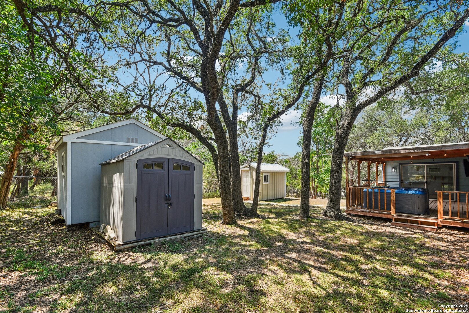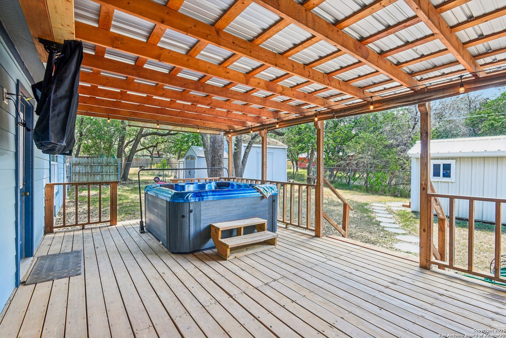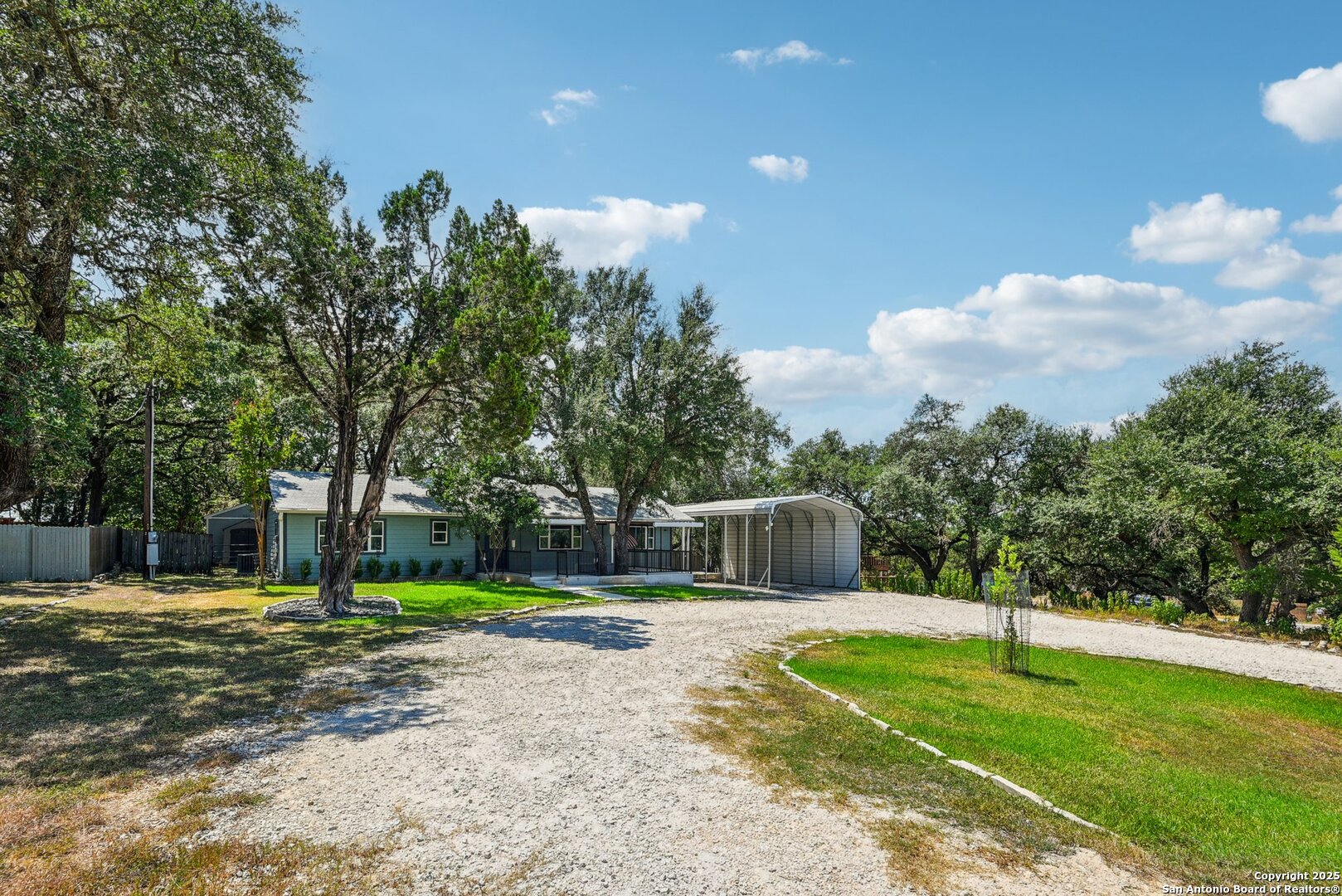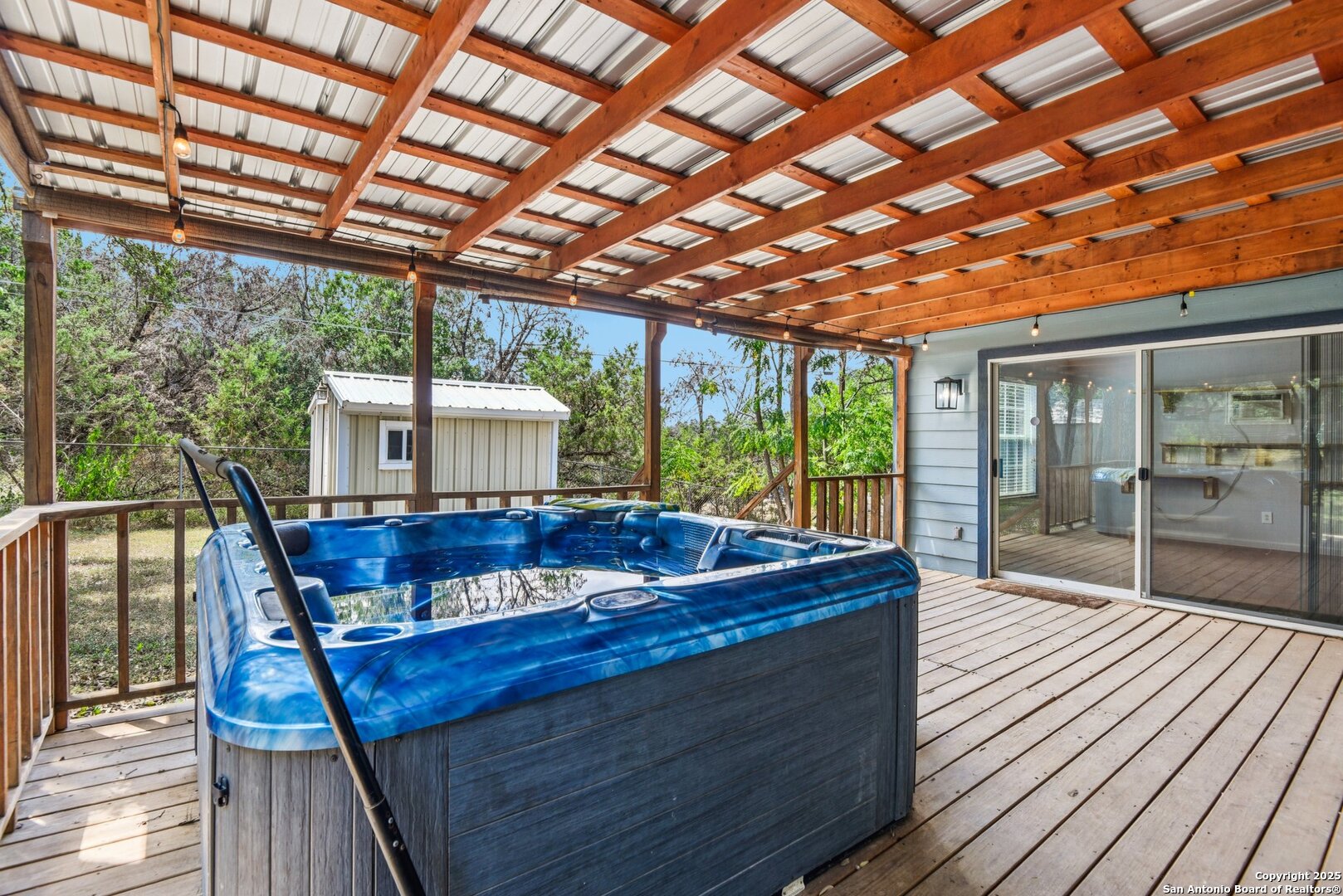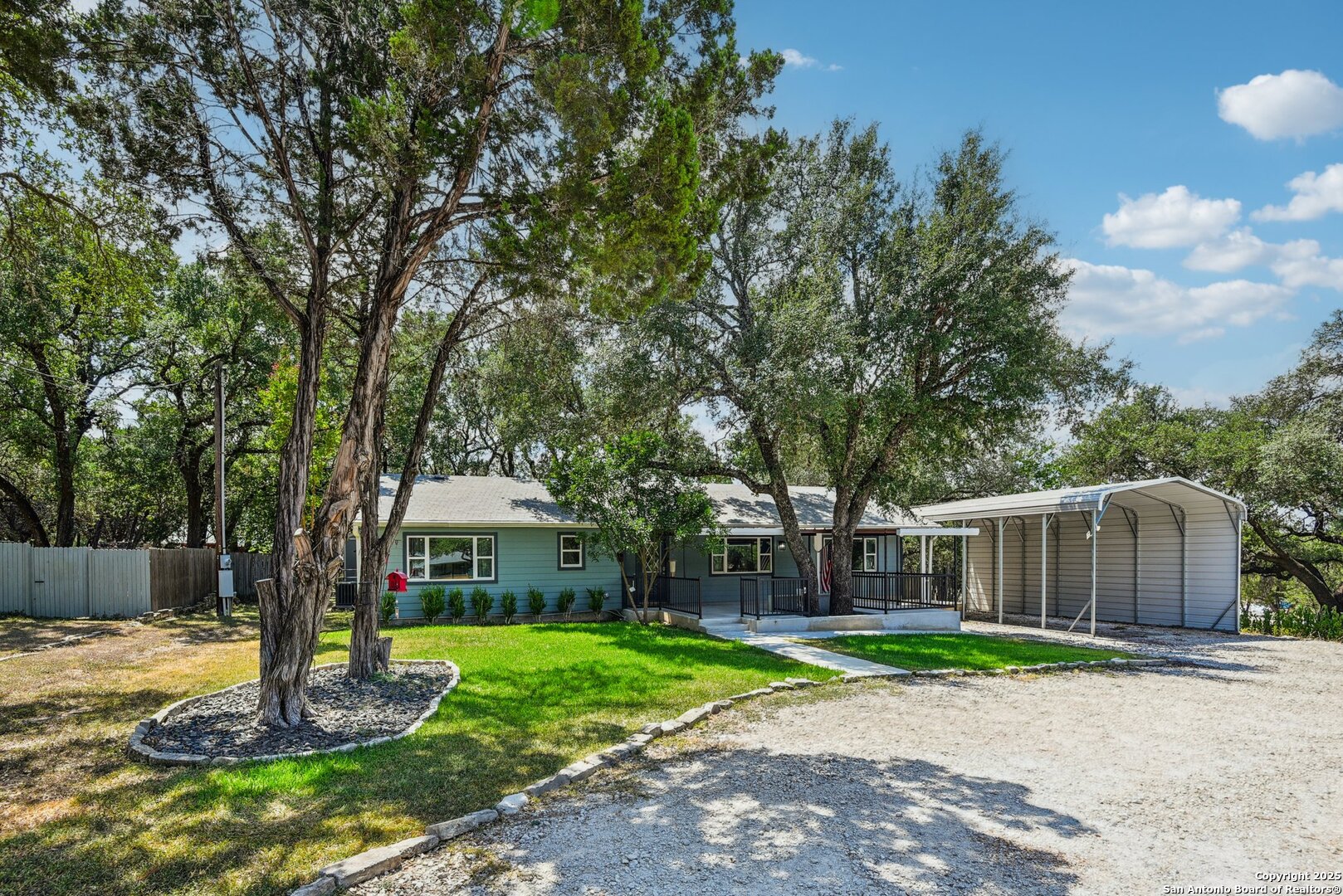 Live the Canyon Lake Lifestyle! Step inside this welcoming home where an open concept design and vaulted living room flows into a versatile flex space. NO carpet. Tile floors throughout. The fenced backyard is designed for relaxation with a covered patio, hot tub, and multiple outbuildings. One thoughtfully converted into a charming hideaway. This property blends comfort, functionality, and a touch of Hill Country charm. This residence is ideal for single family living or cash flowing short term rental. Recent renovations bring peace of mind, including Hardie siding, new windows, and a fresh coat of paint. Buyers will also appreciate the added extras: almost new refrigerator, pool table, and hot tub-all included! Arrive through the circular drive with ample room for parking, and take advantage of the oversized, extra-tall carport-perfect for your RV or boat. Neighborhood amenities complete the package, with a park and swimming pool just minutes away. Move-in ready and waiting for you!