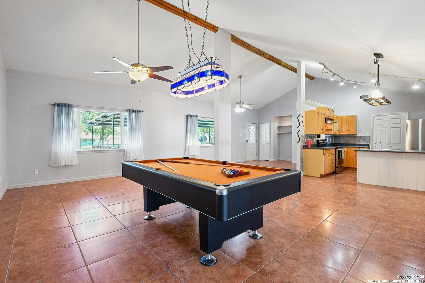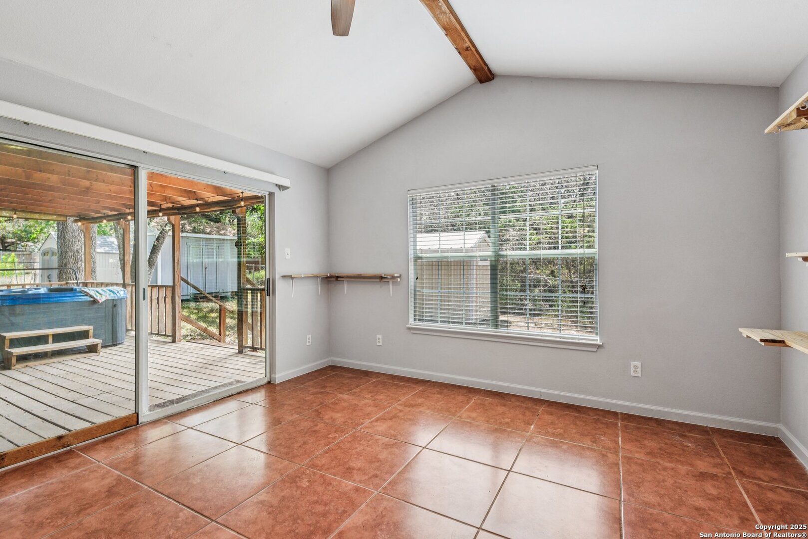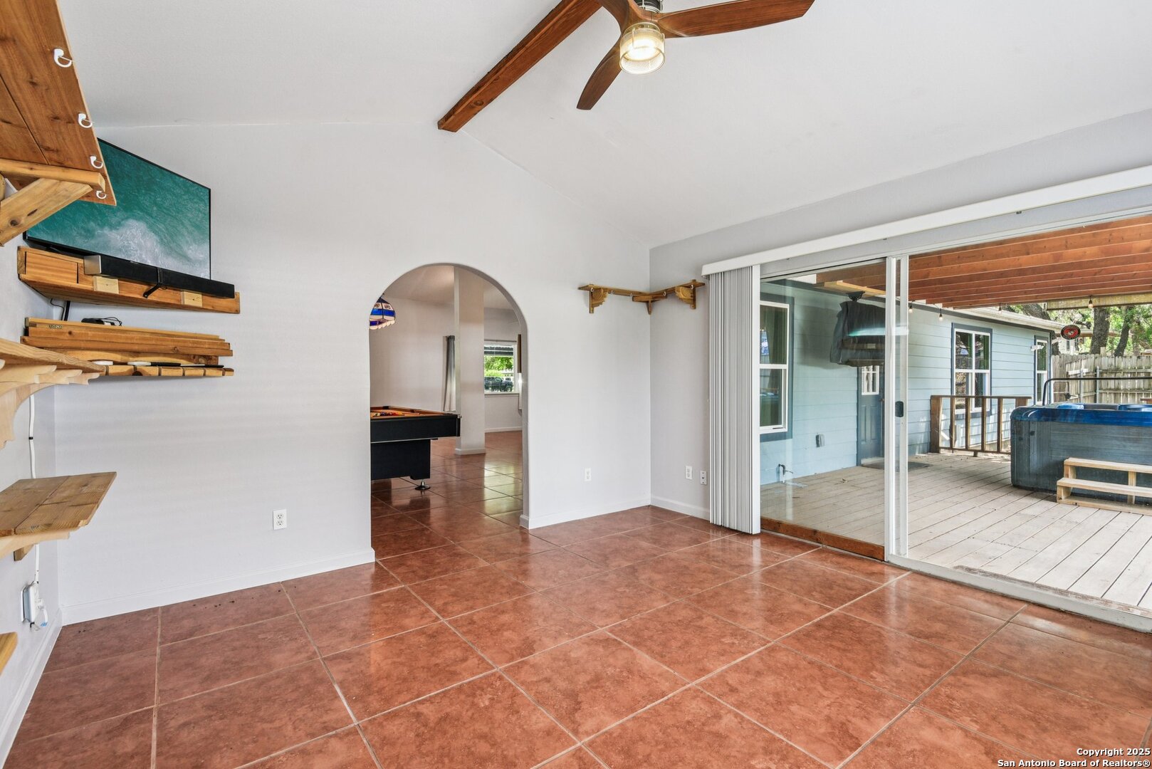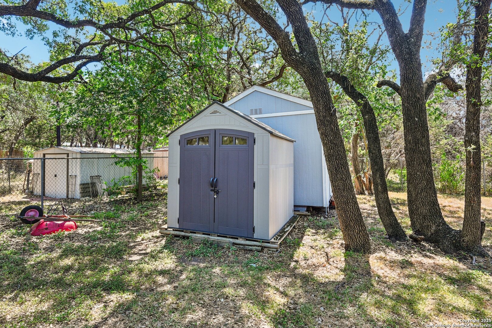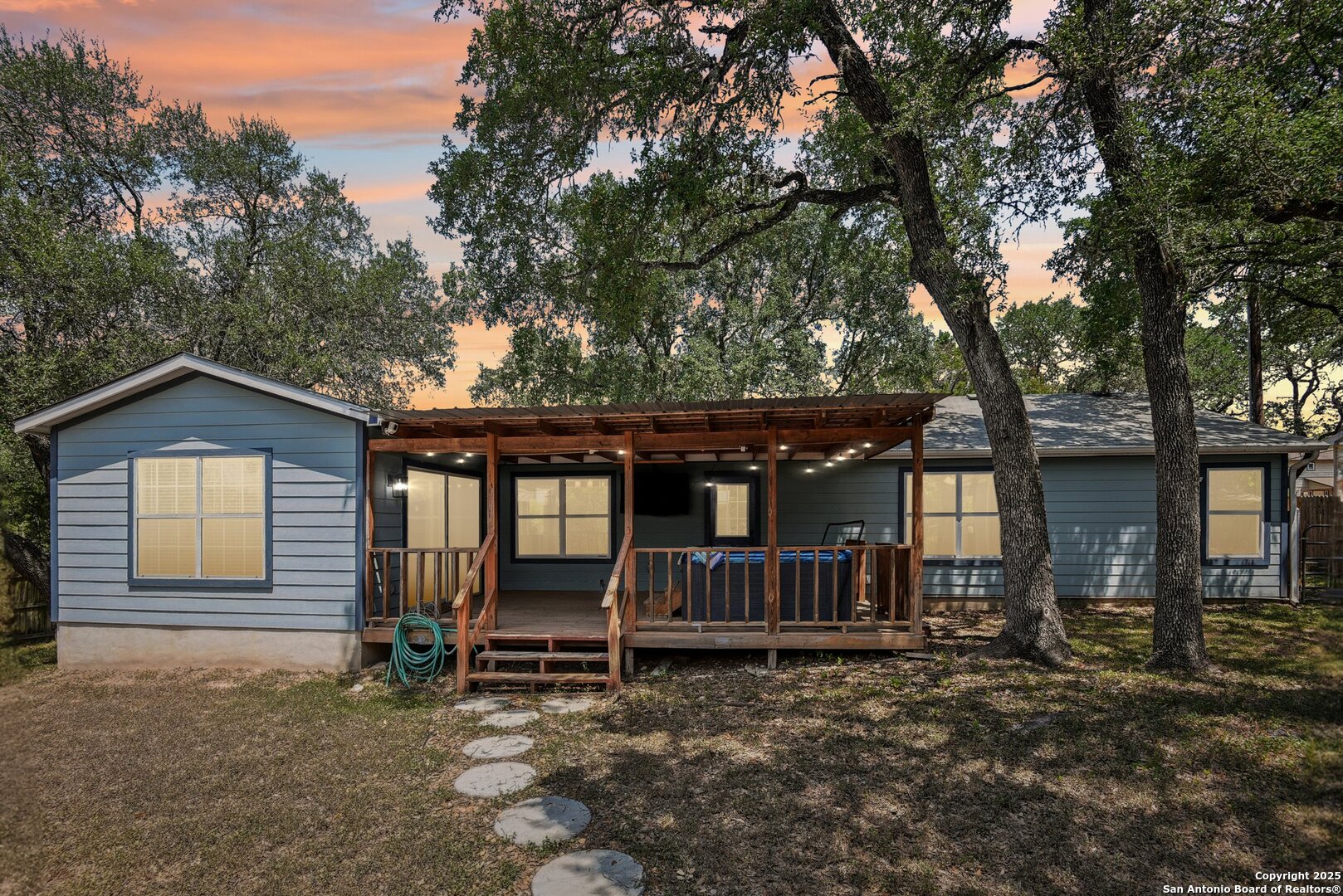 Live the Canyon Lake Lifestyle! Step inside this welcoming home where an open concept design and vaulted living room flows into a versatile flex space. NO carpet. Tile floors throughout. The fenced backyard is designed for relaxation with a covered patio, hot tub, and multiple outbuildings. One thoughtfully converted into a charming hideaway. This property blends comfort, functionality, and a touch of Hill Country charm. This residence is ideal for single family living or cash flowing short term rental. Recent renovations bring peace of mind, including Hardie siding, new windows, and a fresh coat of paint. Buyers will also appreciate the added extras: almost new refrigerator, pool table, and hot tub-all included! Arrive through the circular drive with ample room for parking, and take advantage of the oversized, extra-tall carport-perfect for your RV or boat. Neighborhood amenities complete the package, with a park and swimming pool just minutes away. Move-in ready and waiting for you!