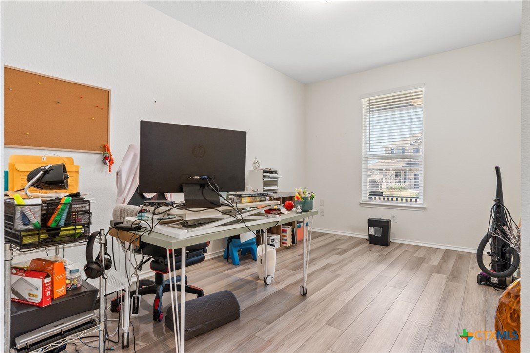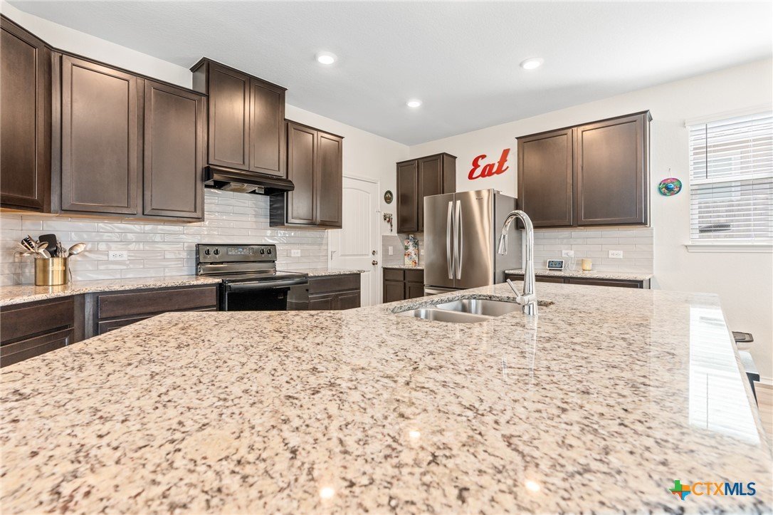BRAND NEW ROOF Installed on 10-23-2025, Also New Gutters!!! Welcome to this spacious and inviting two-story home, perfectly situated where I-14 and I-35 meet, giving you easy access to Temple, Killeen, and Austin. Located in the highly sought-after Belton ISD, this property offers the perfect blend of comfort, style, and convenience. Step inside and you’ll find an open layout designed for modern living. The heart of the home is the kitchen, complete with granite countertops, dark cabinetry, a large island with seating, and a seamless flow into the dining area—perfect for gathering with family and friends. The living room is bright and welcoming with plenty of natural light and a cozy fireplace for cool Texas evenings. This home offers three spacious bedrooms upstairs along with a versatile loft area, while the dedicated office downstairs provides the perfect space for working from home or managing daily tasks. The owner’s suite features generous space for a full bedroom set, along with an en-suite bath designed for relaxation.