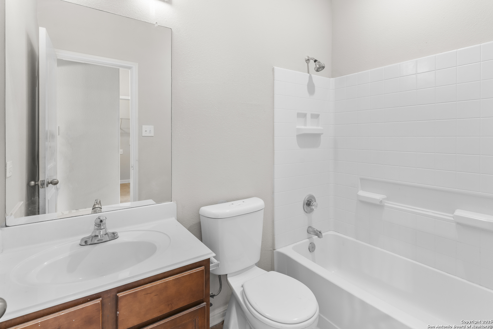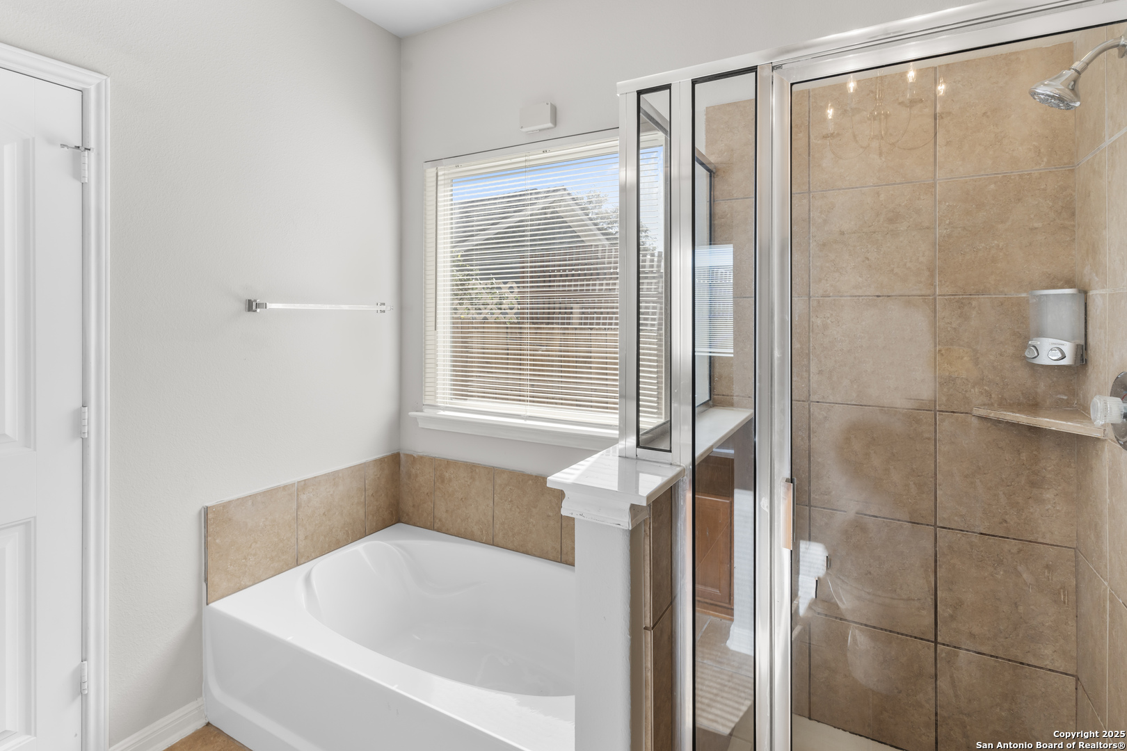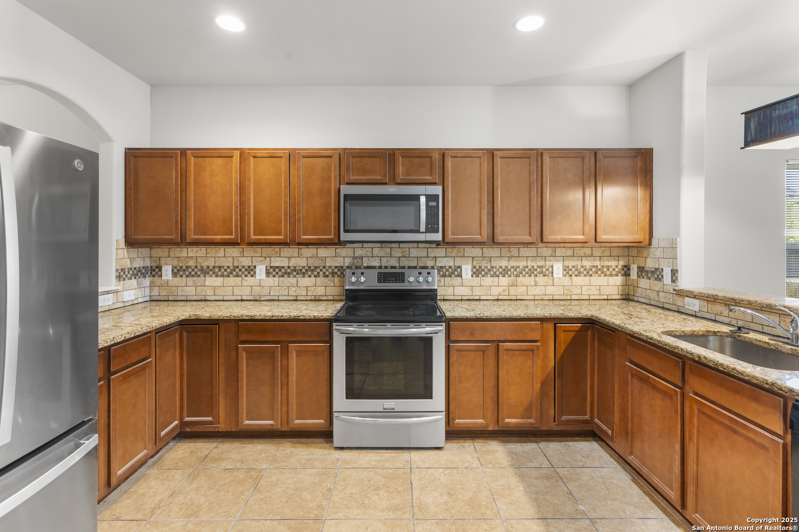 Fantastic location and a well maintained home offering a two story offering a two story 4 bedrooms, 3 full baths and 2,125 Sqft, of open living. The main level provides smooth flow between the living, kitchen, dining areas with cereamic tile flooring, granite kitchen countertops and stainless steel appliances. Refrigerator, washer, dryer, and water softener convey for true move in convenience. The primary suite features a soaking tub, separate shower, double vanity, and two walk in closets. The fully fenced backyard with covered patio provide an inviting outdoor setting. Conveniently located near I-35, Loop 1604, Wurzbach Parkway, IKEA, The Forum, and Randolph AFB, this home offers quick access to major shopping, dining, and employment centers.