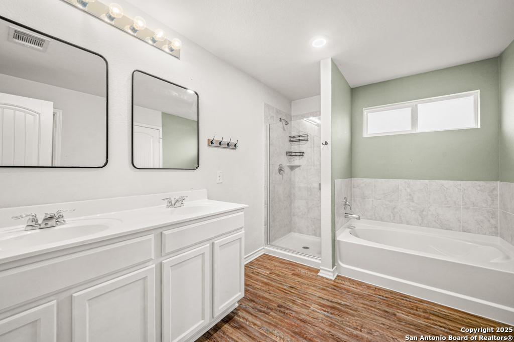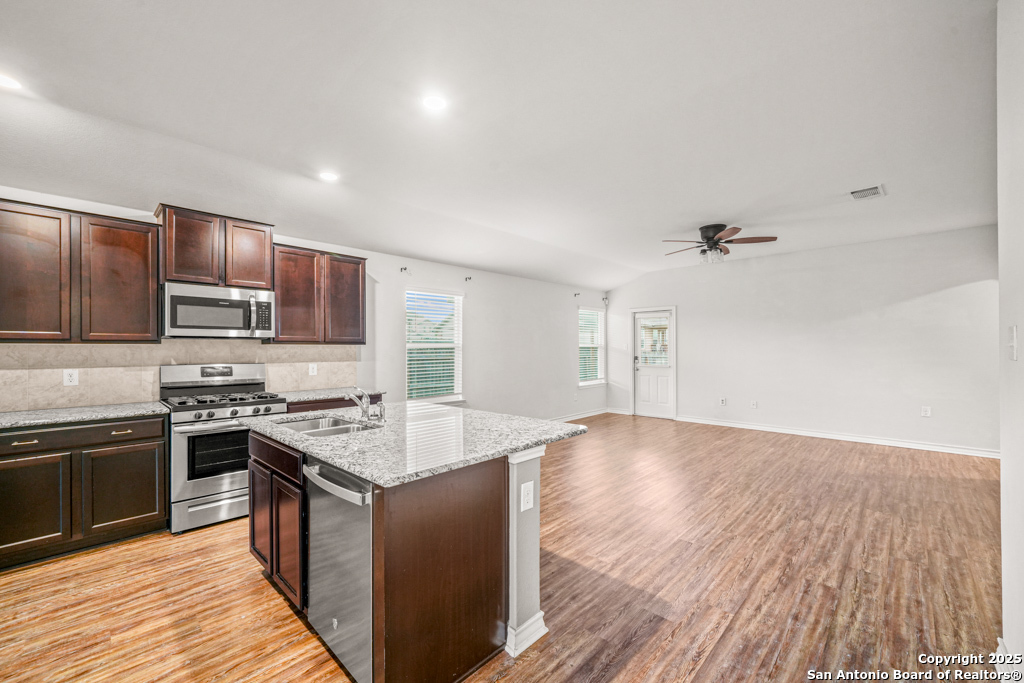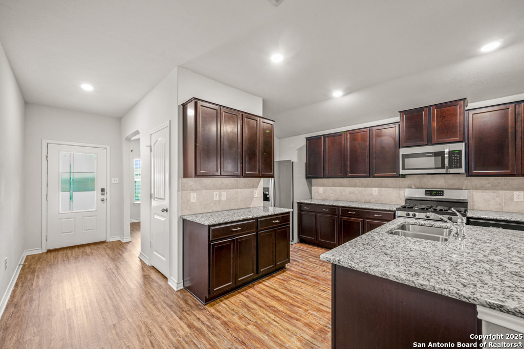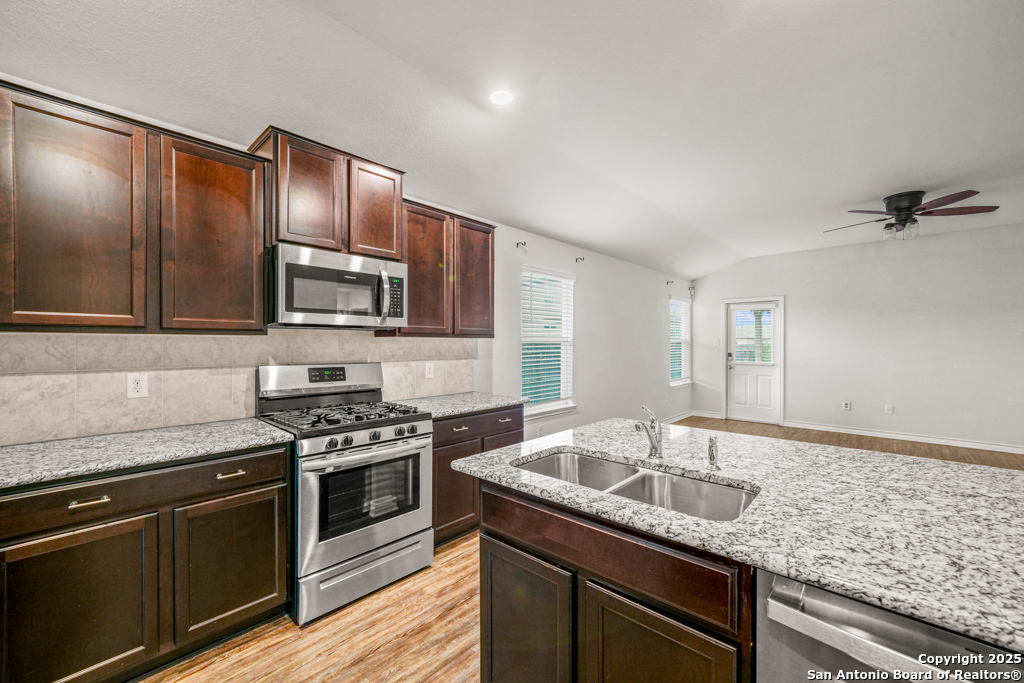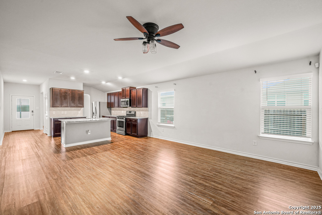 A beautifully maintained one-story home nestled in the desirable Whisper Falls neighborhood on the far west side of San Antonio. This inviting 3-bedroom, 2-bathroom residence offers 1,651 square feet of comfortable living space designed for both relaxation and entertaining. Step inside to discover an open-concept floor plan featuring a spacious living area filled with natural light, a modern kitchen with stainless steel appliances and ample cabinetry, and a cozy dining space perfect for family meals or hosting guests. The primary suite is a peaceful retreat, complete with a private en-suite bathroom and walk-in closet, while two additional bedrooms provide flexibility for a home office, guest space, or growing household needs. Enjoy the ease of single-story living, a two-car garage, and access to community amenities including a pool, park, and walking trails. With its prime location near Loop 1604 and Highway 90, Whisper Falls offers convenient access to Lackland AFB, shopping, dining, and top-rated schools. Don't miss your chance to make this lovely home yours-schedule your private tour today!