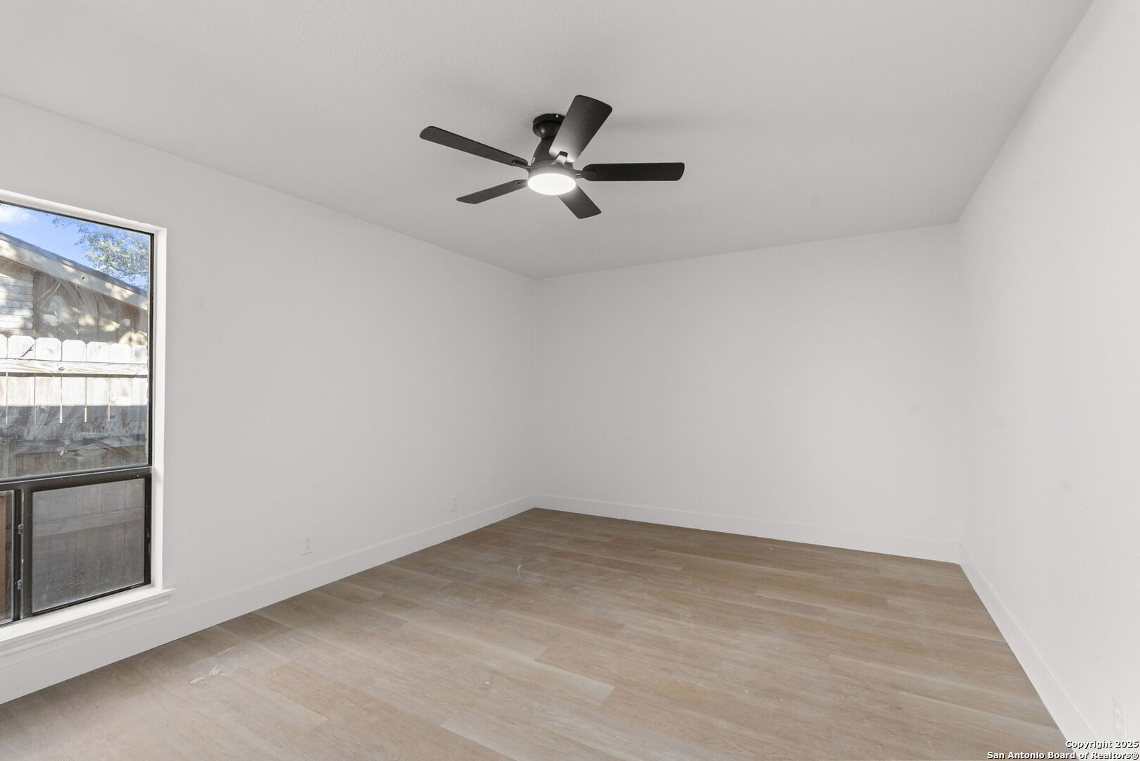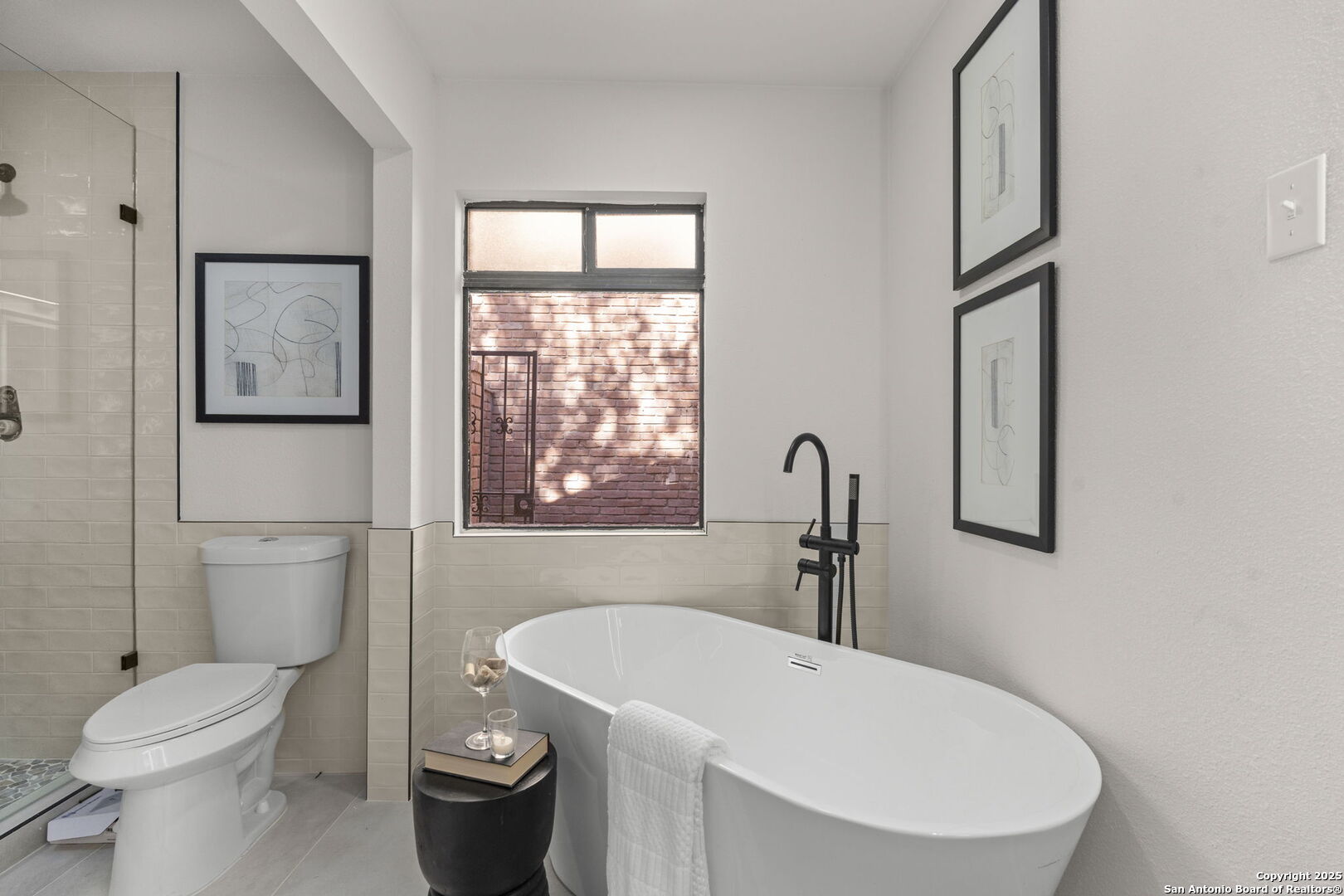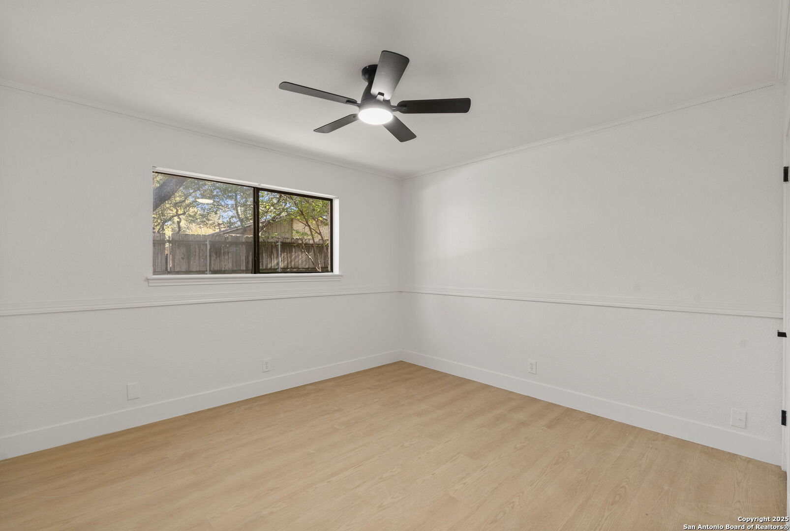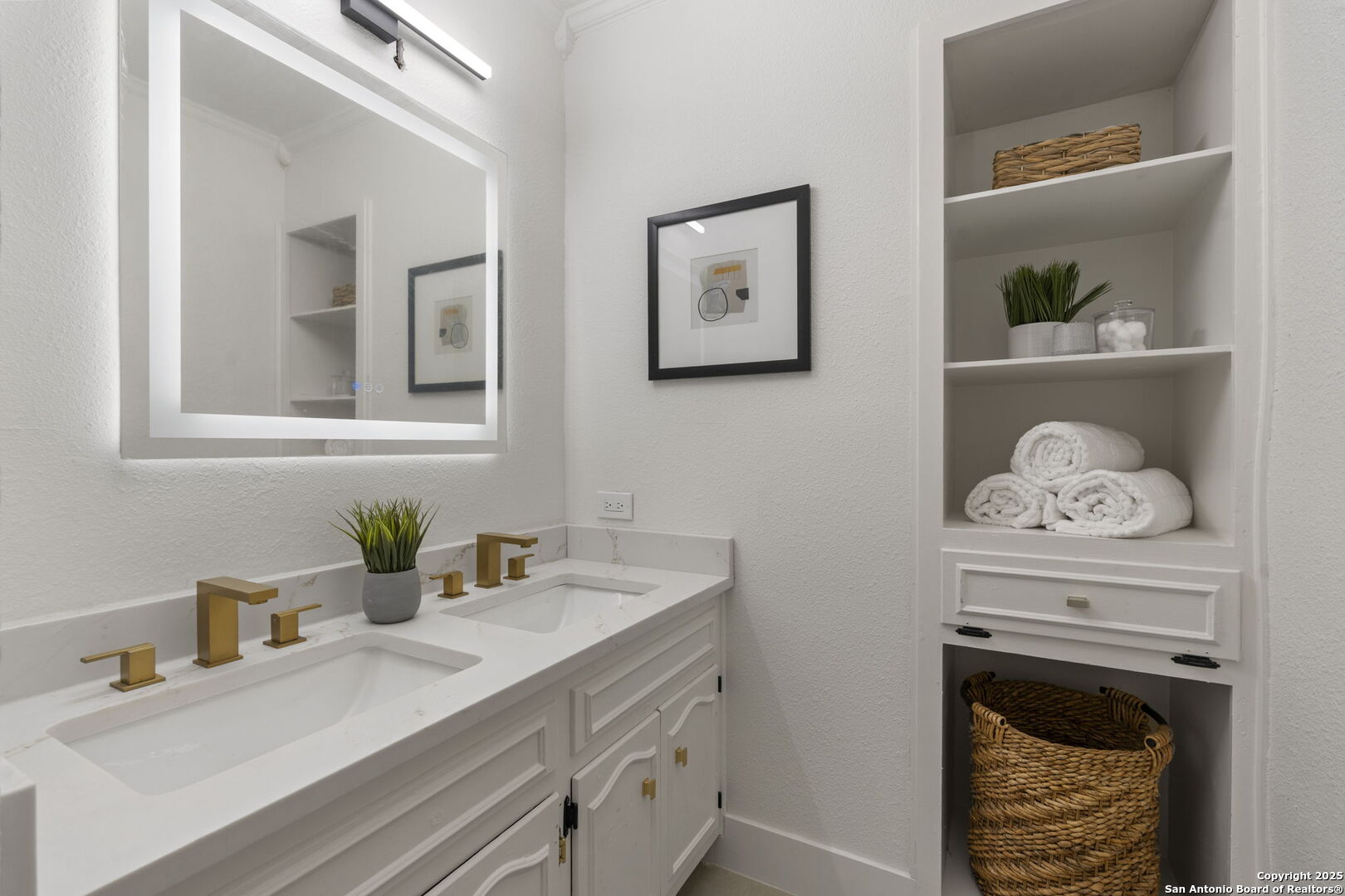 Tucked beneath mature live oaks on a quiet street in the highly desirable Hunters Creek, this fully reimagined four-bedroom, three-bathroom home with an office AND a pool delivers over 2,500 square feet of SINGLE-level sophistication and indoor-outdoor flow. A countless amount of upgrades have been put into this home thoughtfully and carefully. Behind the private brick facade, an unexpected world unfolds - vaulted ceilings, crisp white walls, and expansive windows that fill the home with natural light. At the heart of it all, a central glass atrium serves as the home's architectural centerpiece - featuring a tranquil fountain surrounded by mature trees and framed views from nearly every room - blending the serenity of nature with the clean lines of modern design. The chef's kitchen is a showstopper, designed for both beauty and function. It features a long island, quartz countertops, herringbone backsplash, brass hardware, and stainless steel appliances. The bright breakfast nook with bay windows overlooks the sparkling pool, while the formal dining area and open-concept living room allow for seamless entertaining. The primary suite serves as a serene private retreat with French doors opening to a private walled patio, a custom walk-in closet, and a spa-inspired ensuite bath complete with a freestanding soaking tub, dual illuminated vanities, and a striking designer shower in contrasting tile. Three additional bedrooms and two full baths offer flexibility for family and guests. The home's thoughtful layout spans over 2,500 square feet of curated comfort, blending mid-century character with modern design. Every space feels intentional - from the natural-toned flooring and statement lighting to the courtyard views that bring the outdoors in. Outside, the private backyard features a sparkling pool, mature oaks, and a patio designed for al fresco dining or sunset lounging. Perfectly positioned near Wurzbach Parkway, Loop 1604, and I-10, this home combines modern elegance with everyday convenience. With its architectural charm, tranquil ambiance, and proximity to top-rated schools, shopping, and dining, 13114 N Hunters Circle is a rare offering that embodies the best of San Antonio living. Don't miss out on your opportunity to make this home yours today!