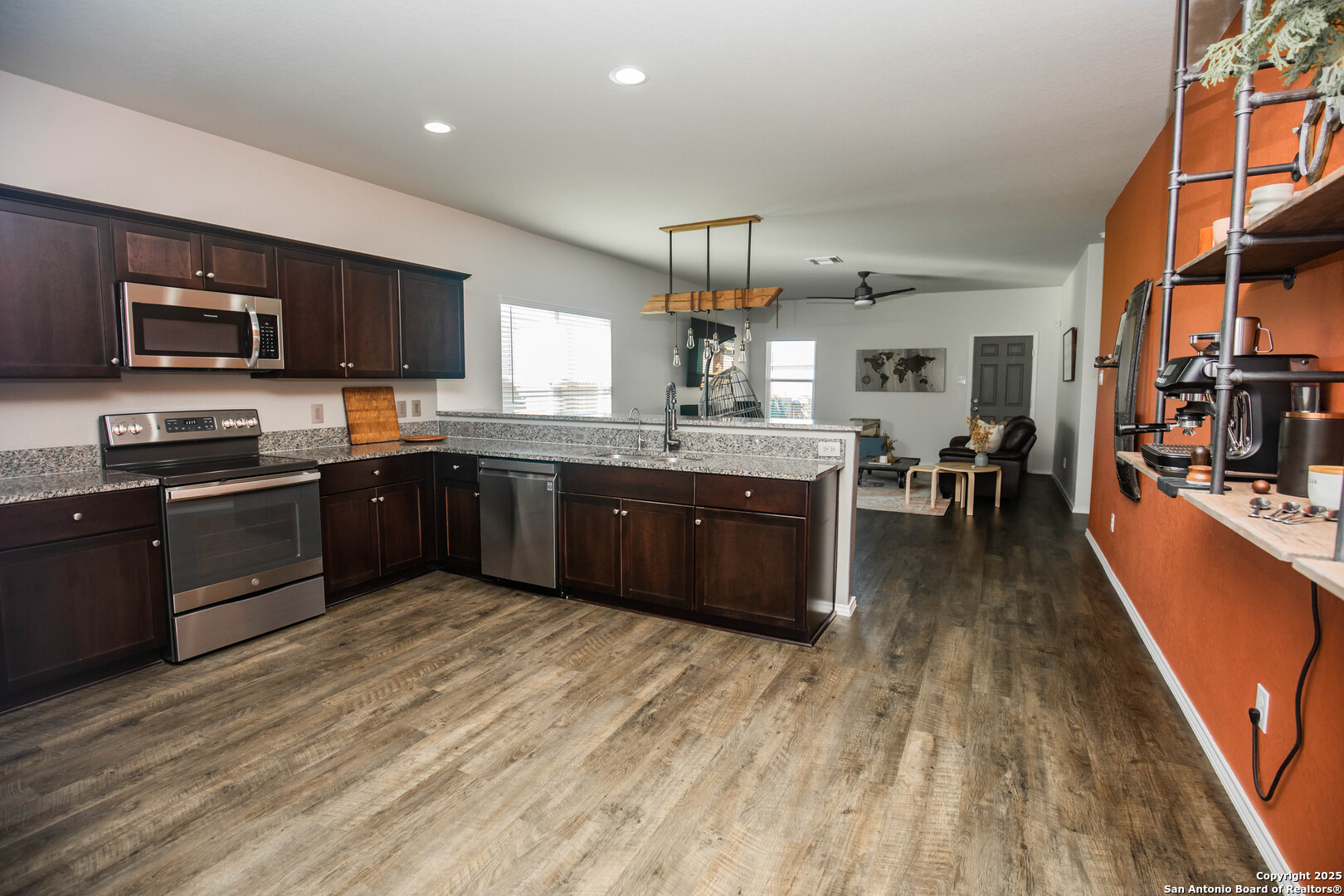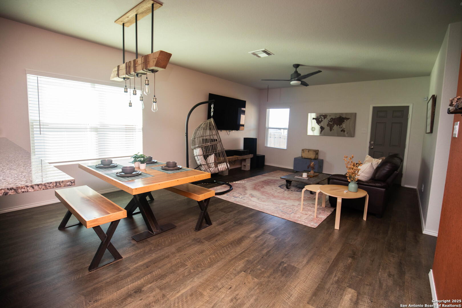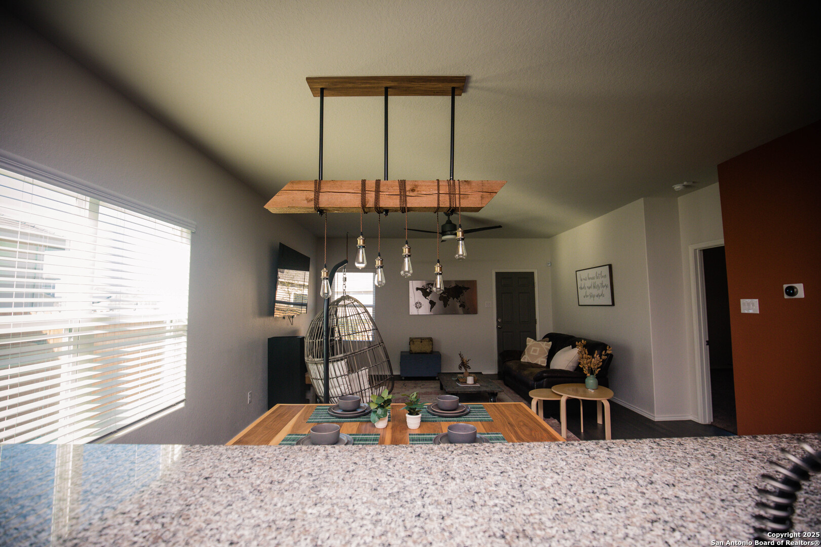 Don't miss out on this beautiful home with custom touches throughout and solar panels and 2.75 assumable VA loan! From a custom light feature in the dining room to the custom coffee/tea bar in the kitchen you will not be disappointed when you make this house your new home. Enjoy your free time in the backyard on the patio or sit by the fire pit to help you unwind at the end of a long day. This 4/2 home is situated with easy access to IH-10 and Loop 1604 for easy access to all military bases and close to shopping or restaurants while allowing you to get away from the hustle and bustle of the city. You will also enjoy the added benefits of solar panels to significantly reduce electric bills, a water softener with a RO system in the kitchen as well as a Vivint security system that has already been installed with cameras. This home is ready for you to move in and enjoy! The front and back yard have been recently re-sodded making this home move in ready.