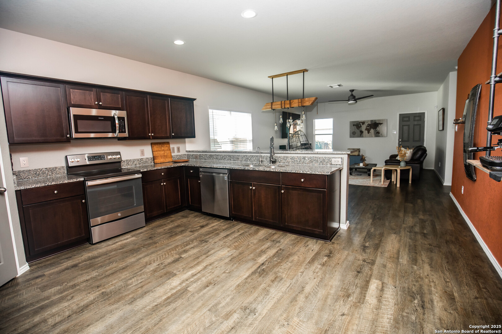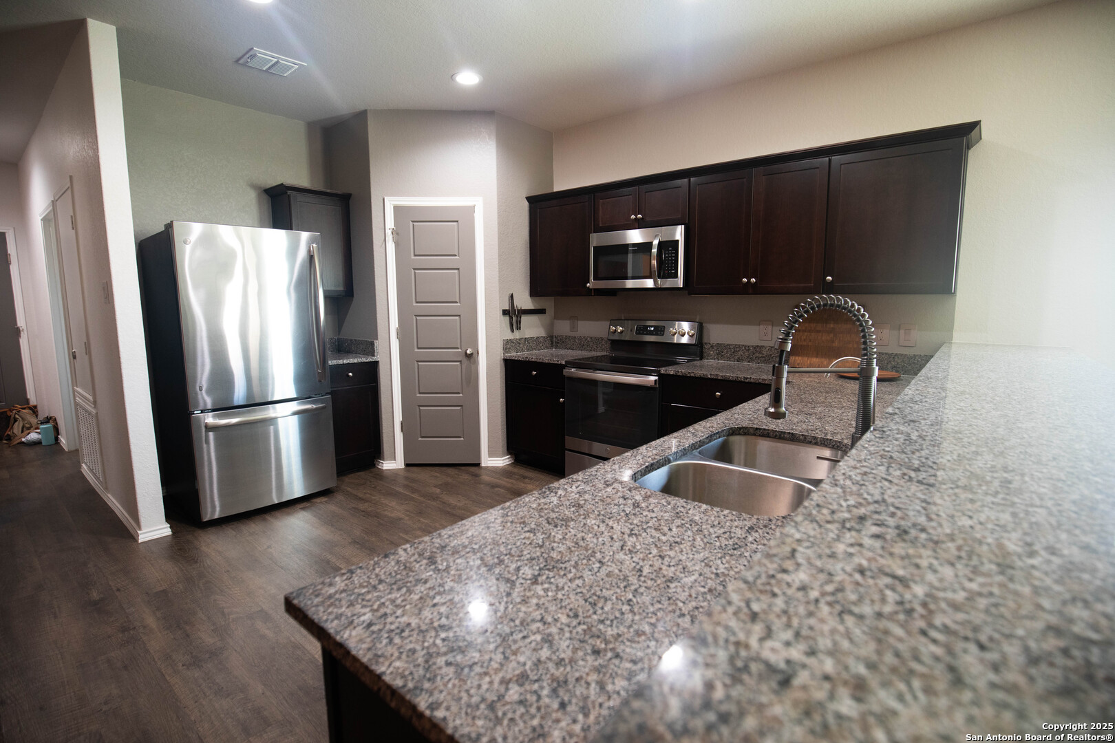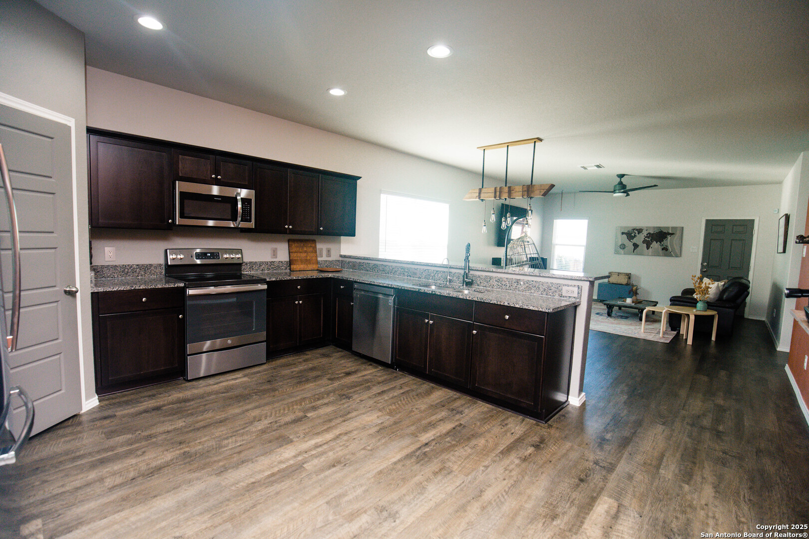 Don't miss out on this beautiful home with custom touches throughout and solar panels and 2.75 assumable VA loan! From a custom light feature in the dining room to the custom coffee/tea bar in the kitchen you will not be disappointed when you make this house your new home. Enjoy your free time in the backyard on the patio or sit by the fire pit to help you unwind at the end of a long day. This 4/2 home is situated with easy access to IH-10 and Loop 1604 for easy access to all military bases and close to shopping or restaurants while allowing you to get away from the hustle and bustle of the city. You will also enjoy the added benefits of solar panels to significantly reduce electric bills, a water softener with a RO system in the kitchen as well as a Vivint security system that has already been installed with cameras. This home is ready for you to move in and enjoy! The front and back yard have been recently re-sodded making this home move in ready.
