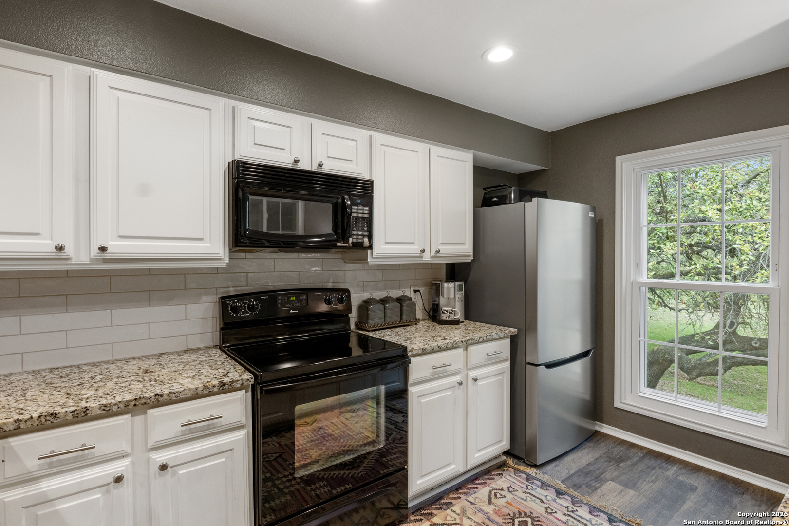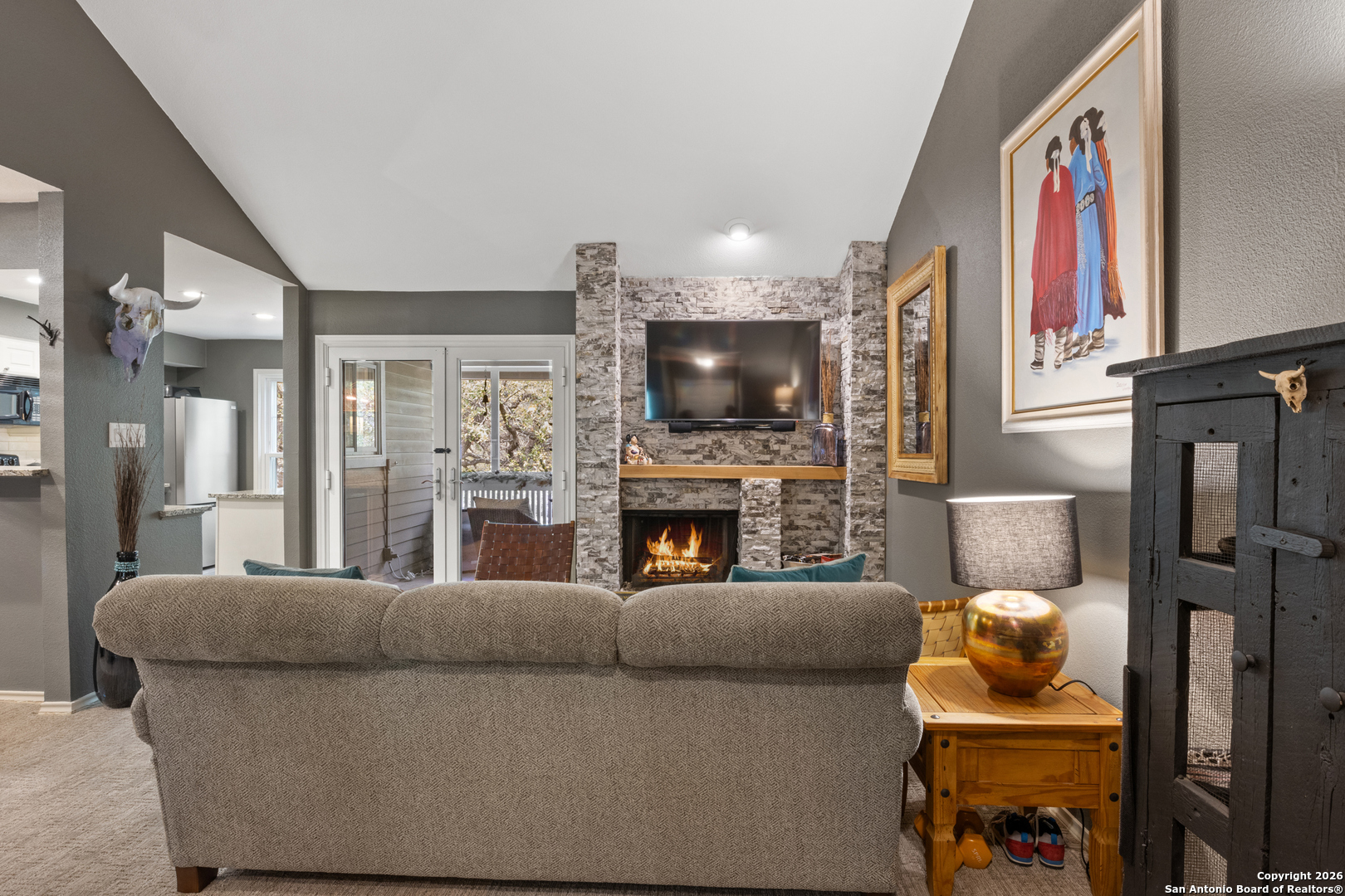 Location, location, location! This beautifully renovated condo is perfectly situated right off Wurzbach Parkway, directly across from the renowned Phil Hardberger Park. Enjoy instant access to scenic bike and walking trails, a dog park, and lush green spaces-ideal for outdoor enthusiasts. Plus, you're just minutes from top-rated shopping, restaurants, coffee shops, medical facilities, and pharmacies. Step inside to find a warm and inviting living space featuring brand-new carpet and laminate flooring throughout, fresh new paint, a cozy fireplace, and an open-concept layout. The kitchen has been thoughtfully upgraded with granite countertops and offers a charming view of a picnic area. The spacious bedroom boasts a second built-in fireplace, gorgeous bay windows, and an en-suite bathroom with double vanity, and a large walk-in closet with built-in shelving. Relax on the fully screened-in patio, which overlooks the tranquil greenbelt and walking trails, perfect for enjoying your morning coffee or unwinding in the evening. Community amenities include a sparkling pool, clubhouse/party room, tennis courts, and a BBQ area, making it ideal for both entertaining and relaxation. Whether you're looking for your next home or a great investment opportunity, this condo truly has it all. Don't miss out-schedule your showing today!