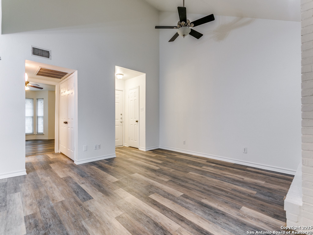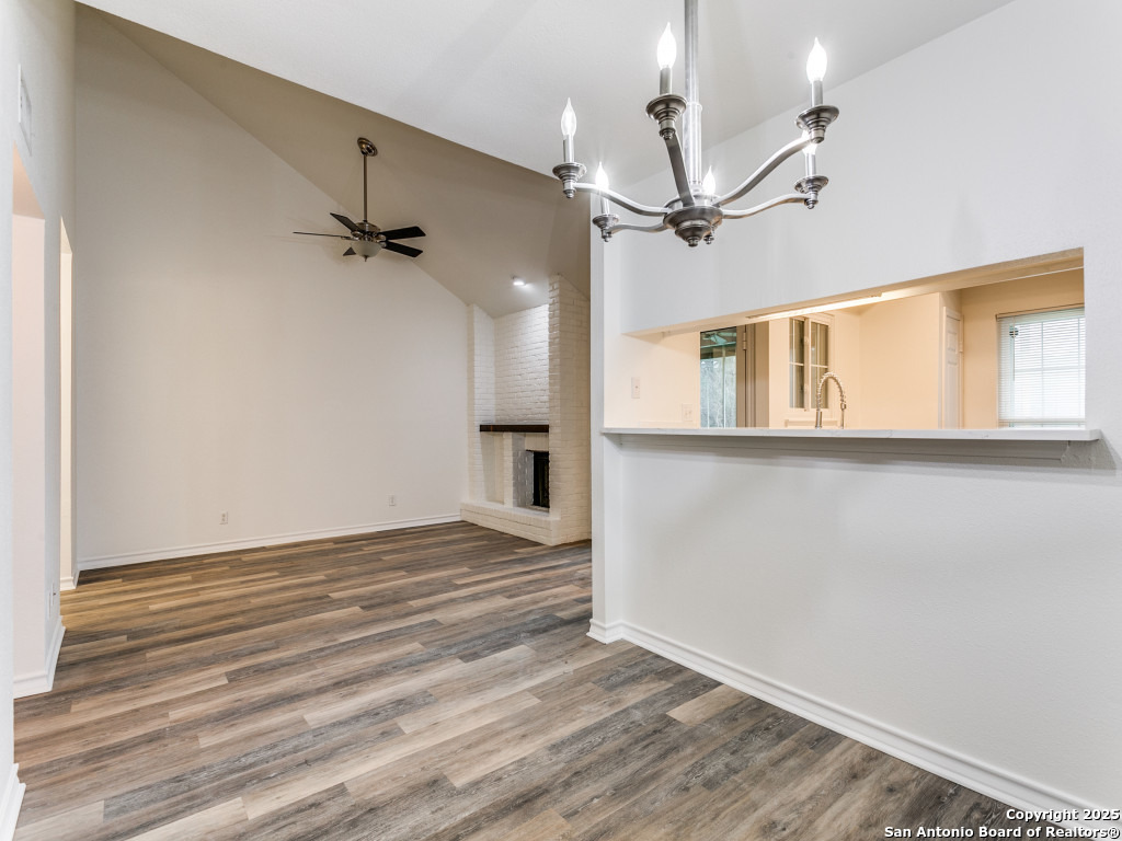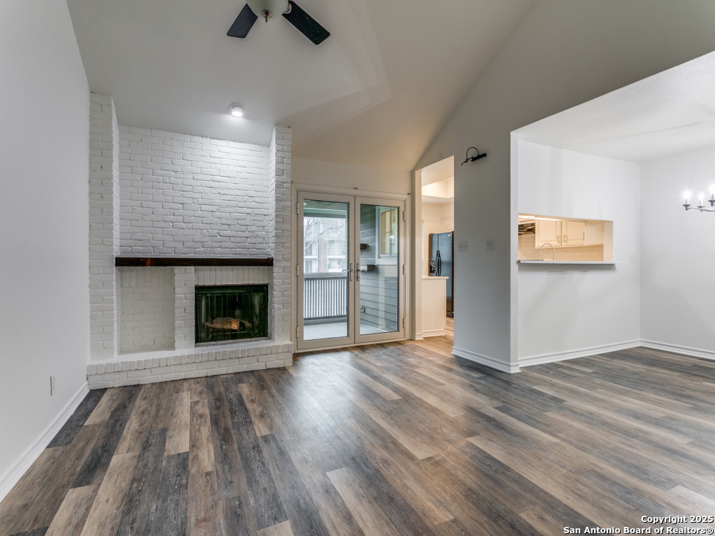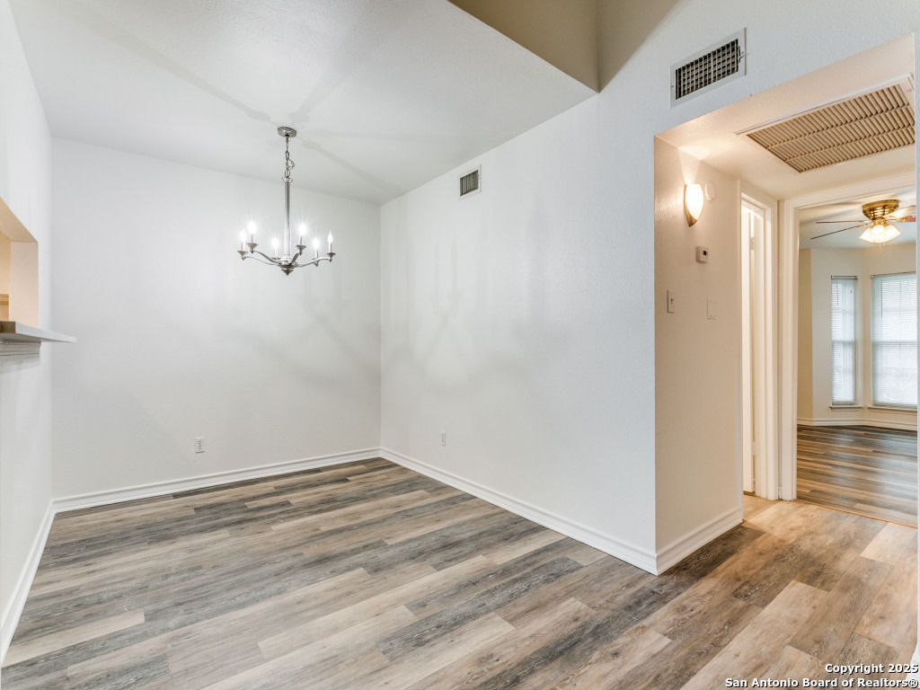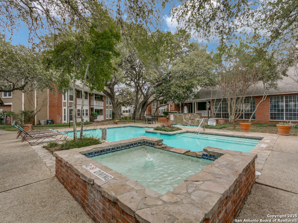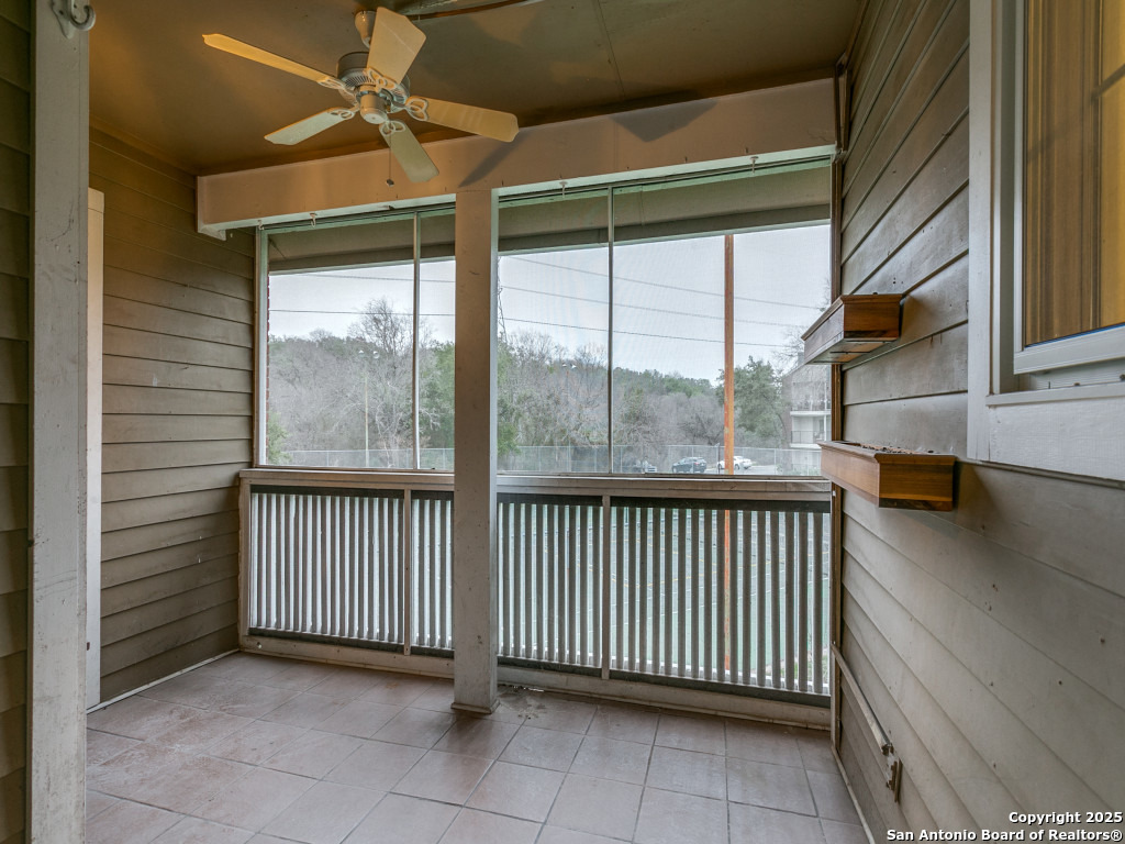 A one-bedroom, second-floor condominium overlooking the Salado Creek Greenway offers a serene living environment with natural light and scenic views. Located across from Phil Hardberger Park, this unit provides easy access to green spaces and recreational activities. A spacious and inviting living area features a fireplace, dining room and access to screened in porch. Neutral color palette throughout, solid surface countertops in kitchen and bathroom. Primary suite with bathroom access and walk-in closet. Laundry closet inside. Screened in patio offers scenic view and a storage closet. Community pool, clubhouse and tennis courts. Central location with easy access to freeways.