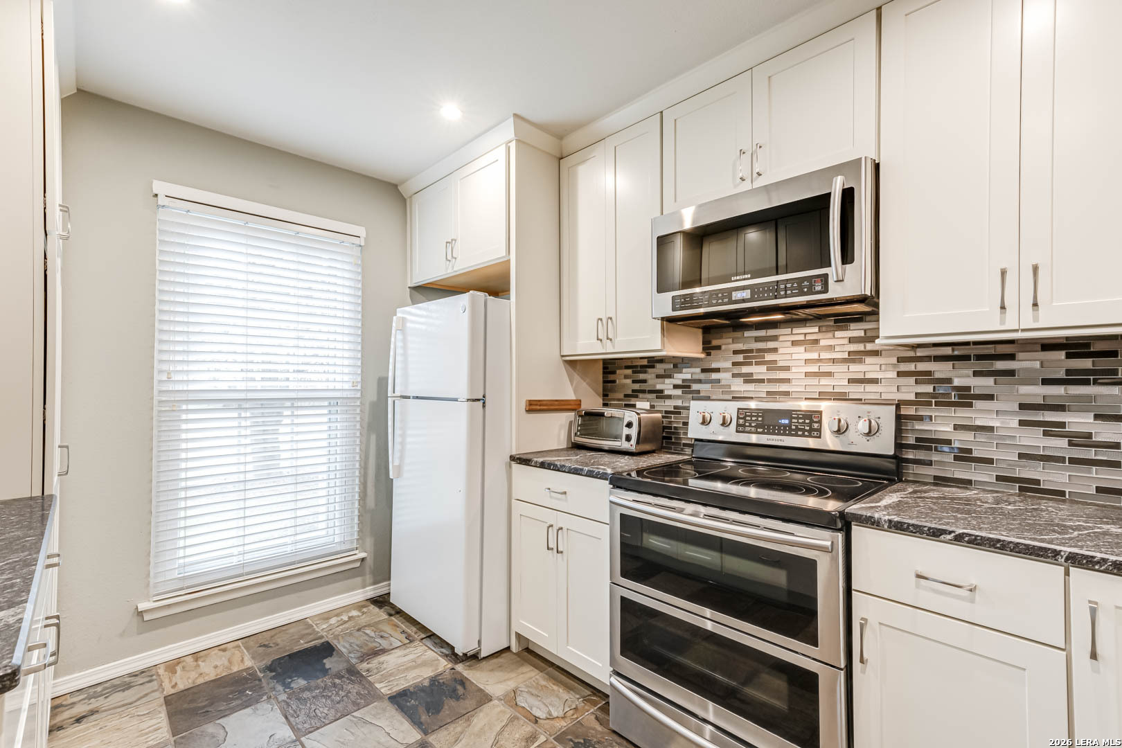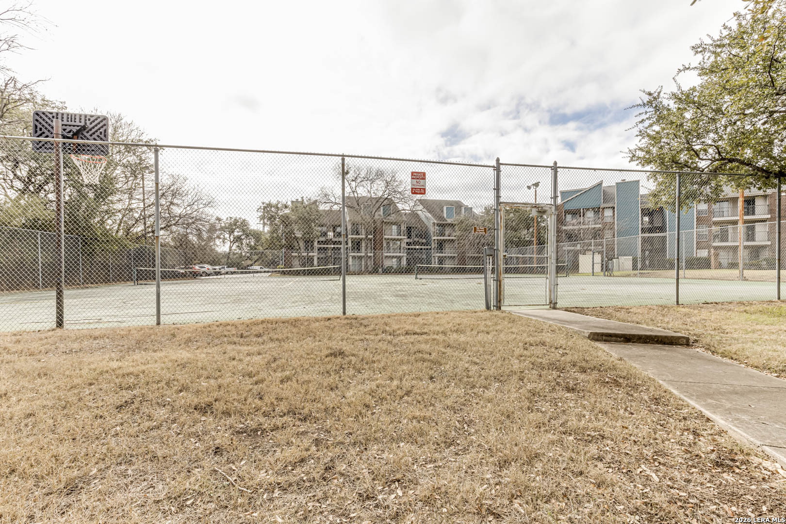 Beautiful ground-floor, one-story condo located in the desirable gated Chesapeake community, directly across from Hardberger Park and conveniently situated near Wurzbach Pkwy, Hwy 281, Loop 410, and 1604. This well-maintained 1-bedroom, 1-bath unit offers a functional, open layout with a spacious living area featuring a built-in media center, eat-in kitchen with professionally tiled countertops and backsplash, and neutral ceramic tile in all wet areas. Recent updates include roof, windows, HVAC, patio, microwave, and glass storm door. Both bedrooms are generously sized, and the private wraparound covered patio provides a peaceful outdoor retreat surrounded by mature trees and green space. Community amenities include a pool, tennis courts, jogging trails, party room, and BBQ/picnic areas, with HOA covering select utilities, common area maintenance, and insurance. Assigned open parking included. Ideal for low-maintenance living in a prime central San Antonio location
